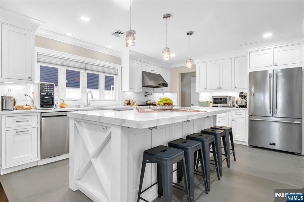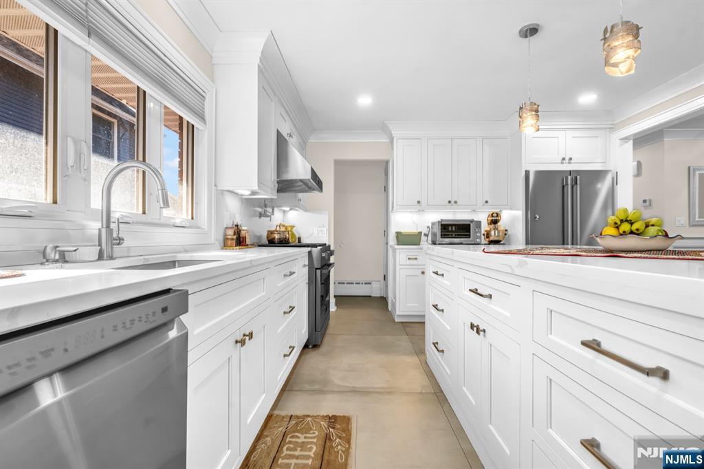 Beautiful and fully renovated ranch style home blending ultimate convenience and modern design. Completely redone in 2020, this residence offers 3 spacious bedrooms and 3 full bathrooms. Inside, elegant crown molding, wainscoting, and an open layout create a warm and inviting flow. The chef’s kitchen features high-end Fulgor Milano appliances, custom cabinetry, and premium finishes, while a 2nd summer kitchen on the lower level adds flexibility for entertaining or extended family. All major systems have been upgraded, including plumbing, electrical, roof, windows, doors, and central air. The garage is fully finished with tiled flooring and sheetrocked walls, offering a polished, functional space. Outdoors, the property becomes a private retreat with multiple patios, a fire pit, and an outdoor kitchen with a brick oven, perfect for al fresco entertaining. A large driveway holds up to 7 vehicles in addition to the attached garage. Paramus is home to top-rated schools, shopping, dining, parks, and major highways. Nothing to do but move in and enjoy this gorgeous and comfortable home.