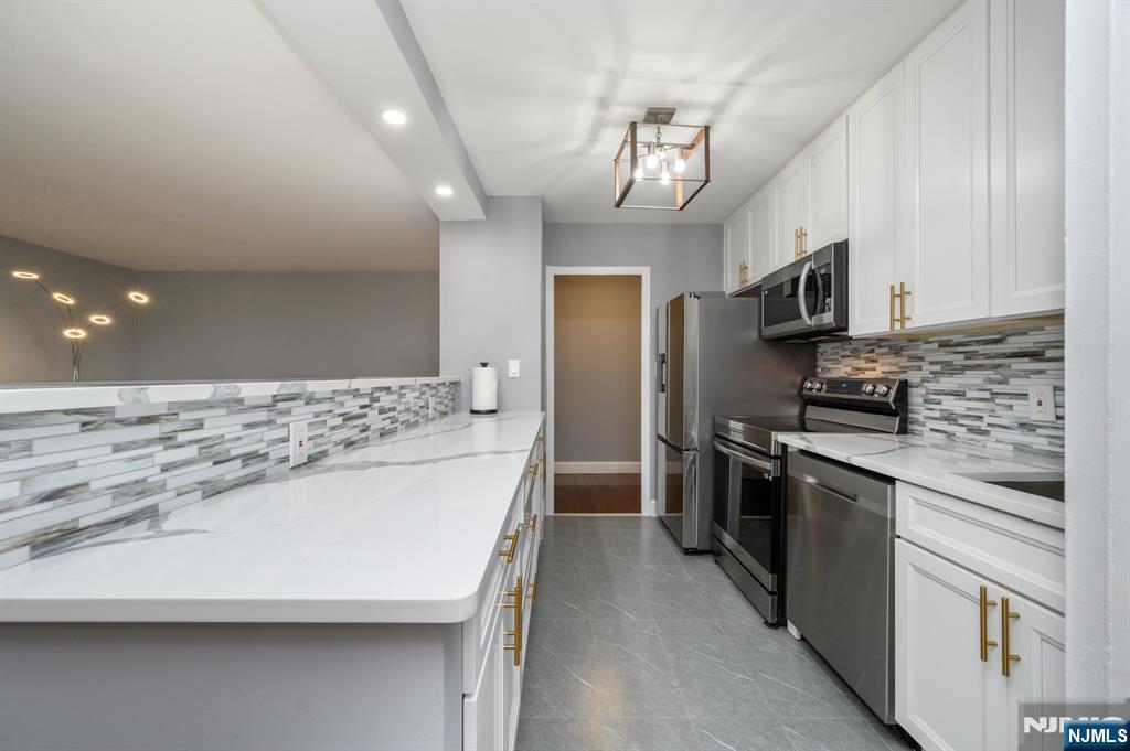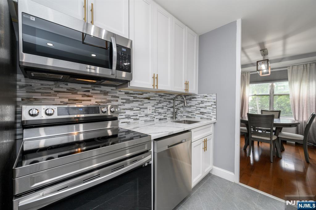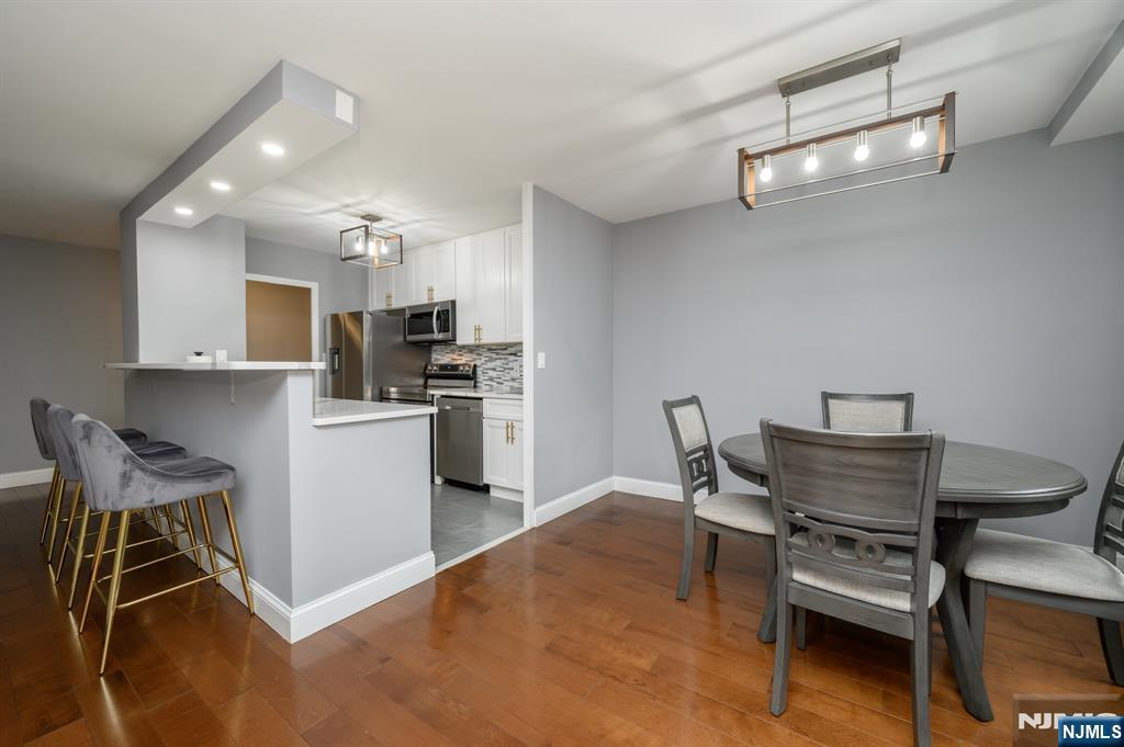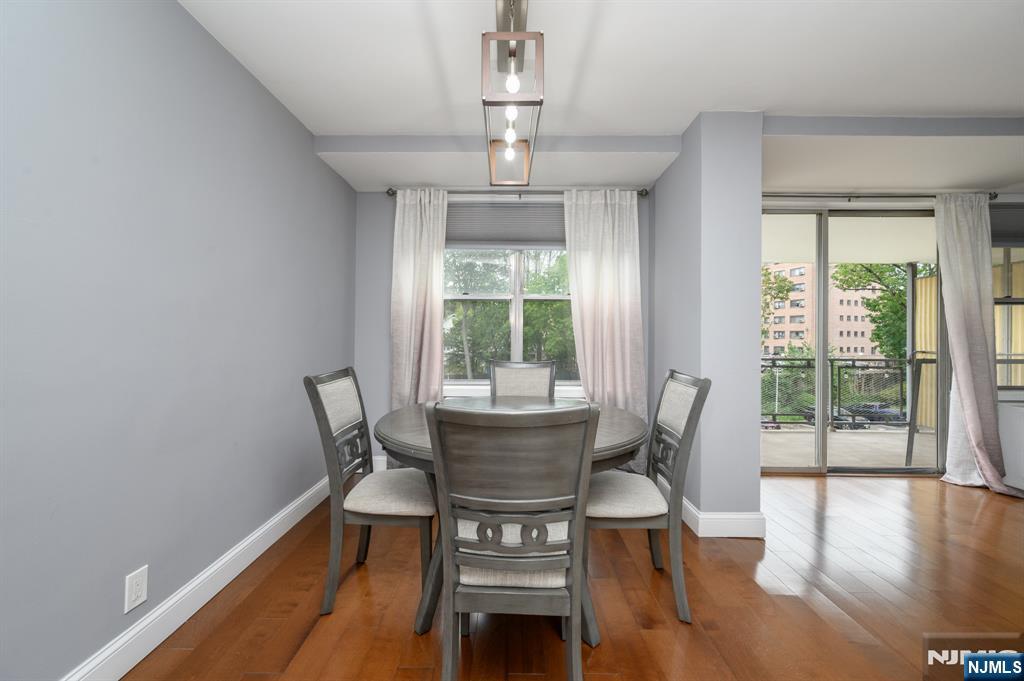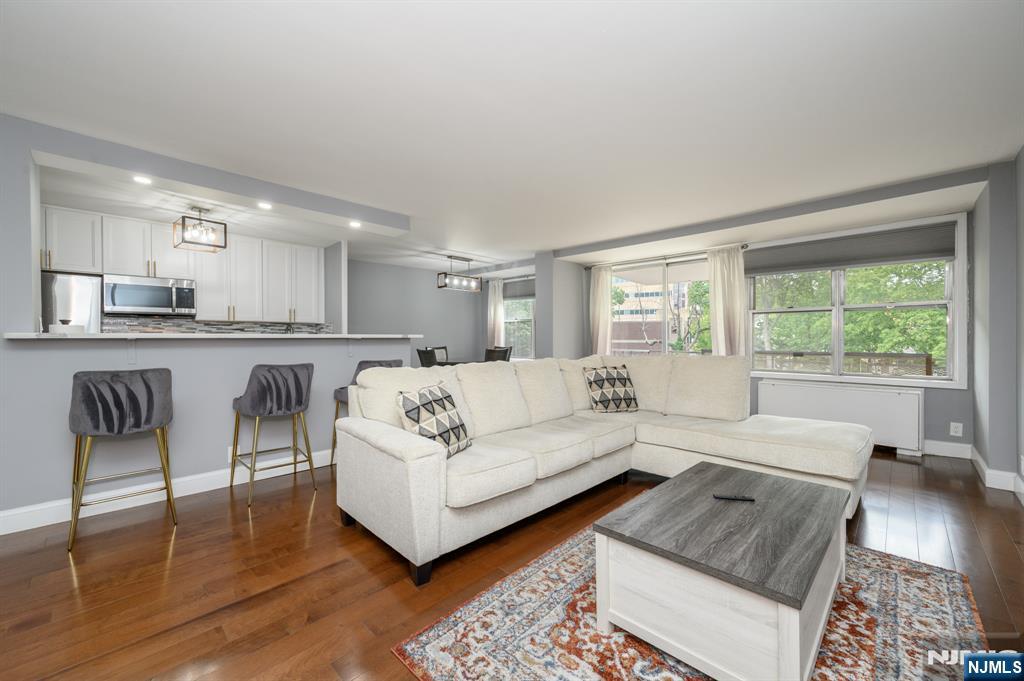 Executive House in bustling Hackensack premieres this beautiful 2 Bed 2 Bath Condo with Master Suite and private deck, sure to impress! Well maintained with plenty of modern upgrades in a prime commuter location, just pack your bags and move right in. This fourth floor unit offers an open layout for seamless living and entertaining, with generous room sizes, hardwood floors that shine, plenty of natural light all through, and a crisp cooling palette that is easy to customize. Gorgeous eat-in-kitchen offers sleek SS appliances, upgraded quartz counters, ample cabinet storage, delightful breakfast bar, and opens to the lovely dining area. Spacious living room holds sliders to your own private deck, great for al fresco dining or enjoying your morning coffee. Down the hall, the main full bath, along with 2 generous bedrooms with ample closets, inc the Master Suite. MBR boasts its own full ensuite bath with stall shower and walk-in closet. Addtl features inc elevator access, a luxe lobby, conference room with kitchen facilities, an outdoor pool, and shared laundry room in the basement. All conveniently located to shopping, dining, parks, schools, Hackensack Meridian hospital, major roads, the the bus line for an easy commute. This is an excellent opportunity for the first time buyer, or a great rental unit to add to your portfolio. Don't miss out! *Coming Soon - Showings begin Friday 10/3*