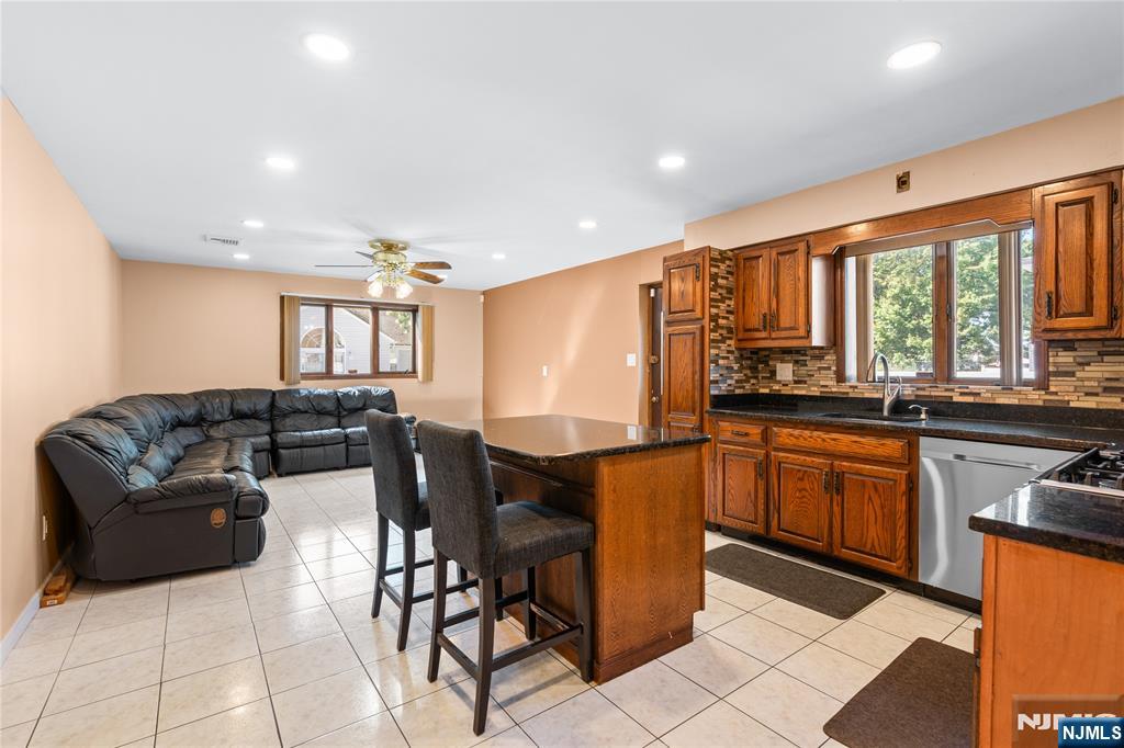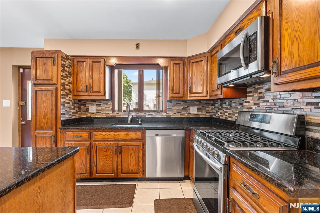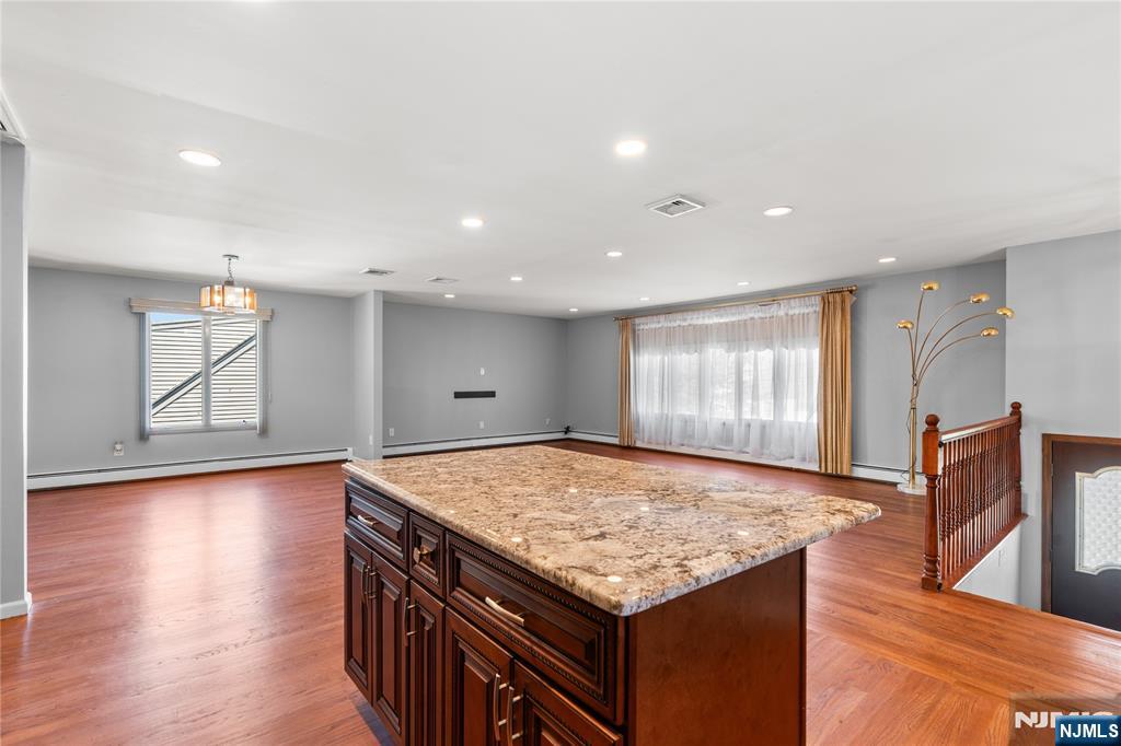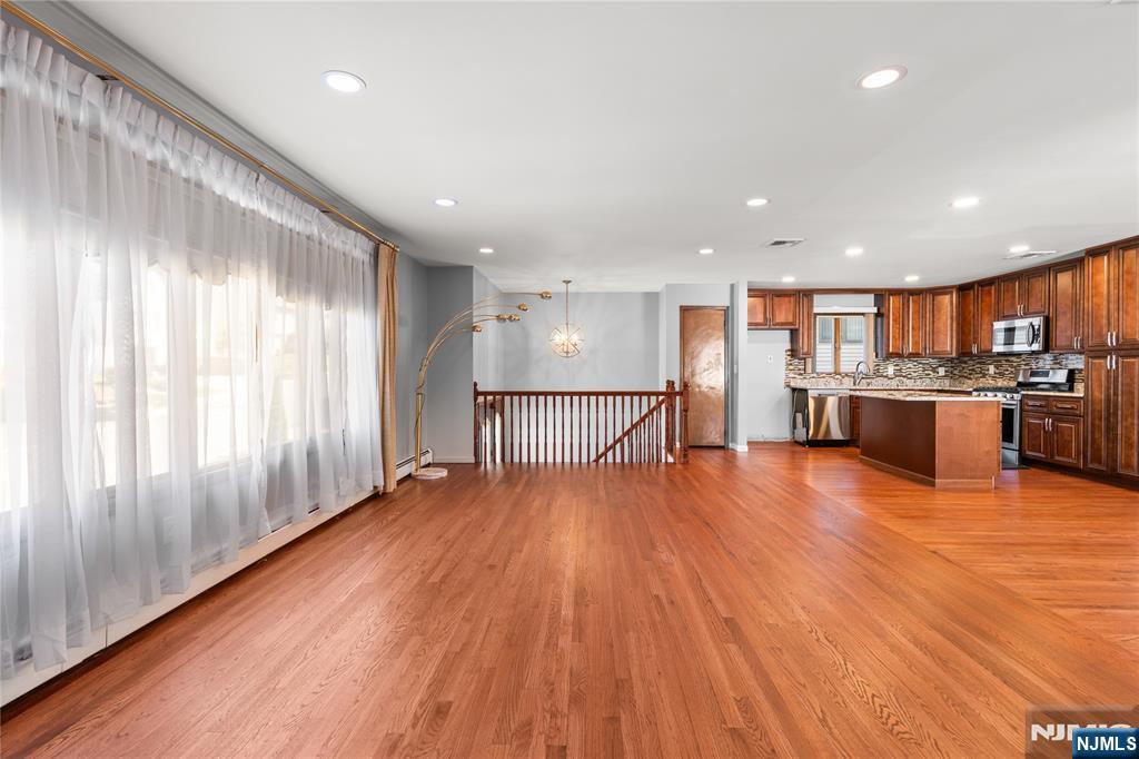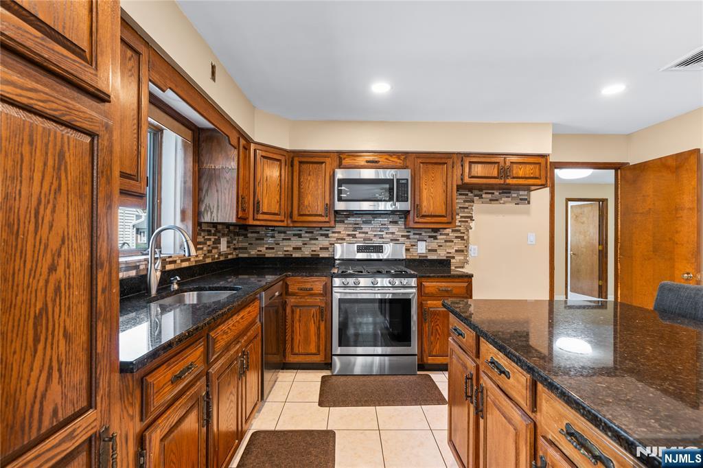This exceptional bi-level home in Hasbrouck Heights offers 2,666 sq. ft. of versatile living space with a unique multi-level layout. The ground floor features a spacious mother-daughter style apartment, ideal for multi-generational living or rental potential, with a full kitchen, a large bedroom with ample closet space, a full bathroom, and a flexible room perfect as an additional bedroom or home office. A separate entrance and laundry area add convenience. The upper level boasts an open-concept design perfect for entertaining, with a modern granite kitchen, a generous living room, and a dining area. It includes three bedrooms, including a primary suite with a full bath and two large closets. New hardwood flooring graces all bedrooms and hallways. The home features a one-car garage, central air conditioning, and an outdoor shed on beautifully maintained grounds. Located close to town, local amenities, and with easy access for commuting to NYC, this home combines comfort, style, and functionality in one cherry-picked package. Perfect for families seeking space and versatility in a friendly neighborhood.