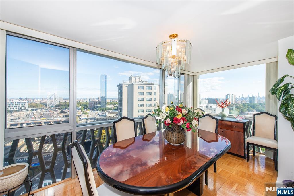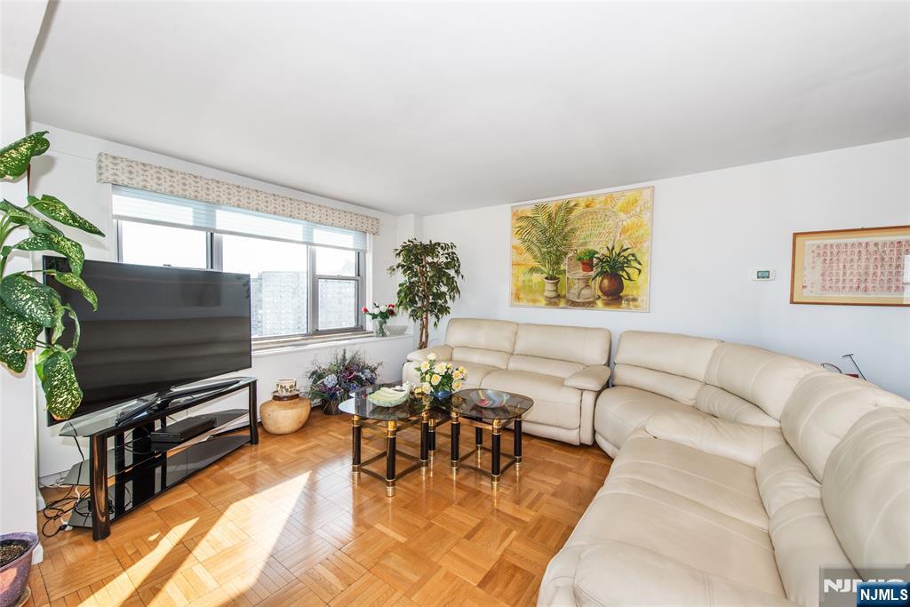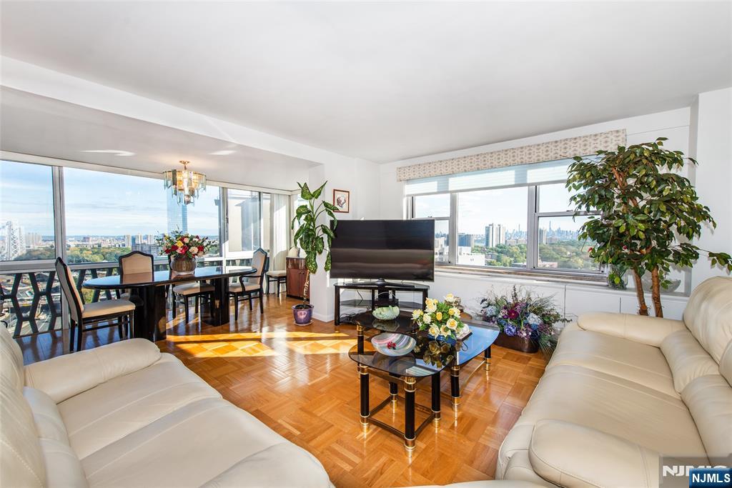 Southeast-facing, spacious 3-bedroom, 2-bath apartment with stunning NYC views from every room. This high-floor residence features a primary ensuite with a walk-in closet, two additional bedrooms, and a full bathroom. The formal dining room, generous living room offer ample space for entertaining. The kitchen is equipped with premium appliances, including a Wolf stove with BBQ grill, butcher block countertop, wine fridge, and two full-size refrigerators. Sizeable hallway closets. HOA fees include real estate taxes, heat, hot and cold water, and access to luxury amenities. Ideally located in the heart of Fort Leeâ€â€just a short walk to NYC buses, restaurants, and the Fort Lee Library. Sale is subject to Co-op Board approval.