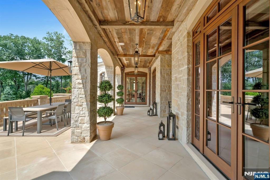 Beyond a gated approach on 4.4 serene acres, this Saddle River estate evokes a timeless French chateau, fusing refined architecture with resort living. The grounds showcase a sun splashed pool terrace with spa, formal gardens, playground, pergola and an expansive great lawn. Terraced open and covered patios span each level for seamless indoor–outdoor flow. A 4 car garage and single vehicle porte cochere complete the elegant arrival. For equestrians, a four stall stable with bonus space and fenced grass pasture/paddock elevate the offering. Inside, an elevator services three meticulously finished levels encompassing 25 rooms, 6 ensuite bedrooms, 7 full baths, and 2 guest baths. A grand foyer with sweeping staircase introduces impeccable craftsmanship and gracious scale. The main level includes formal sitting and dining rooms, a mahogany office/library with fireplace, and a family living area with informal dining and a chef’s kitchen. The private primary suite features a foyer entry, fireplace, dual walk in boutique closets, a spa inspired bath, and a secluded patio; four additional ensuite bedrooms, full laundry, and a bonus room complete this floor. The walkout lower level is designed for wellness and play: a full ensuite bedroom, dual fitness rooms, massage room, sauna, media area, lounge with billiards, and a climate controlled wine cellar with tasting area. A partial kitchen opens to the covered patio and pool terrace, ideal for grand entertaining and everyday luxury.
