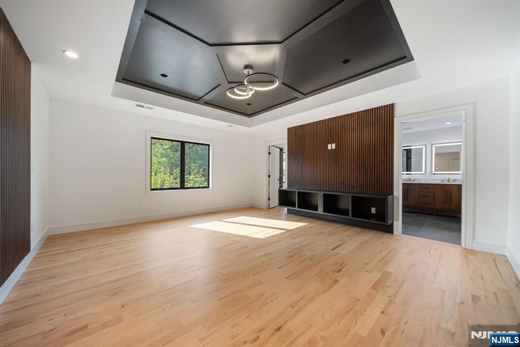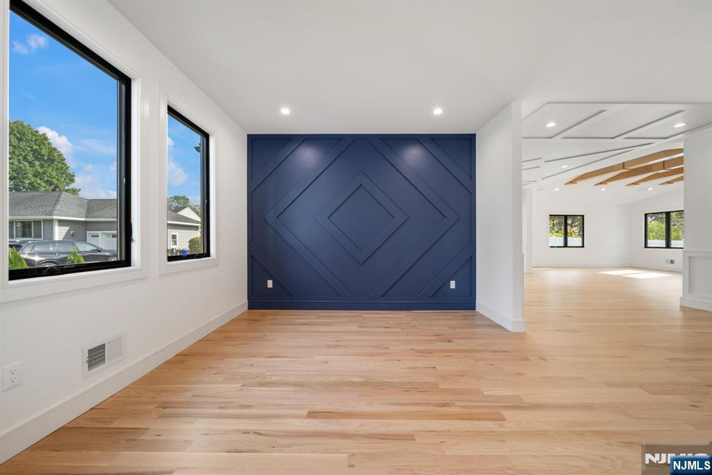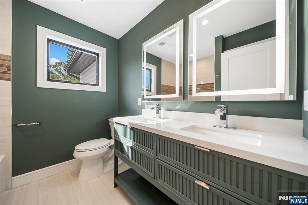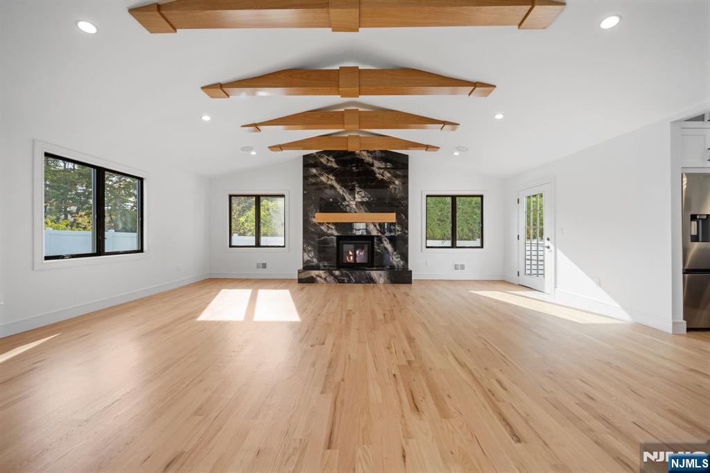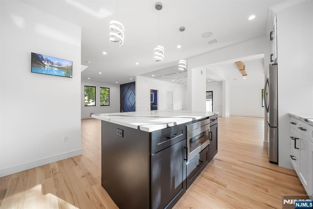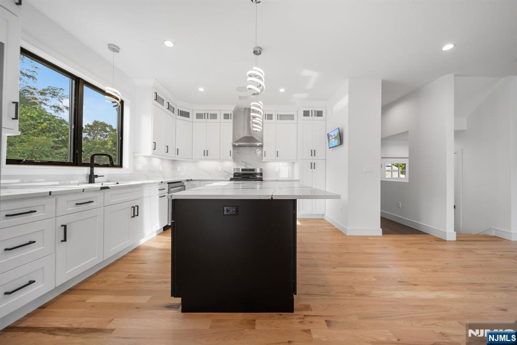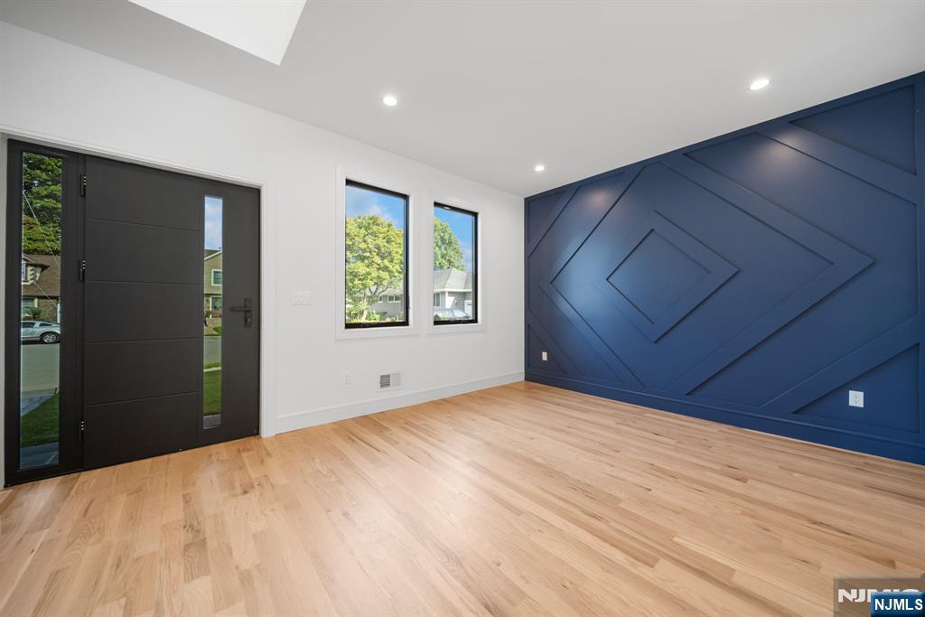 Experience refined living in this stunning new-construction 5-bedroom, 3-bath home, located on a cul-de-sac and thoughtfully crafted on an existing foundation with today’s modern lifestyle in mind. A paver driveway, and professional landscaping with fresh sod create exceptional curb appeal. The fenced backyard with 6’ vinyl fencing and multi-zone sprinkler system ensures both privacy and convenience. Step into a dramatic 2-story foyer leading to wide-plank white oak floors, modern staircase with rod iron balusters, bold accent wall, ceiling and mudroom leading to attached garage access. The inviting living room features a wood-burning fireplace framed by decorative exposed beams, while the chef’s kitchen impresses with quartz counters and backsplash, an oversized island, and premium Samsung & Sharp appliances. The first floor offers a versatile bedroom, full bath, and open-concept flow designed for entertaining. Upstairs, find four spacious bedrooms and two baths, including a luxurious primary suite with a custom walk-in closet and spa-like bathroom with a custom double vanity. A second-floor laundry with washer/dryer hookups adds ease. The finished basement offers a large family room with tiled floors, a wine bar with sink, and plenty of space for gatherings. Additional comforts include 2-zone heating/cooling and central vacuum. Conveniently located and close to NYC transportation, this home blends elegance, comfort, and function in every detail, truly a must-see.