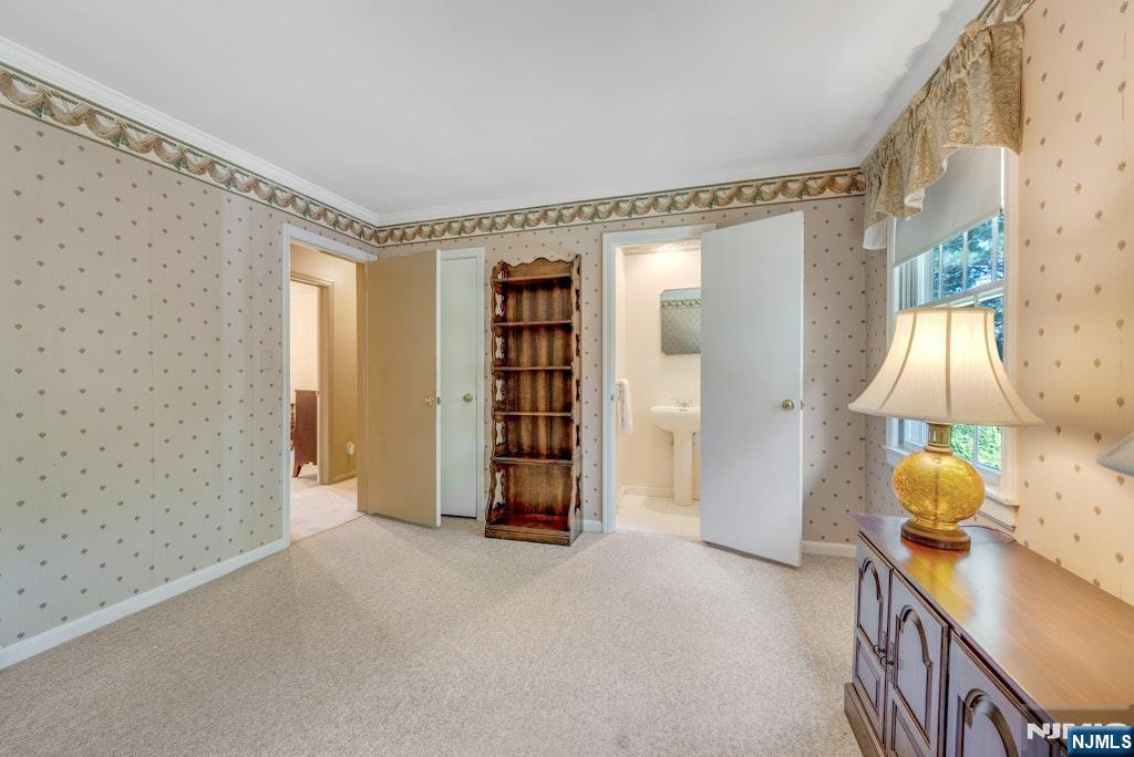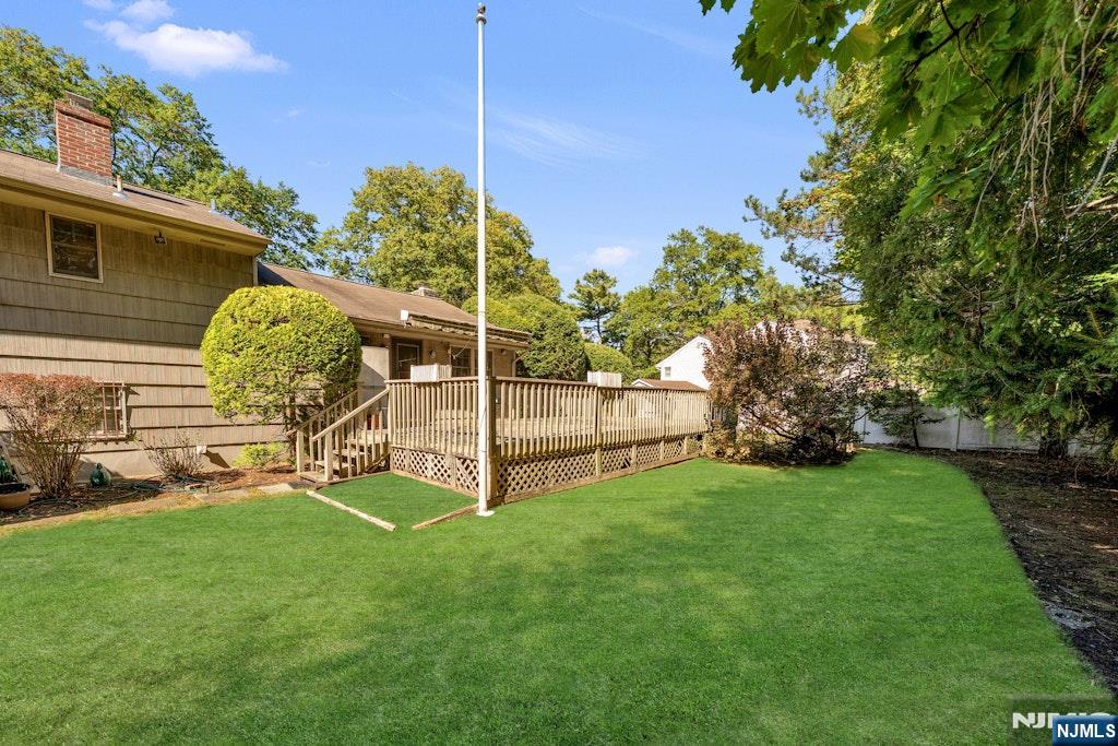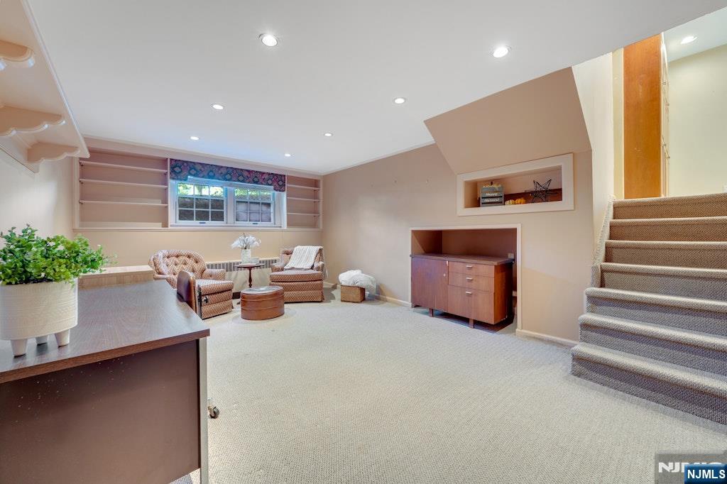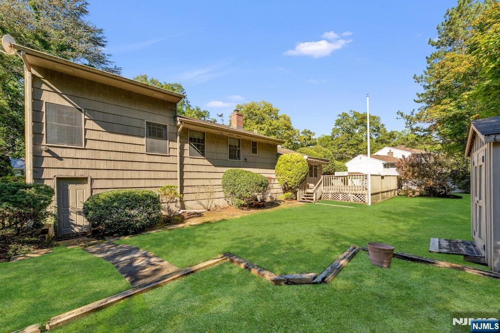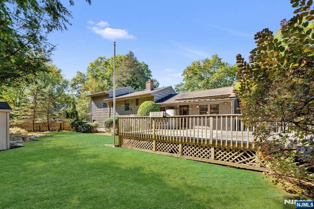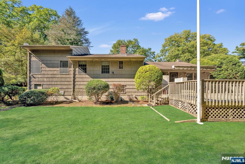 Seize the opportunity in quintessential Ho-Ho-Kus - one of New Jersey’s most sought-after towns! Nearly 2,000 sq. ft. of living space, this 3-bedroom, 2.5-bath expanded split level offers the perfect blend of town, space, and potential. The living room features a beautiful bay window, a floor to ceiling brick fireplace, recessed lighting and wood floors hidden beneath the carpet. Lovely dining room with double windows opens into a 10-year-old eat in kitchen with tiled backsplash and door to huge rear deck plus shed. Grade level den/office offers recessed lighting and built in shelves and leads out to the oversized 2 car garage. Laundry room/utility room has access to additional crawl space. The expanded primary suite impresses with vaulted ceilings, Palladium windows, 2 walk-in closets, and an impressively sized private full bath with stall shower and jetted tub. The original primary suite has a walk-in closet plus powder room while the 3rd bedroom with track lighting has access to the full bath off hallway. Central air, sprinkler system, security system, tiled entry, large driveway, and Bessler stairs to the attic are just a few of the extras. This tree-lined neighborhood with connecting streets boasts a “close-to-everything†locationâ€â€top-rated K-8 school, charming downtown with shops and dining, and easy NYC commute via bus and train. Bring your vision and personal touches to make this home your own!