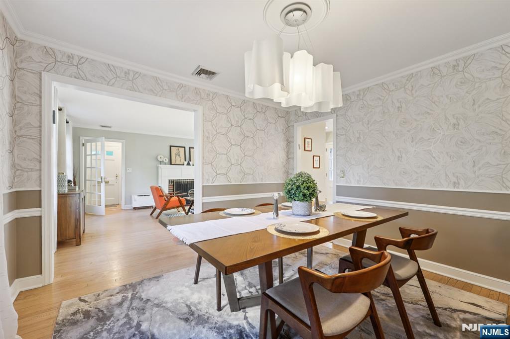 Welcome to this stately Willard school Colonial, where chic updates throughout include fresh paint, wallpaper & wood slat walls, Artemide Logico hand-blown glass chandelier, & water filtration. Great layout with living room/ Fpl, quiet den, dining room, breakfast room & sun-drenched family room/Fpl with bay windows & French doors leading out to the flat backyard. Classic Ulrich kitchen with SS appliances & double wall oven, enhanced by new pulls & faucet.. 2nd floor expansive primary ensuite with spa-like bath, 2 spacious bedrooms, hall bathroom & laundry. Lower level with full bathroom renovated to include an office & rec room with wet bar, offering walkout access through the oversized attached 2-car garage. Outdoors, explore beautiful tiered gardens with new fencing, sprinkler system & Pergola for endless recreation. Newer roof & water heater. Newly installed sidewalks connect you to everything Ridgewood’s vibrant downtown has to offer: Graydon, parks, shops, & transportation!