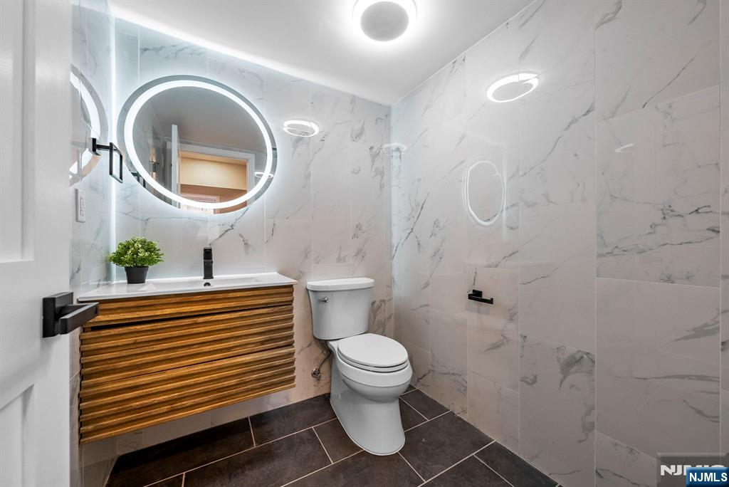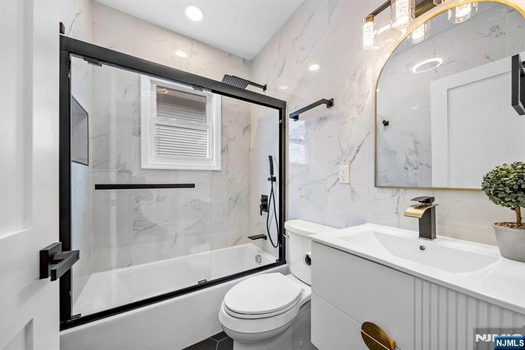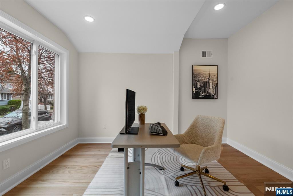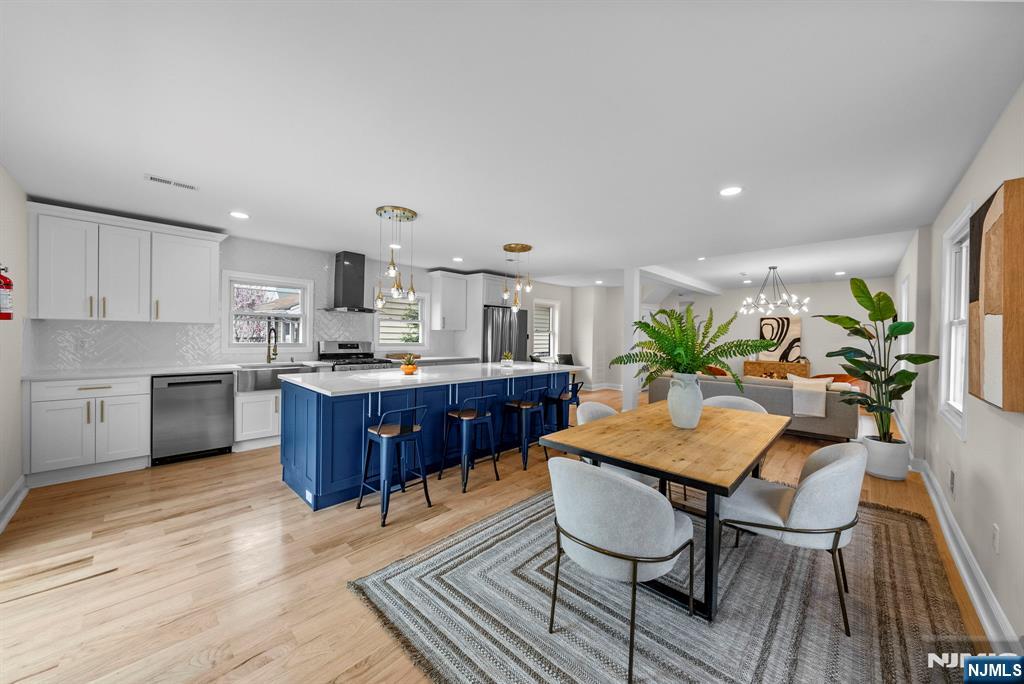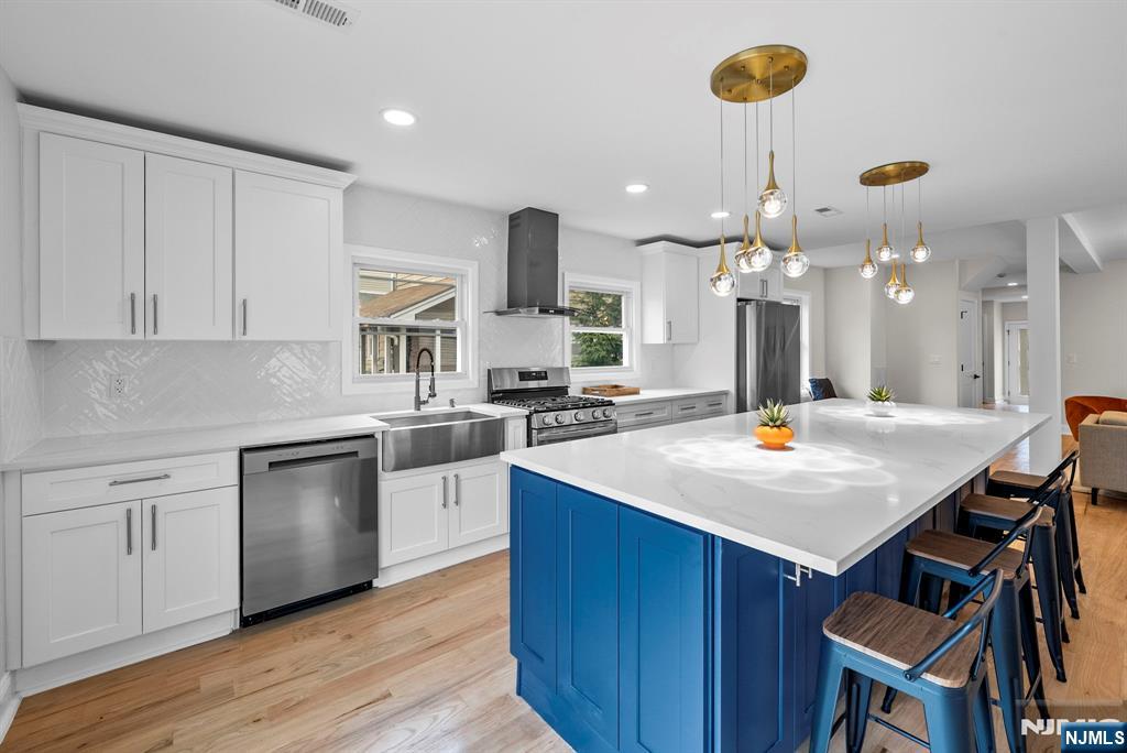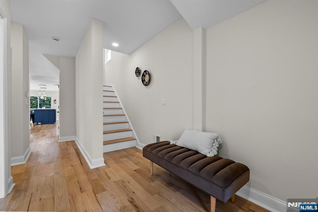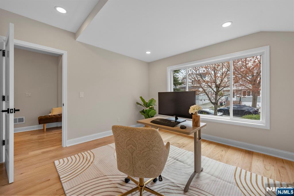 Introducing this show-stopping Colonial in the heart of Ridgefield Park, fully gut renovated and thoughtfully reimagined for luxury living. This 3-bedroom, 3.5-bath home features an open-concept layout with incredible natural light, high-end finishes, and effortless flow throughout. The first floor is anchored by an 12-foot kitchen island, surrounded by custom wood cabinetry, quartz countertops, and included brand new stainless appliances. French oak hardwood floors run throughout the home, creating warmth and continuity. The kitchen opens directly to a generous deck for seamless indoor-outdoor entertaining. A front-facing office offers a quiet work-from-home setup, while the finished basement with half bath adds flexible space for guests or recreation. Upstairs, the serene primary suite features a spa-style bath and a custom walk-in closet with direct access. The fenced backyard includes a shed and 3-car driveway.