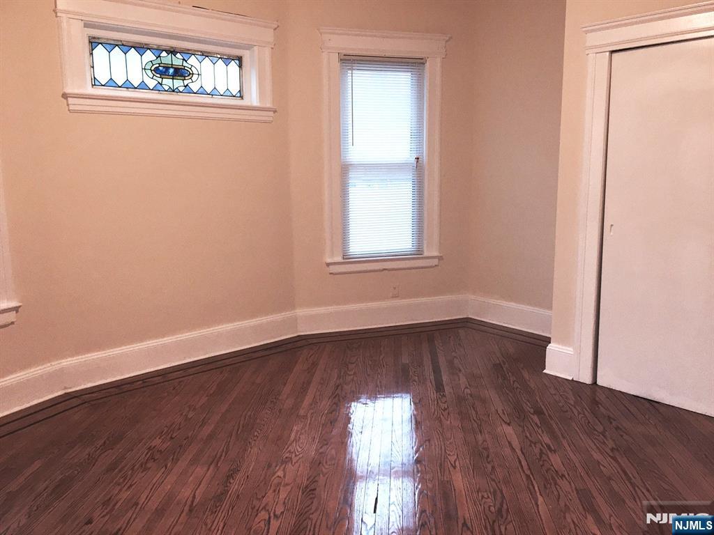 One-bedroom apartment on the 1st floor. Hardwood floors in living room & bedroom. Tenant occupied till 10/31/25. Apartment will be painted afterwards. Available to occupy by November 10th. Maximum occupancy: 2. No pets, no loud music & no smoking in and near the apartment. Security Deposit: 1.5 months. Tenant pays all utilities except cold water. All good-sized rooms & thermal windows. Refrigerator, gas range, washer & dryer provided. Tenant must have good credit and proof of ability to pay rent. 1 Parking space can be included if the tenant can commit to remove the snow from the sidewalk, front steps and driveway. Dedicated washer & dryer in basement. Use of Yard & front porch to be shared with Apt 2. Easy commute to NYC. Close to Bus #30 & #40 to Harrison Path Train and Newark Penn Station. Near shopping. Convenient to Rt. 21, Rt. 280, Turnpike and Parkway. Application, tenant credit & background check ($40 per adult), and proof of ability to pay rent required. Some photos taken before current tenants moved in.