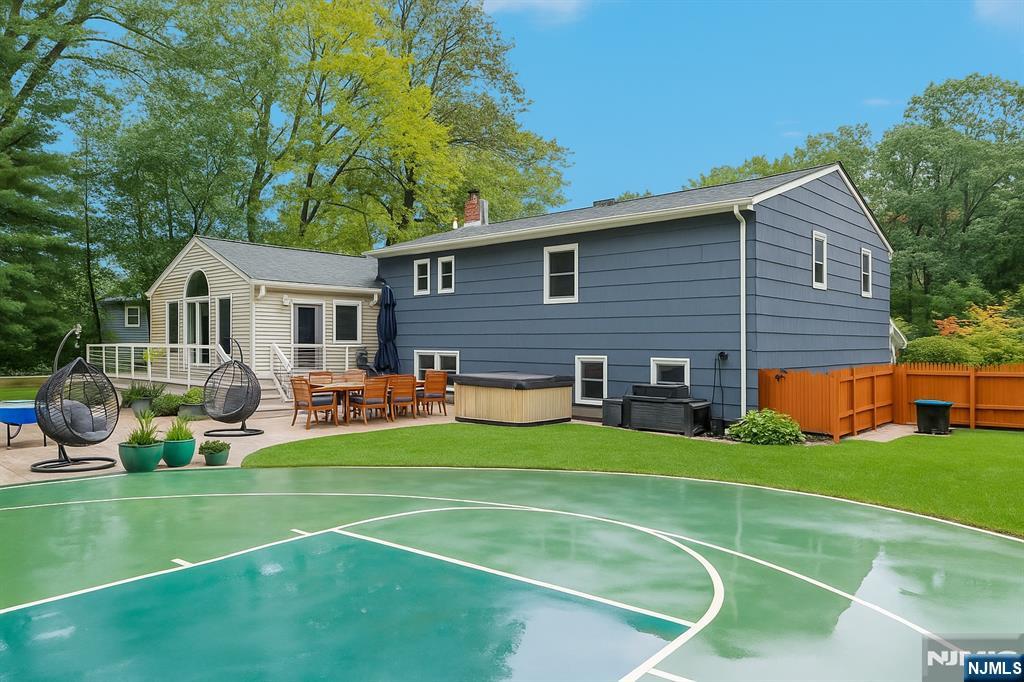 Beautiful 5-bedroom, 2.5-bath home nestled in highly desirable northern River Vale. This home perfectly combines modern comfort with timeless elegance. Enjoy an open-concept kitchen with custom cabinetry, a large center island, and seamless flow to bright living and dining spaces ideal for entertaining. The finished lower level includes a private home theater for movie nights or game-day gatherings. Step outside to your own backyard oasis featuring a heated in-ground pool, relaxing hot tub, soothing waterfall feature, outdoor fireplace, and basketball court  creating the ultimate resort-style retreat right at home. Surrounded by lush landscaping for privacy and tranquility. Conveniently located near top-rated schools, parks, shopping, dining, and easy NYC transportation. A rare opportunity to own a home that truly has it all in one of Bergen County’s most sought-after communities.