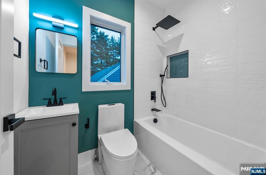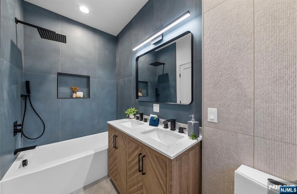 Welcome to this stunning new home. This newly built Home welcomes you with a spacious first floor featuring a bright living room, formal dining room, and a modern kitchen. A cozy TV room with a fire place provides an ideal retreat, while a comfortable bedroom and a full bath add convenience for guests or office. The second floor offers two bedrooms and a full bath, plus an additional bedroom with its own walk-in closet and en-suite bath. The oversized master suite impresses with a massive walk-in closet and a luxurious bath featuring a shower and a freestanding tub. The finished basement includes a convenient half bath and a stylish bar, perfect for entertaining. Outdoors, the backyard shines with a paver patio and plenty of open green space, complemented by a detached two-car garage. This home blends thoughtful design with practical living space, ideal for modern lifestyles.