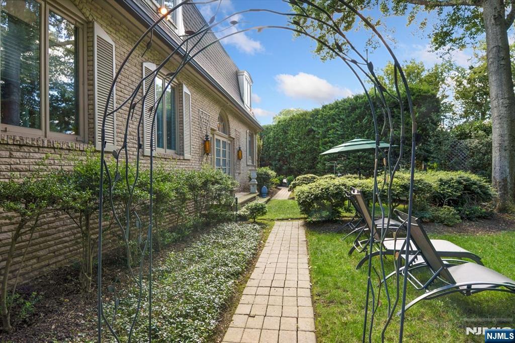 Welcome to this remarkable custom-built residence, designed with timeless mid-century flair and tucked away on a peaceful cul-de-sac.Offering over 4,265 sq ft of living space, this home showcases soaring ceilings, expansive interiors, and a versatile floor plan that adapts to a variety of lifestyles.With five generously sized bedrooms, it offers both elegance and flexibility.The right wing of the second floor serves as a private retreat,ideal as a suite, nursery, office, or gym.The open living room flows seamlessly into a custom family or dining room,where French doors open to the backyard for an inviting indoor-outdoor connection.The spacious eat-in kitchen is a chef's delight, blending thoughtful design with modern convenience. A highlight is the family room with gas fireplace,enhanced by a striking spiral staircase leading to the expansive primary suite.This private sanctuary features a spa-inspired bathroom and a dream-worthy walk-in closet Downstairs, the unfinished basement presents endless potential w/ wine cellar, lounge, recreation area, and abundant storage, plus a walkout to the garage.Outside, the property transforms into a true oasis. A babbling brook, preserve-like greenery, w/underground sprinklers, an expansive yard provide the ideal setting for gatherings or quiet reflection.The attached oversized two-car garage offers convenience and extra storage.Just minutes from NYC commuter routes, fine dining, and everyday amenities,this home is truly exceptional.