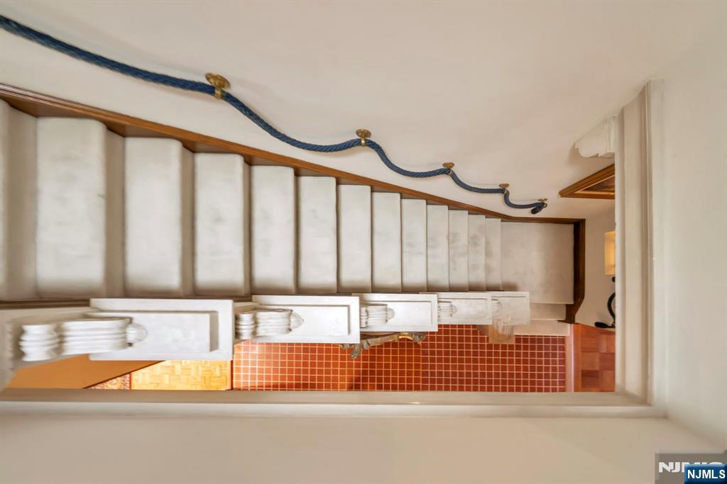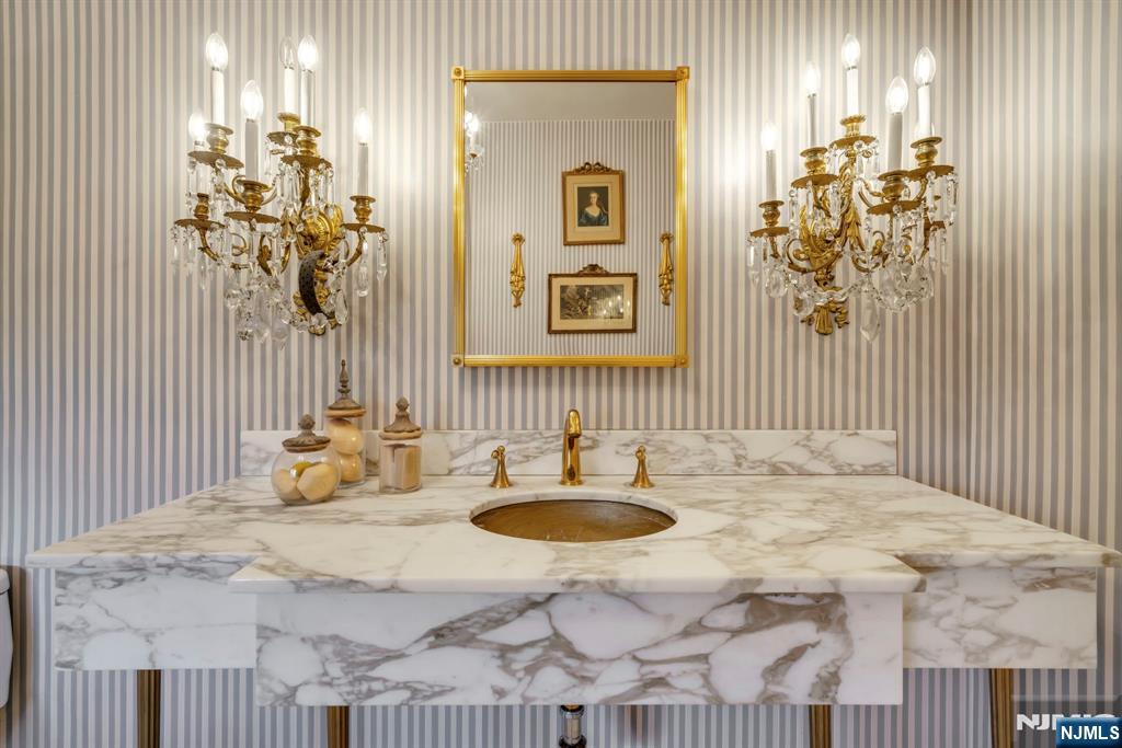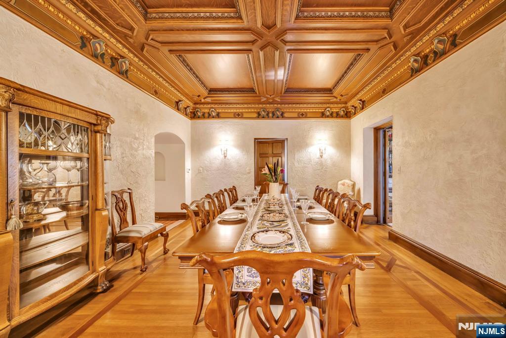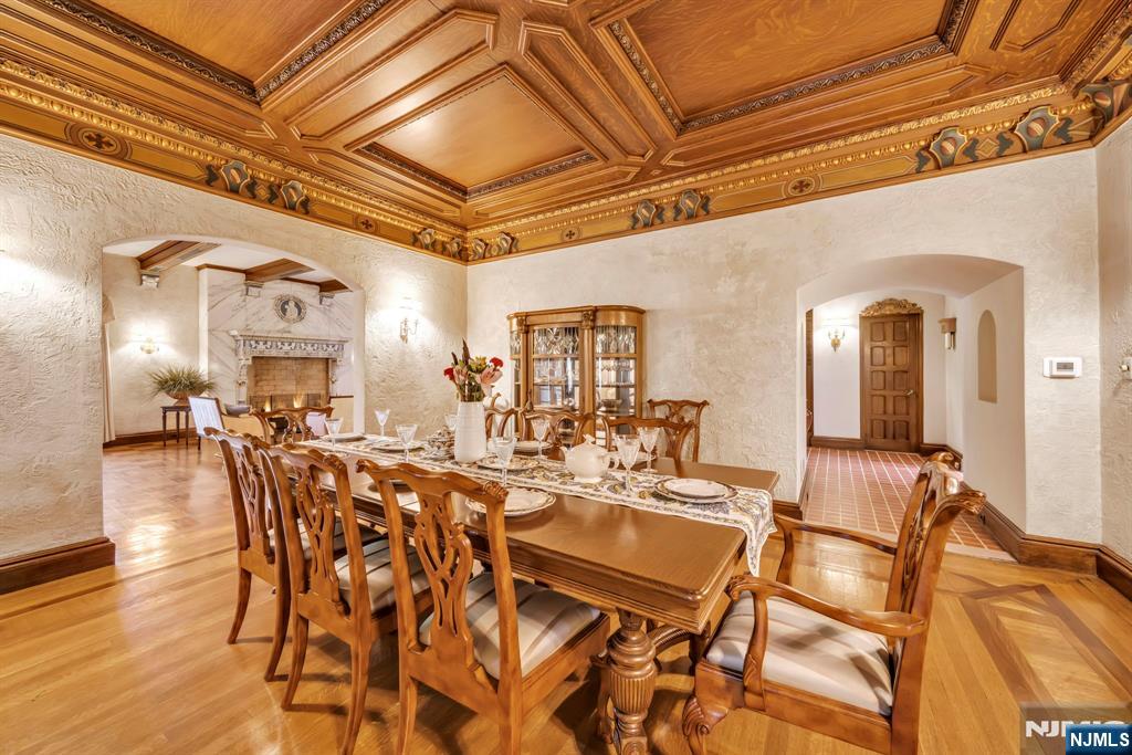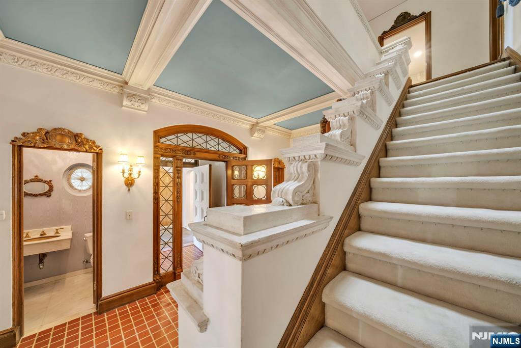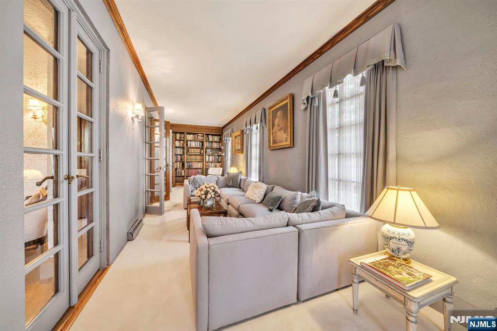 Built in 1927, this Spanish Colonial Revival estate offers 4,866 square feet of elegant living space on nearly half an acre in one of Glen Rock’s most distinguished residential settings. Defined by its mission tile roof, arched entries, and original millwork, the home blends historic character with expansive interiors suited for modern living. High ceilings enhance every level, beginning with a grand living room with fireplace, a sunlit family room, and a front sitting area enclosed by a series of large arched windows. The formal dining room is crowned with architecturally detailed coffered ceilings, while a library with built-ins provides a refined retreat. A versatile kitchen with pantry and a well-placed powder room complete the main level. Multiple exits lead outdoors to a private side courtyard and to a patterned-paver driveway that extends to the detached three-car garage. The upper level offers five bedrooms and two full baths, with the primary bedroom serving as a serene focal point for the floor. The finished lower level expands the living space with a recreation hall, media lounge, custom wine cellar, full bath, laundry, and ample storage. Landscaped grounds and extensive hardscaping unify the exterior and reinforce the estate’s architectural presence. This is a rare opportunity to own a residence of lasting quality and distinction in the heart of Glen Rock.