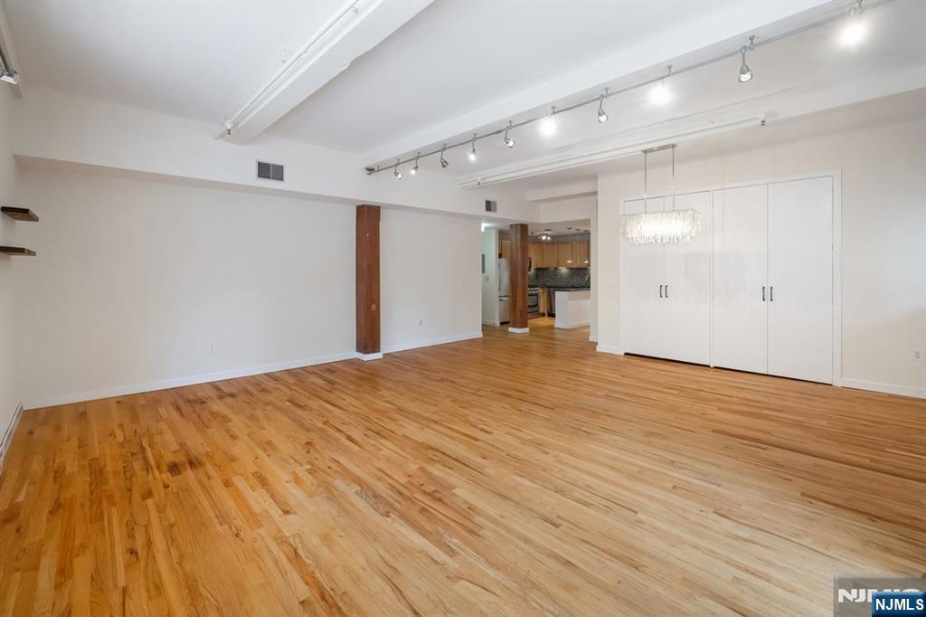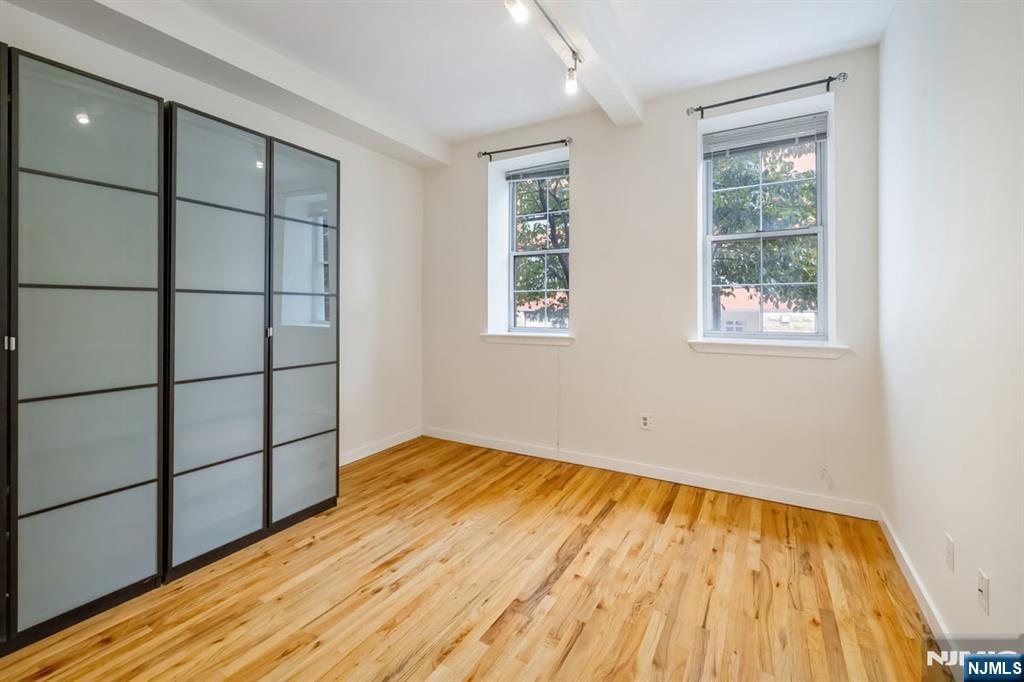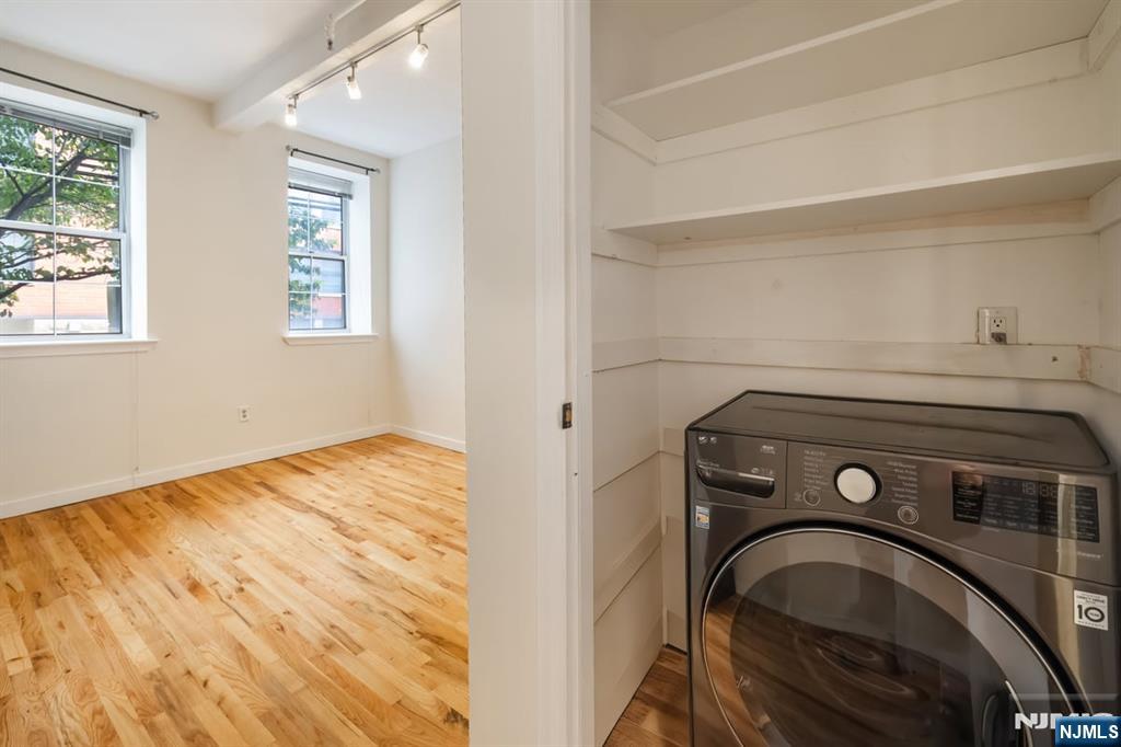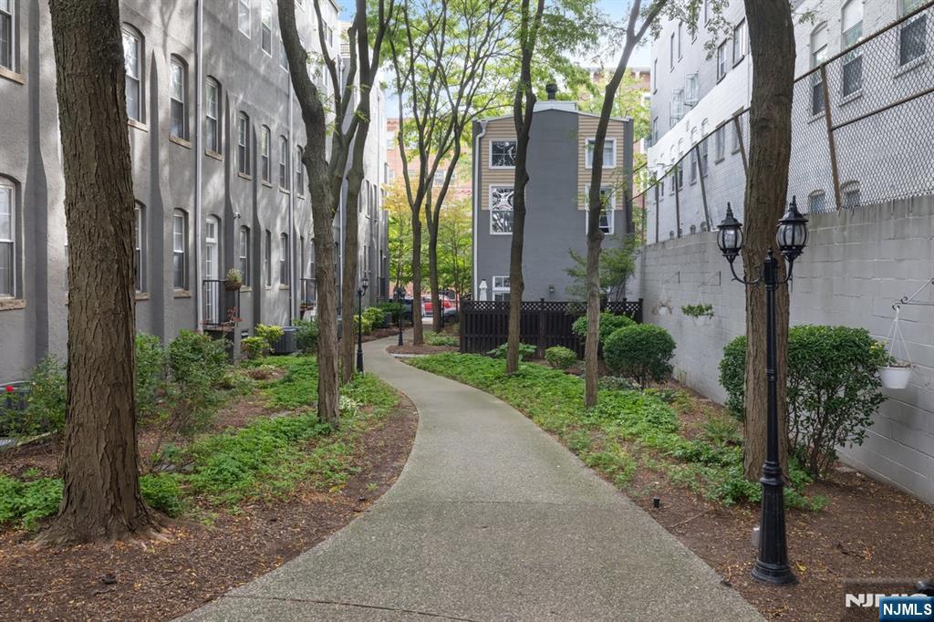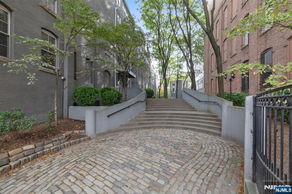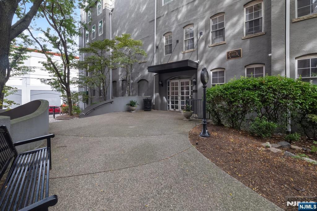 Step into this charming tree-lined courtyard and discover this loft-style residence that beautifull combines a historic character with modern comforts. Offering approximately 1,300 sq. ft. of living space, this home features a spacious living/dining area adjacent to an updated kitchen with granite countertops. High ceilings create an open airy feel, with hardwood flooring throughout. Enjoy the convenience of an in-unit washer/dryer (with additional laundry facilities available in the building), elevator access and designated garage parking included. Close proximity to transportation to NYC, shopping, parks and schools.