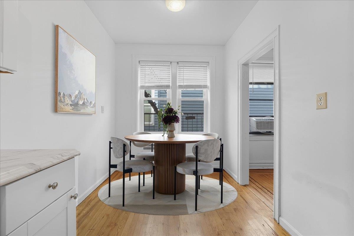 Ideally located for both commuting and everyday living, this oversized 771 sq. ft. one-bedroom blends charm and convenience, perfect for first-time buyers or investors. Just steps from Washington Park, it’s a short walk to the 9th Street/Congress Light Rail for PATH access and offers easy bus service to NYC. Union City’s and Jersey City’s vibrant restaurants are just minutes away. Located on the second floor, this corner pre-war residence features high ceilings, original hardwood floors, portrait moldings, an eat-in kitchen, a spacious living room, a large bedroom, and ample closets, including a cedar-lined one. Additional highlights include a private storage area and shared laundry in the lower level. Nearby parking is available for an additional fee.