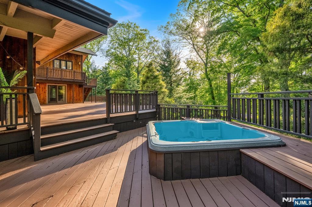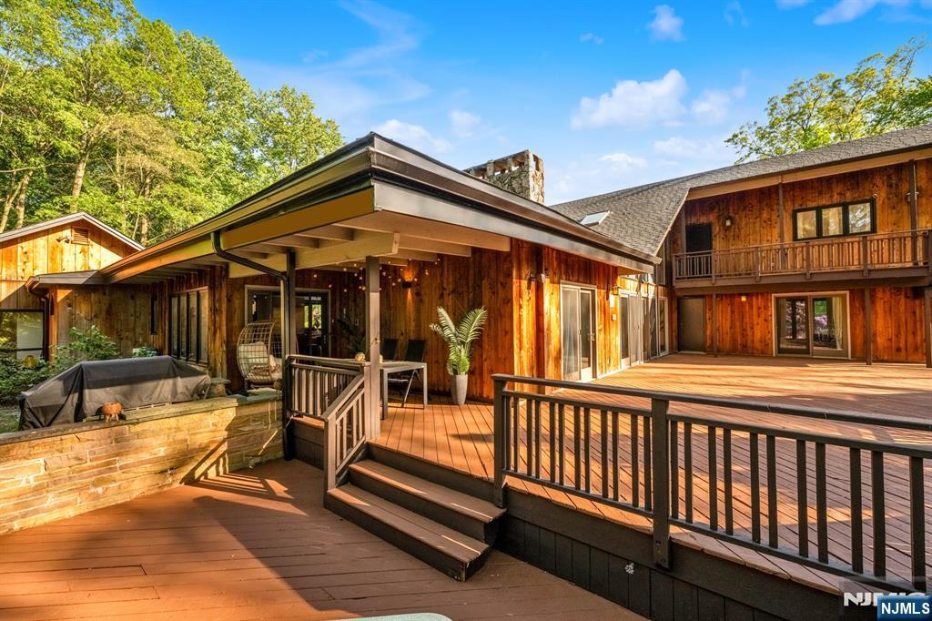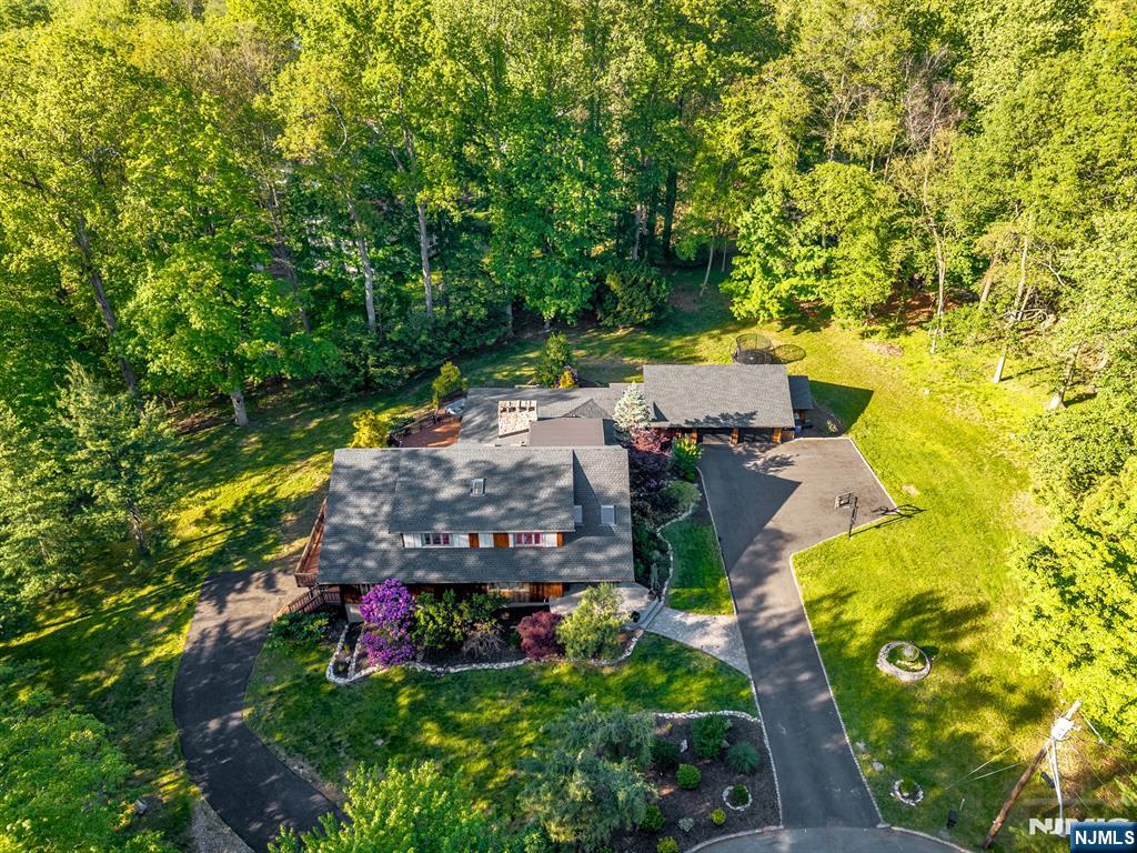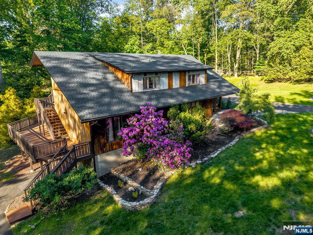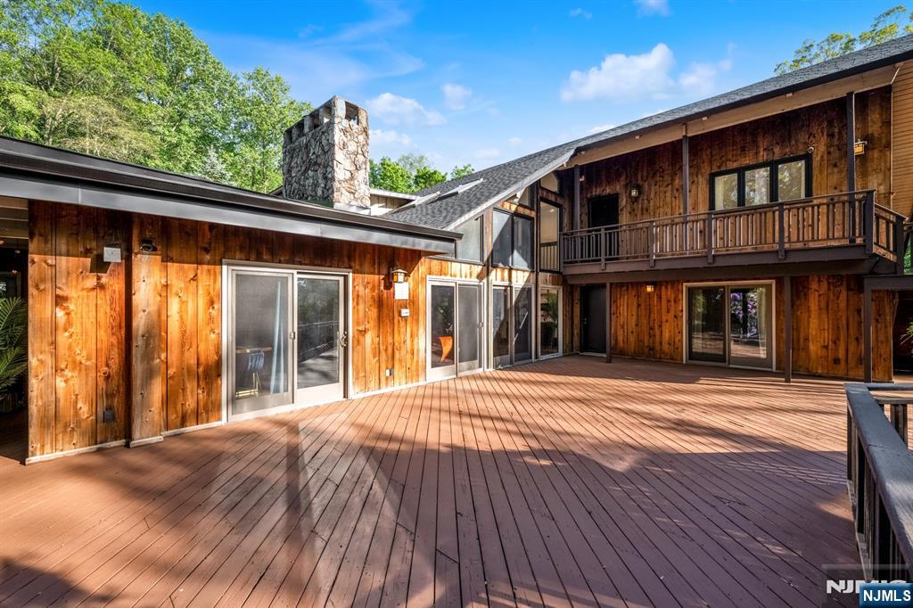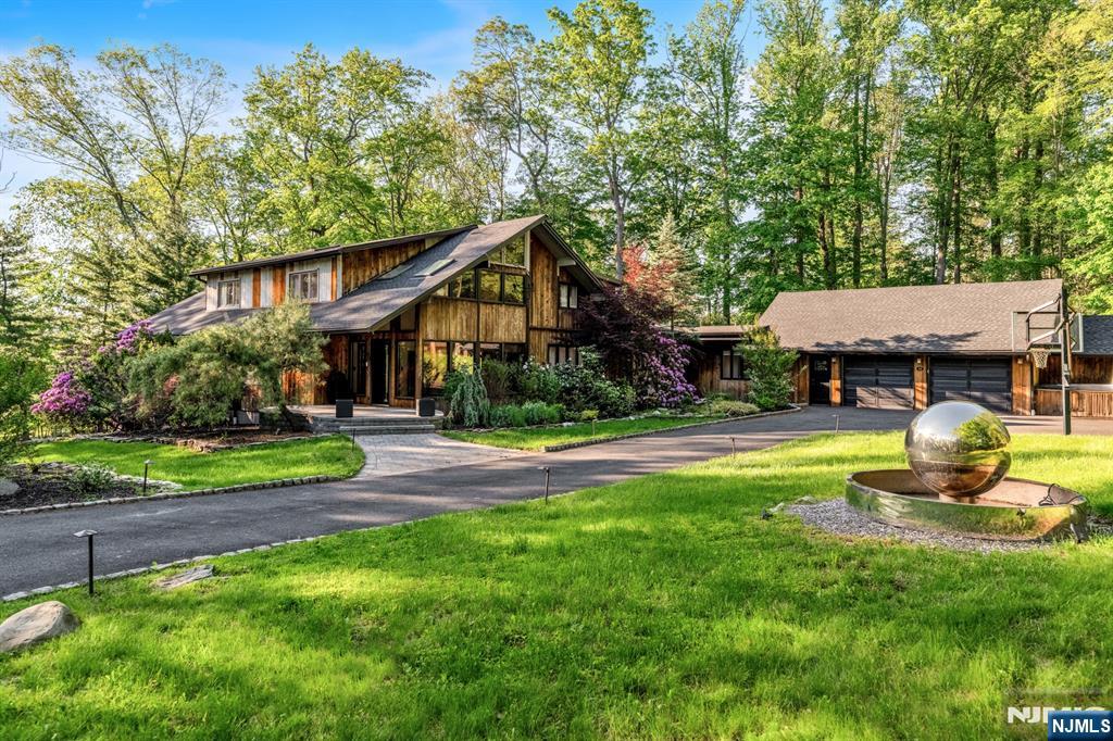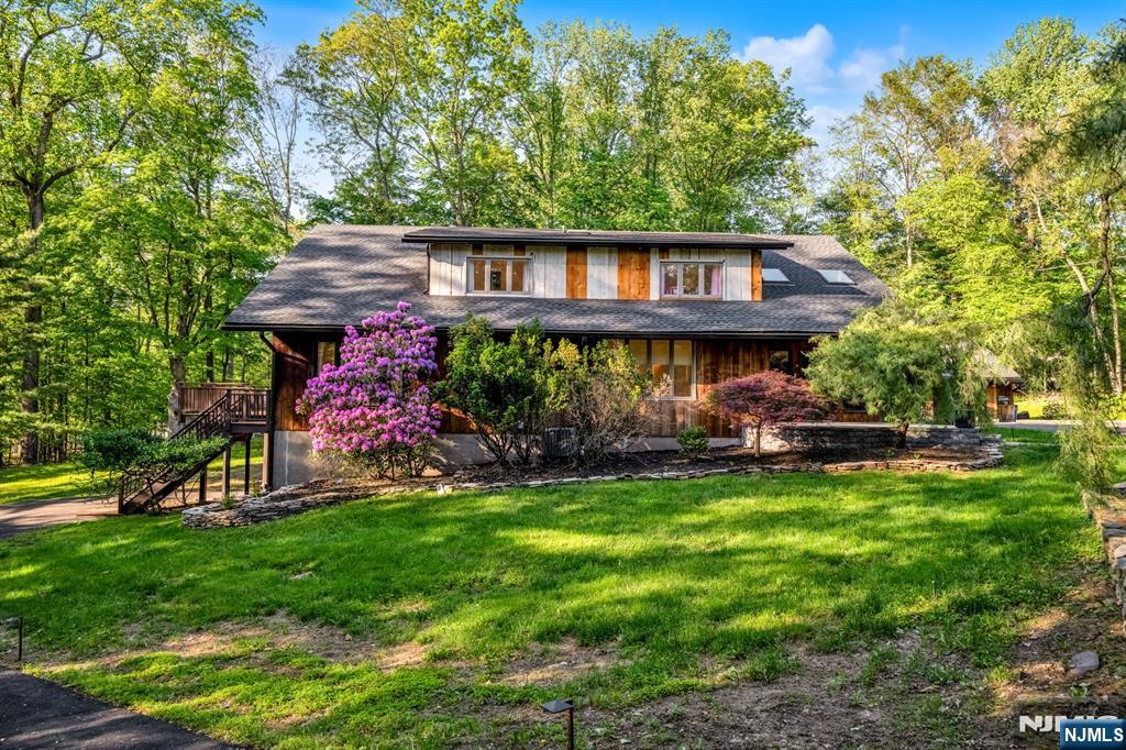 Spacious 5-Bedroom Contemporary on 1.5 Acres. Nearly 5,000 sq. ft. of living space, this 5-bedroom, 4-bath home is ideal for extended families, set on a private 1.5-acre cul-de-sac lot on the Montvale/Upper Saddle River border (with modern ground system, not septic). The open floor plan is filled with sunlight, featuring brand-new hardwood floors, a modern lighting system, and two fireplaces. The first-floor master suite includes a luxurious bath and direct access to a spectacular oversized deck, perfect for entertaining or simply enjoying private sunrise and sunset views. Four additional bedrooms upstairs offer generous space, while a finished basement expands living options for a gym, office, or media room. Upgrades include a brand-new roof, remodeled bathrooms with Italian tile, new asphalt driveways, and a 3-car garage. Extraordinary landscaping and a massive deck create an outdoor oasis for family gatherings. This move-in ready contemporary blends space, privacy, and modern comfort on a rare oversized lot. FAST CLOSING PREFERRED & MOVE IN READY HOUSE!