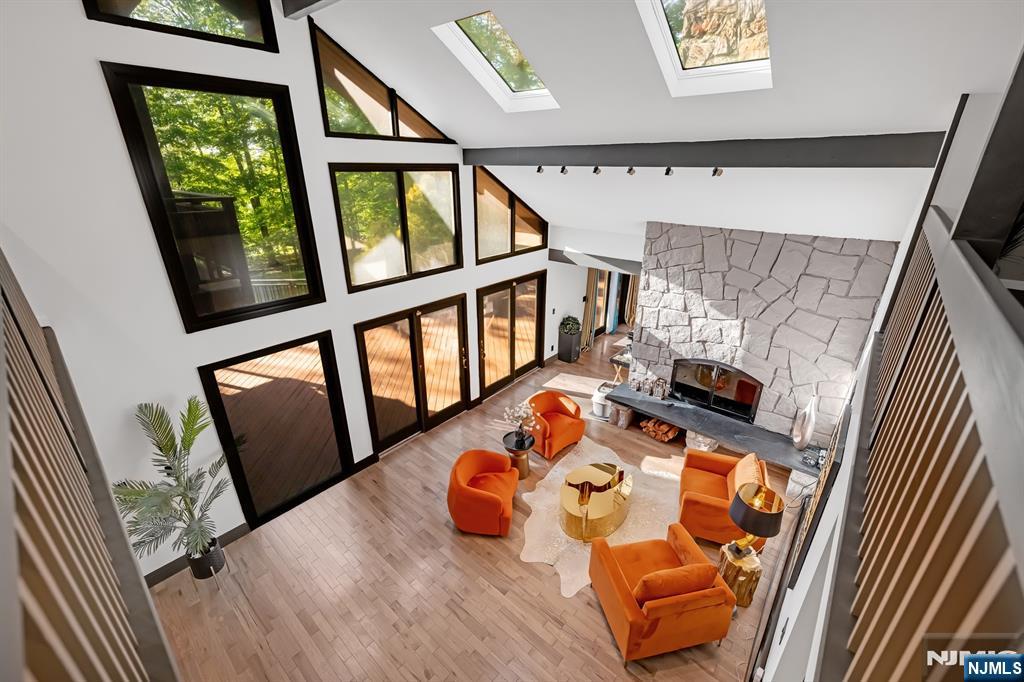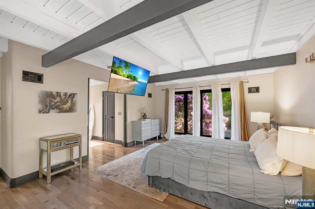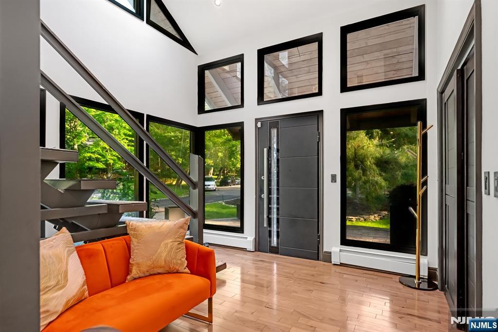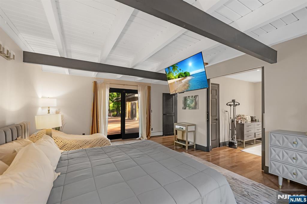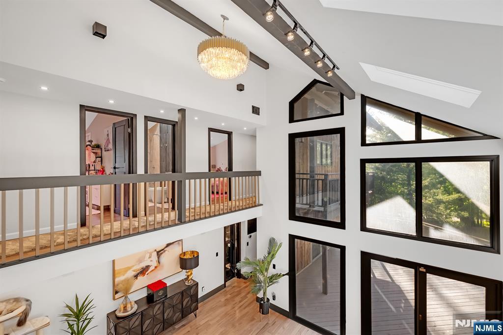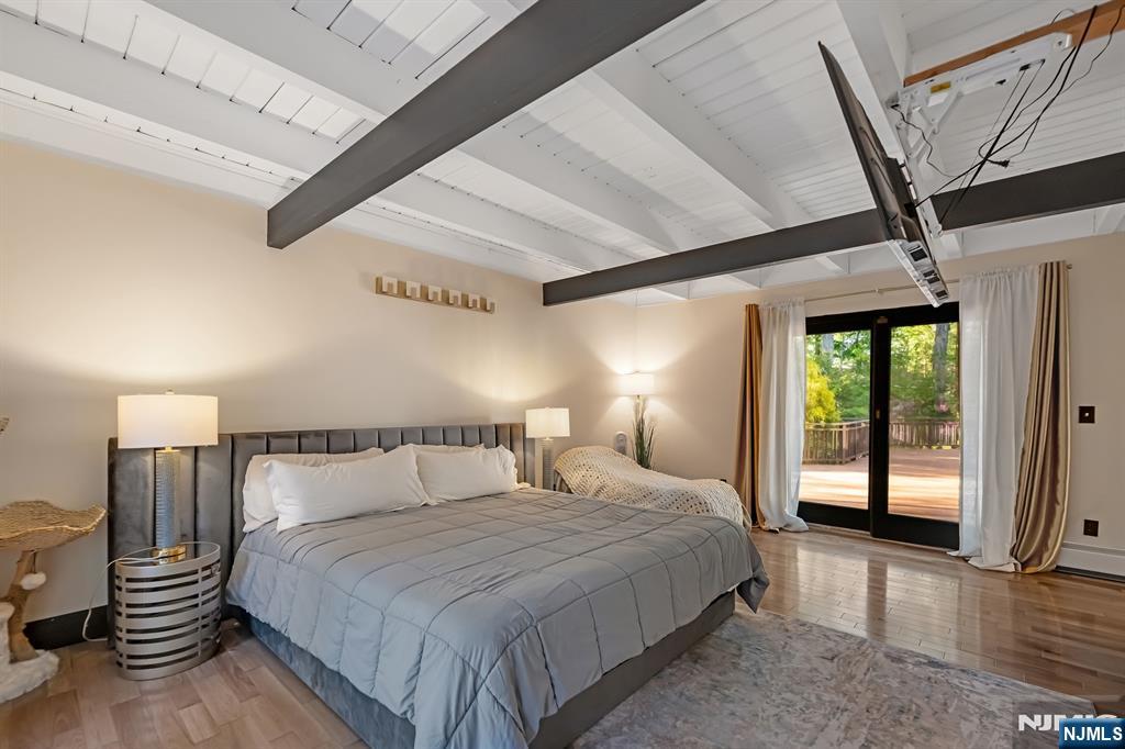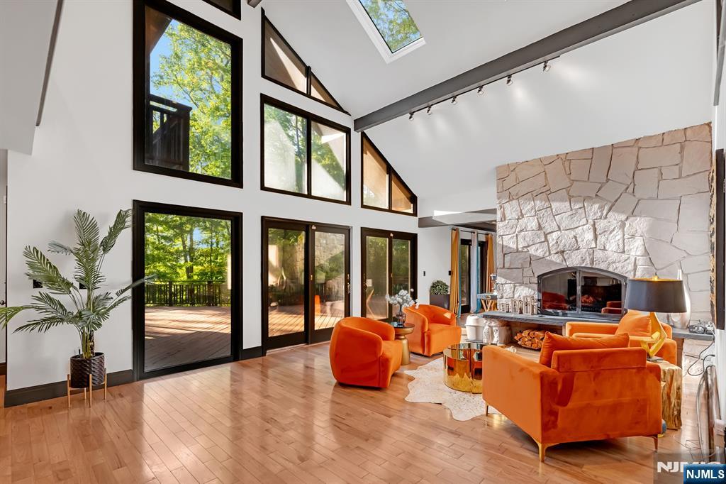 Spacious 5-Bedroom Contemporary on 1.5 Acres. Nearly 5,000 sq. ft. of living space, this 5-bedroom, 4-bath home is ideal for extended families, set on a private 1.5-acre cul-de-sac lot on the Montvale/Upper Saddle River border (with modern ground system, not septic). The open floor plan is filled with sunlight, featuring brand-new hardwood floors, a modern lighting system, and two fireplaces. The first-floor master suite includes a luxurious bath and direct access to a spectacular oversized deck, perfect for entertaining or simply enjoying private sunrise and sunset views. Four additional bedrooms upstairs offer generous space, while a finished basement expands living options for a gym, office, or media room. Upgrades include a brand-new roof, remodeled bathrooms with Italian tile, new asphalt driveways, and a 3-car garage. Extraordinary landscaping and a massive deck create an outdoor oasis for family gatherings. This move-in ready contemporary blends space, privacy, and modern comfort on a rare oversized lot. FAST CLOSING PREFERRED & MOVE IN READY HOUSE!