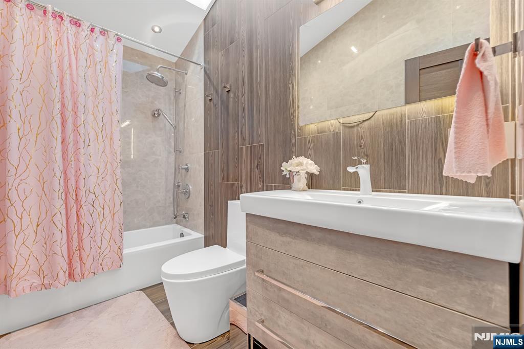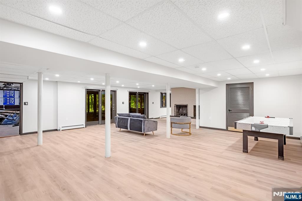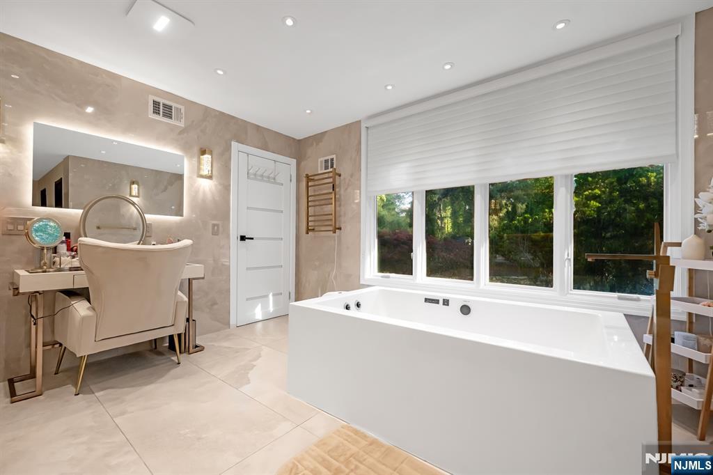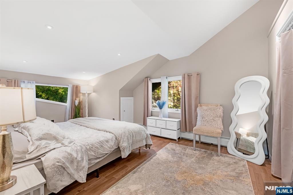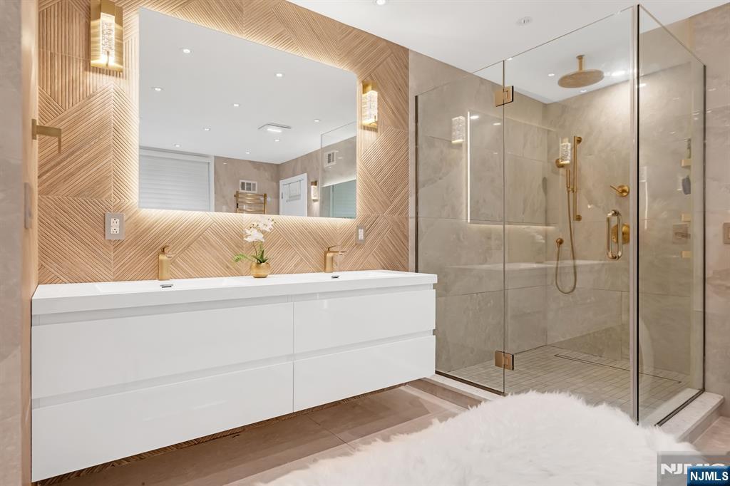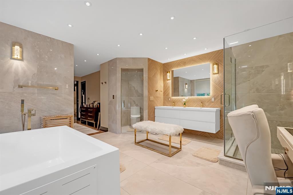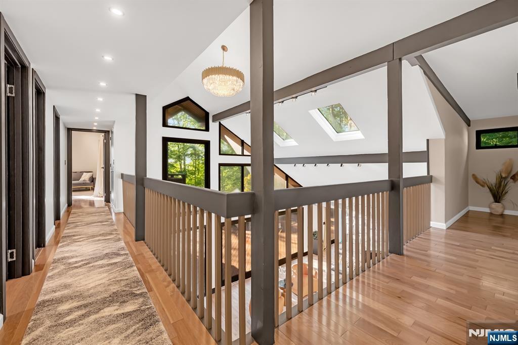 Spacious 5-Bedroom Contemporary on 1.5 Acres. Nearly 5,000 sq. ft. of living space, this 5-bedroom, 4-bath home is ideal for extended families, set on a private 1.5-acre cul-de-sac lot on the Montvale/Upper Saddle River border (with modern ground system, not septic). The open floor plan is filled with sunlight, featuring brand-new hardwood floors, a modern lighting system, and two fireplaces. The first-floor master suite includes a luxurious bath and direct access to a spectacular oversized deck, perfect for entertaining or simply enjoying private sunrise and sunset views. Four additional bedrooms upstairs offer generous space, while a finished basement expands living options for a gym, office, or media room. Upgrades include a brand-new roof, remodeled bathrooms with Italian tile, new asphalt driveways, and a 3-car garage. Extraordinary landscaping and a massive deck create an outdoor oasis for family gatherings. This move-in ready contemporary blends space, privacy, and modern comfort on a rare oversized lot. FAST CLOSING PREFERRED & MOVE IN READY HOUSE!