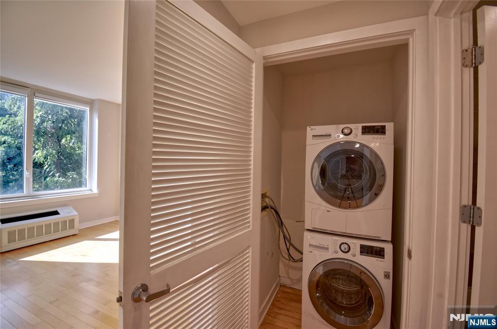 Experience luxury living in the highly desirable Trio high-rise! This spacious 2-bedroom, 2-bath condominium offers approximately 1,124 square feet of contemporary design. Enjoy abundant natural light and serene woodland views through floor-to-ceiling windows, thanks to the home’s bright east and south-facing exposure. The open-concept layout features a chef’s kitchen with granite countertops and stainless steel appliances, 9-foot ceilings, and beautiful hardwood floors throughout. Additional highlights include in-unit laundry, generous walk-in closets, and a reserved parking space with an EV charging outlet. The pet-friendly building offers an array of upscale amenities, including a doorman, exercise room, health club, on-site management, play area, and 24-hour super for your convenience and peace of mind. The association fee covers heat, hot water, common area maintenance, parking fee, and water—providing exceptional value and worry-free living. Don’t miss this rare opportunity to own a bright, airy residence in one of the area’s most sought-after communities!