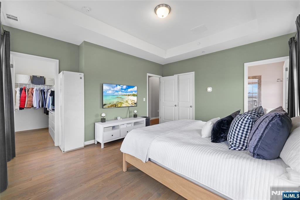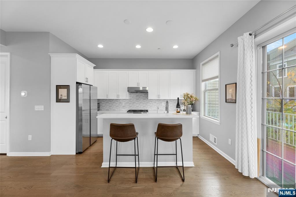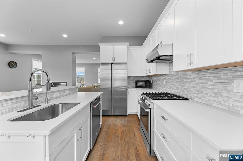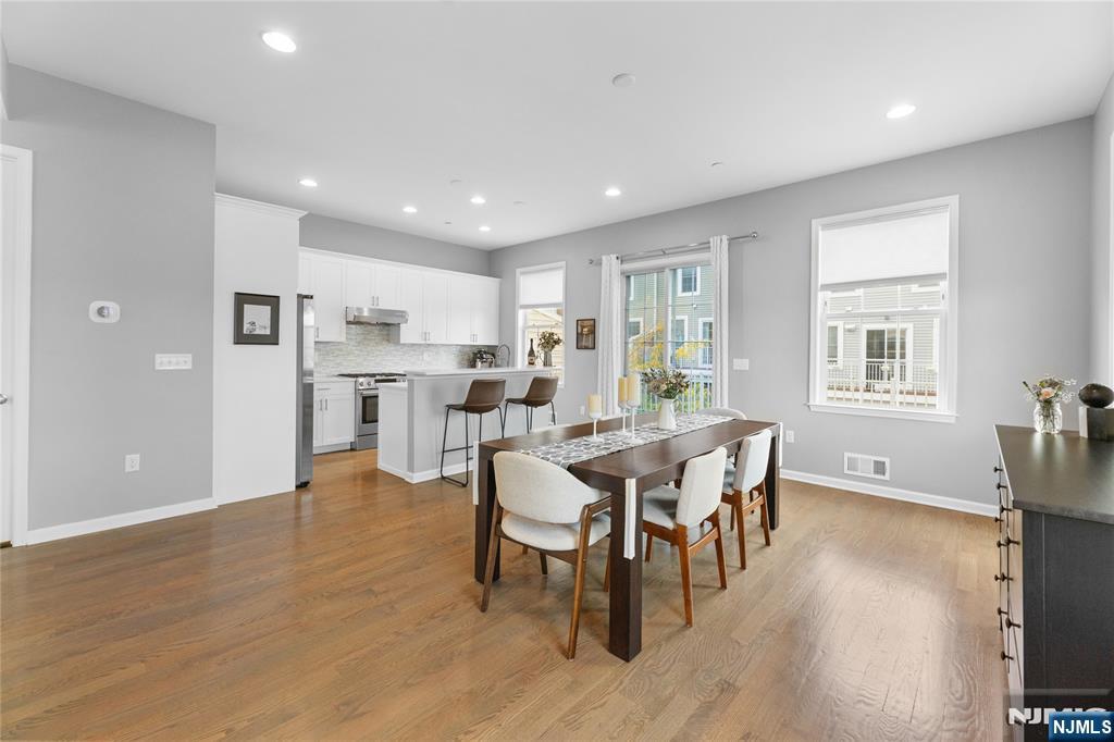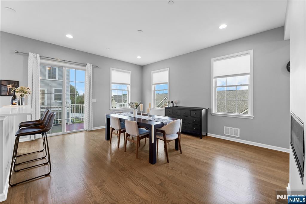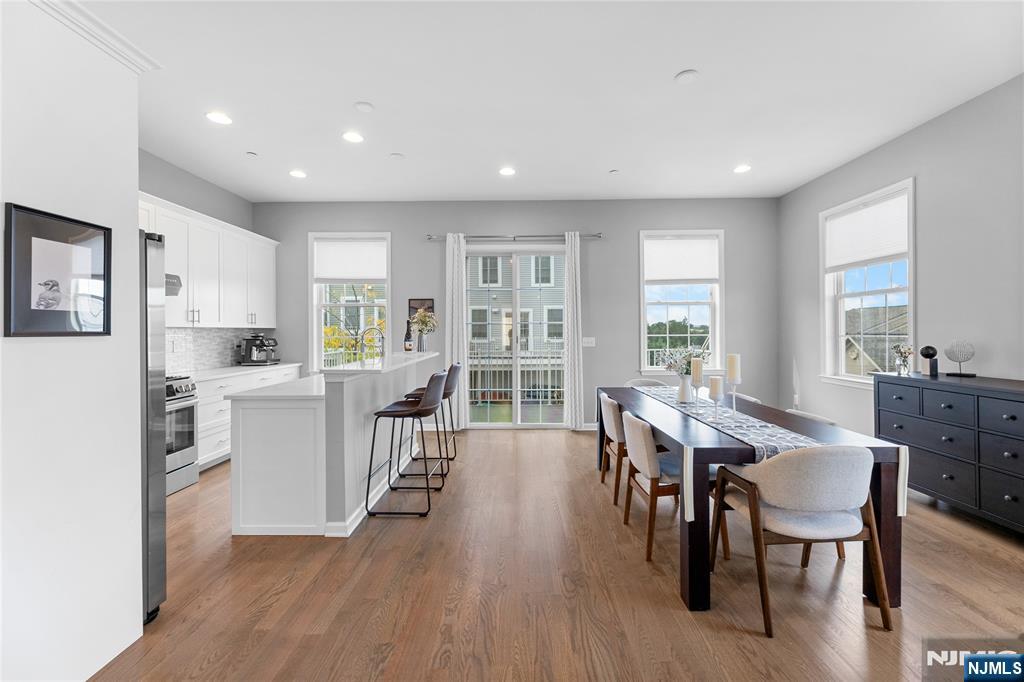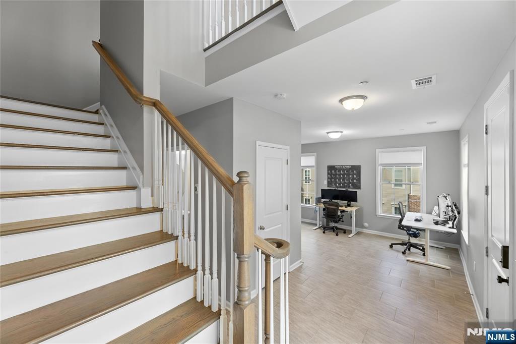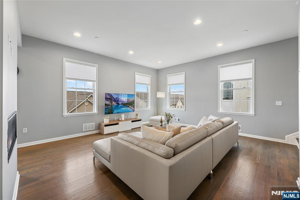 Call Charmy Morzaria 609.619.2198 to tour.Welcome to NORTH EAST Facing,END UNIT,Colonial Style Luxury townhome located in FINEST & sought after Wright Place Community of Wood Ridge;ONLY 3 YEARS OLD & so much to offer including approx.2 years of TAX ABATEMENT!Just 30 mins from Manhattan,close to major turnpike/freeways,offers ease of commute to NYC,Hoboken,Jersey City,Secaucus.Wood Ridge has its own train station at Just 5 MINS WALK from this home & also offers option of 2 buses going into Manhattan that runs every 10-15 mins.This home has(NORTH EAST facing)front & rear entrance w/2car garage,2 car driveway(EV Charger Outlet equipped).1st floor has 9ft high ceilings,tall windows,2 closets,open Flex space can be used as entertainment space/office space or can be easily converted to bedroom#4,this level also has half bath.2nd floor boasts 10ft high ceilings,tall windows,massive dining space,modern Kitchen w/breakfast bar,SS appliances,Quartz countertops,large living room w/outdoor deck. Open concept perfect for entertaining.3rd floor has primary bedroom w/full bath, his&her closets,2 add'l bedrooms,full bath & laundry room;2 Zone heating/cooling,hardwood floors throughout.Wood-Ridge has so much to offer;good schools,restaurants,Cafes,liquor shop,pet grooming,phenix salon,sports field,parks,just steps away from Catherine Doyle school,on-site train station and buses close by for for easy NYC commute.Perfect home for buyers+a great investment option with high rent potential.