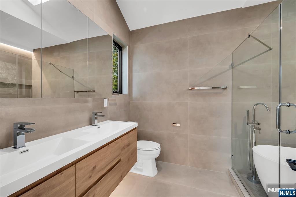 Experience the best new construction in Fair Lawn. This 5-bedroom, 5-bath modern home features a dramatic two-story foyer, 10 ft ceilings, and a chef’s kitchen with quartz finishes and Fisher & Paykel appliances. The spa-inspired primary suite offers a freestanding tub, rain shower, and double vanity. A finished basement with wet bar and full bath adds versatile living space. With smart home security, EV-ready garage, and energy-efficient design, this residence blends style, comfort, and convenience just 12 miles from NYC and close to top-rated schools