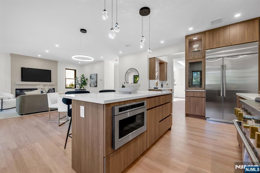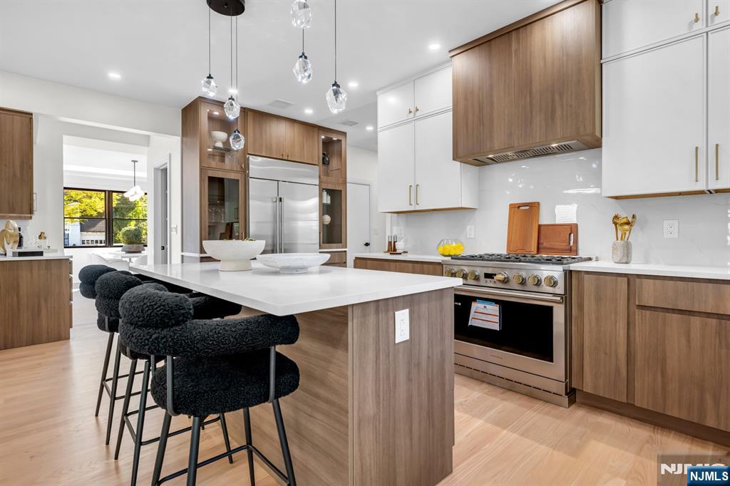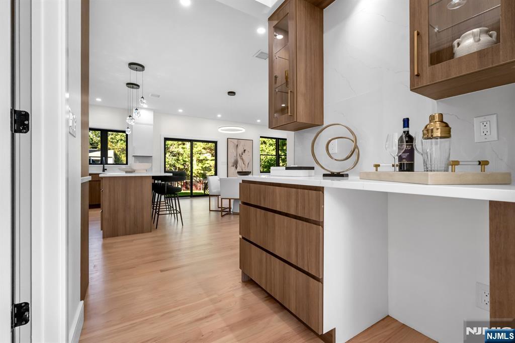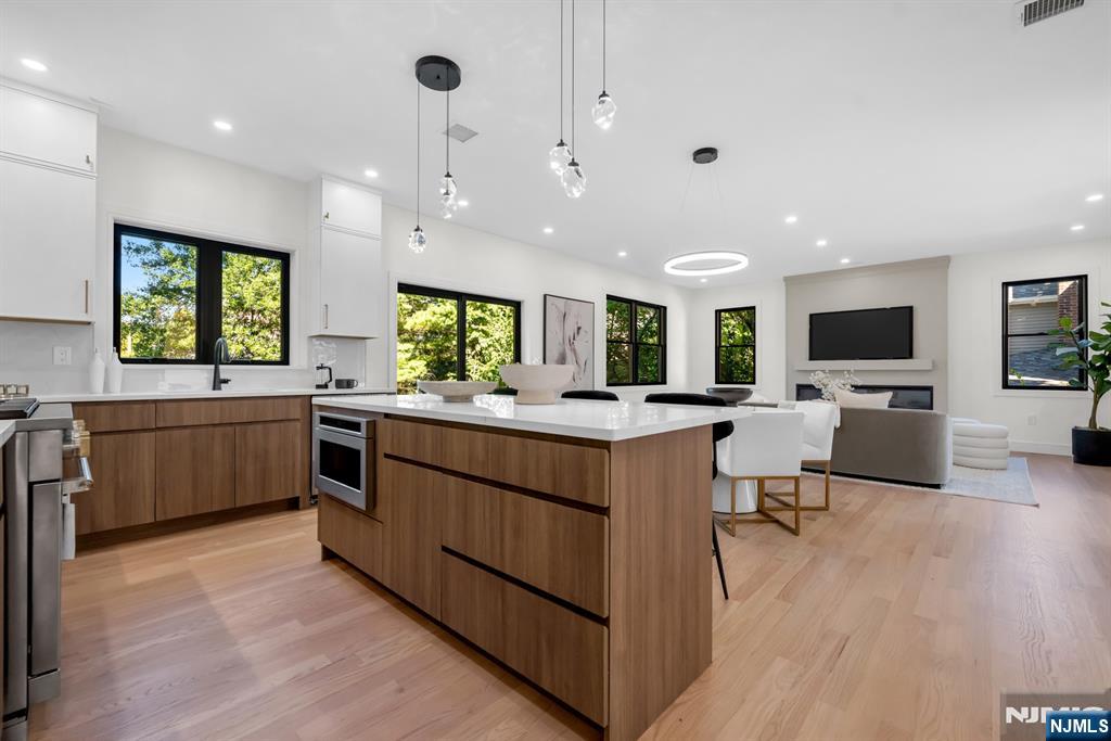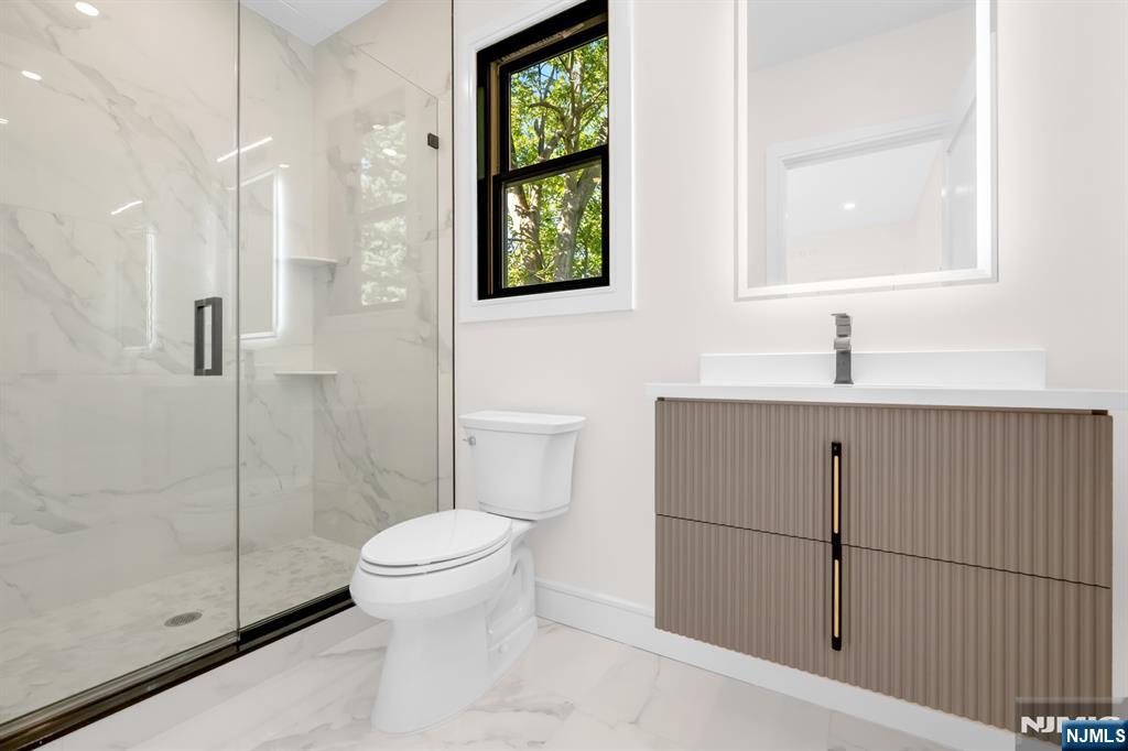 Experience exceptional quality and craftsmanship in this gorgeous new build! Designed with timeless elegance and a modern, open floor plan, this home offers 5 bedrooms, 5 full bathrooms, and 2 half baths, with every bedroom featuring its own en-suite bathroom & walk-in closet. A welcoming foyer opens to formal living and dining rooms, leading into a spacious great room with fireplace that flows seamlessly into the showstopping chef’s kitchen. Highlights include professional-grade appliances, a massive center island, custom cabinetry, and a butler’s bar with wine fridge. The first floor also includes a versatile bedroom suite, full bath, and stylish powder room. Upstairs, the luxurious primary suite is complete with a spa-inspired bathroom and two custom walk-in closets. An upstairs laundry room and additional en-suite bedrooms ensure convenience for all. The large finished basement offers endless possibilities with a huge recreation room, utilities, and powder room. Attached 1-car garage plus oversized driveway. New construction built on an existing foundation. Located on Manning Ave in the heart of River Edge, this home is within walking distance to top-rated schools and NYC transportation.