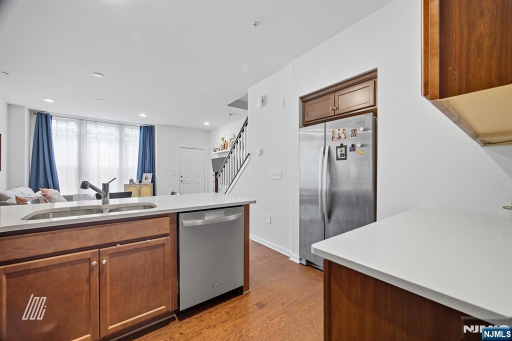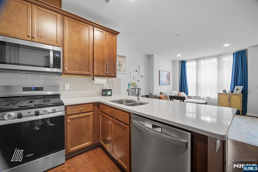 info@39arnolddrive.com // Welcome to this townhome built in 2022 with over a year left on its tax abatement program in the desirable Wesmont Station community. The home’s brick façade and covered entry lend curb appeal, while inside an open-concept main level greets you with natural light and wood floors. Enjoy cooking in the modern kitchen featuring stainless steel appliances, quartz counters, tile backsplash, gas range, microwave, and a breakfast bar that opens to the living and dining spaces for easy entertaining. A full bath with a shower sits just behind the kitchen, adding convenience. Upstairs, the primary suite includes a generous bedroom and walk-in closet, and the full bath with two sinks and tub/shower has doors to both the primary bedroom and hallway. A second bedroom and in-unit laundry complete the upper level. Outside, stroll along landscaped pathways to nearby playgrounds, dog park, and athletic fields. NJ Transit’s Wesmont Station is moments away for a quick commute to NYC, and local shops, eateries, and highways are nearby. With low-maintenance living and community amenities, this townhome delivers suburban comfort with urban accessibility. Additional highlights include central air, forced heat, an attached garage, and driveway. The neighborhood offers tot lots, athletic fields, and a dog park. Close to major highways, this home offers comfort and convenience. Enjoy shopping and dining options. Modern finishes throughout home.