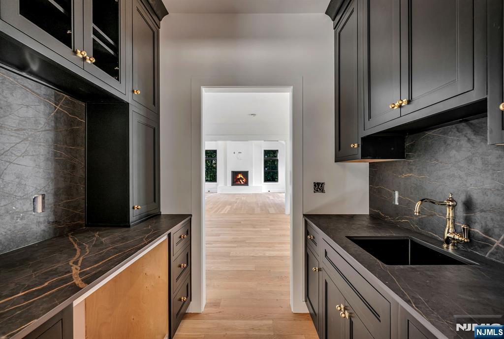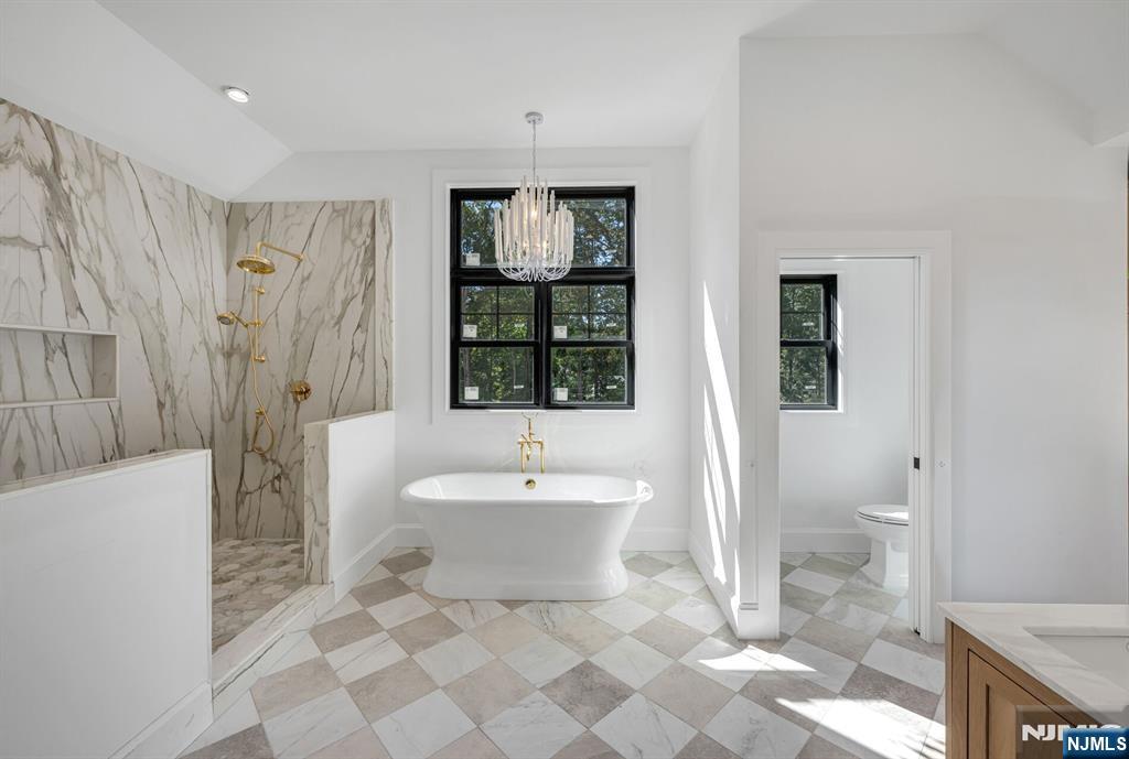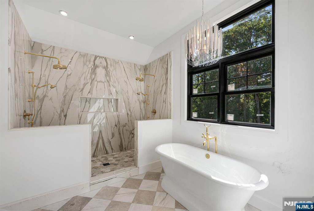 Stunning NEW construction Hampton style home located on the East Hill of Upper Saddle River is the epitome of luxury. This custom-built masterpiece by high end builder showcases 7,961 sq ft on 3 levels. Gorgeous exterior w/ covered front porch, sweeping roof lines & large level property. Enter to a 2 story EF w/ wide plank white oak floors, banquet size DR w/cstm clg, large LR w/panel walls. Dream designer kitchen w/ breakfast rm with all the amenities, custom island, high end appliances, built-in coffee bar, opens to outdoor living space w/raised 36' x18' bluestone patio w/outdoor kitch & FP. 2-story great rm w/ vaulted ceiling, custom beams & FP opens to patio. First fl BR, full bath, pantry, butler pantry, powder rm, & built-in mudroom area w/ access to 3-car garage w/ EV charger complete the 1st level. The second level offers 5 large BRs, 3 en-suite, 2 Jack & Jill, office, & laundry rm. The primary suite is a masterpiece w/ vaulted ceiling showcasing custom beams, FP, 2 WICs, & luxurious bath w/ oversized marble shower, dual vanity & soaking tub. The finished lower lvl offers a 7th BR, full bath, gym, theater, rec area, kitchen, & 2nd laundry rm. CAT5 cables all BRs, gym, theater, office, & great rm. Movie rm w/ 120 in. retractable acoustic weave screen, projector w/ wall speaker subwoofers & data tower. Security w/ 16 port w/ 9 cameras. Prewired for 6 Wifi hotspots. Wired speakers and dedicated amps to kitch, back patio & gym. 26 KW generator. Truly exceptional!