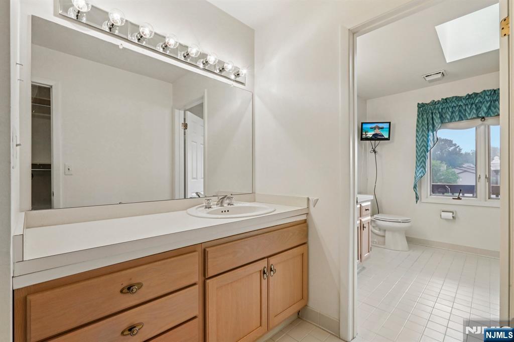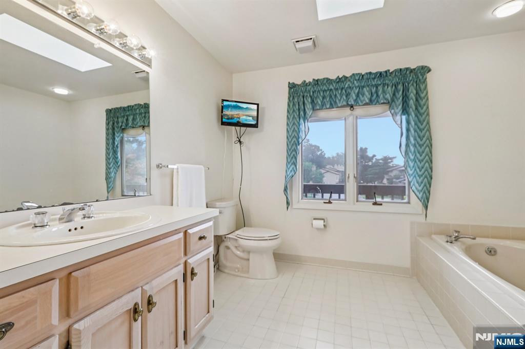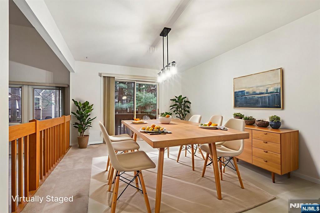 2 bedroom 2 full and 1 half bath Sycamore unit with 1-car garage and full, finished lower level offers 2,000 sq. ft. of living space (including the finished portion of lower level). The main level features an eat in-kitchen with granite counters, tiled backsplash, wall oven, newer SS fridge, cooktop and dishwasher, and a separate eat-in area for your informal dining. For more formal dining, a large dining room overlooks a sunken living room with cathedral ceiling, gas fireplace and sliders to a deck. The Upper level offers a spacious primary bedroom with custom fitted walk-in closet and a fitted double-door closet, along with a primary bath with jacuzzi, stall shower, skylight and a separate dressing area. An additional bedroom with private deck and a hall bath with shower over tub and skylight complete the Upper level. The Lower level offers a large recreation/media room, laundry room, and loads of storage. Located on beautiful Garret Mountain, Wedgewood Knolls enjoys spectacular sunsets and offers an outdoor pool, clubhouse, lighted tennis and pickle ball courts, and a bocce court. Great location for train and bus commuting, shopping, dining. Getting anywhere is a breeze from Wedgewood Knolls!