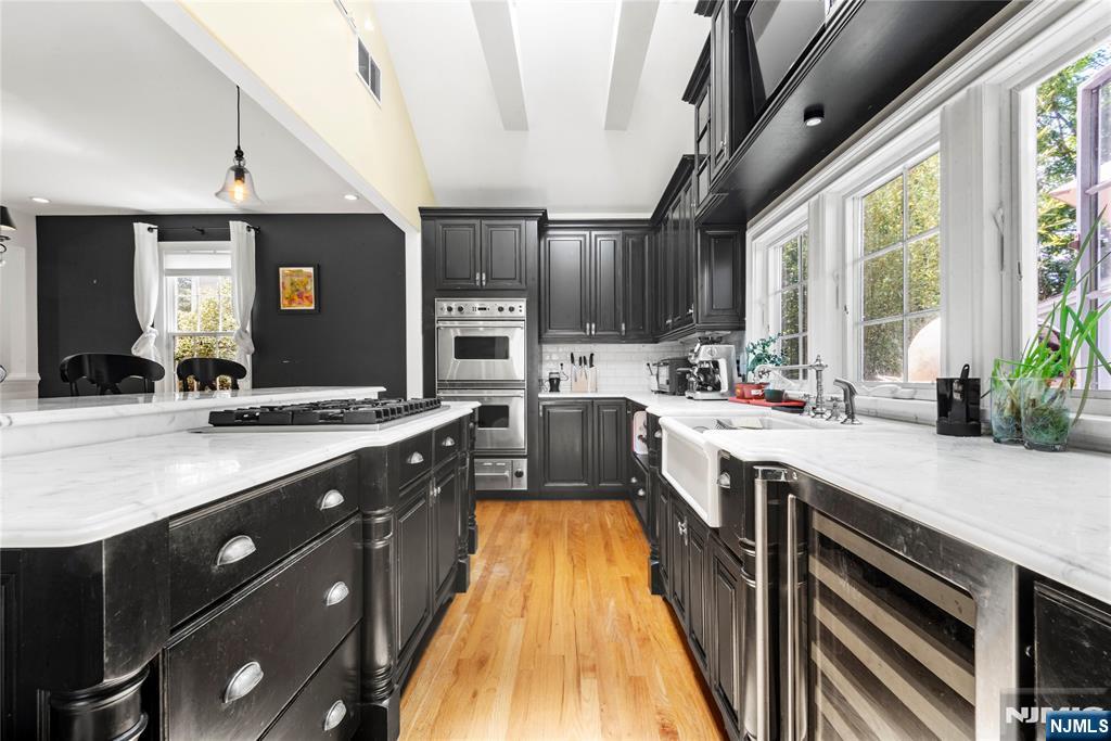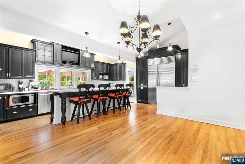 This gorgeous custom-built expanded split is located on Cresskill's east hill, situated on the quiet side of Madison Avenue. The house features an inviting entry foyer that leads into a spacious living room. The dining area is open to a spectacular 20-foot kitchen, boasting a large center island, vaulted ceiling, custom cabinets, a 48' refrigerator, and double wall oven, a warming drawer, and a wine refrigerator. Upstairs, you'll find the luxurious master bedroom suite with a large walk-in closet, a master bath complete with a Jacuzzi tub, vaulted ceiling, and skylight. There are two more generously sized bedrooms with ample closet space. The lower level features a den, laundry area, and convenient entry to the two-car garage. Additionally, the finished basement offers a recreation room, a half bath, and excellent storage options. This home has been meticulously maintained, making it an exceptional find on Cresskill's east hill.
