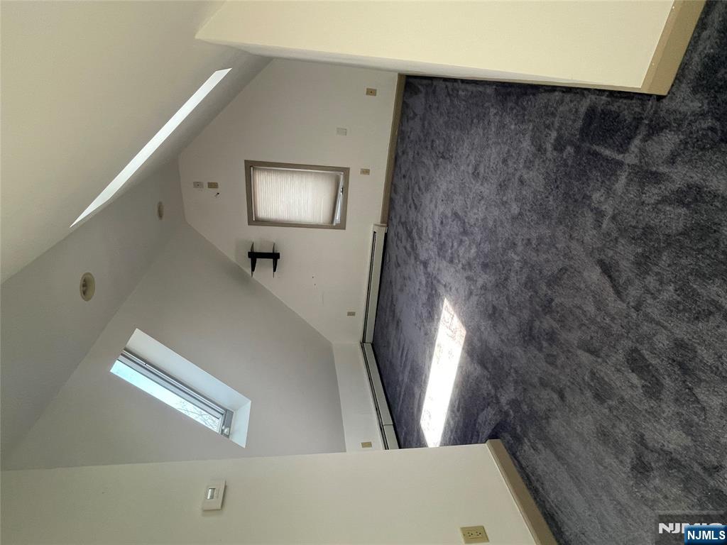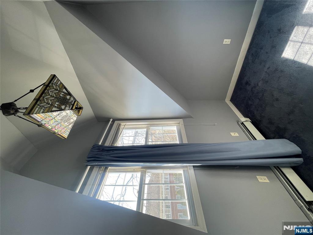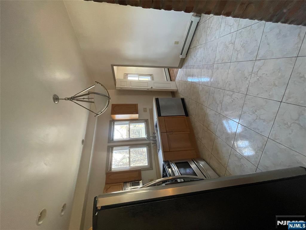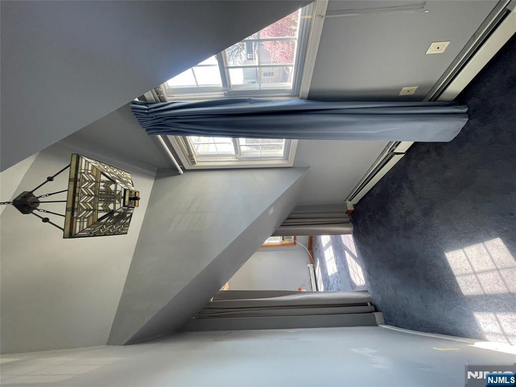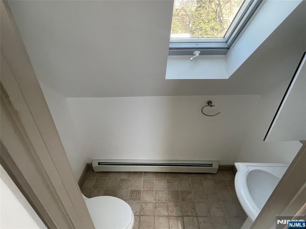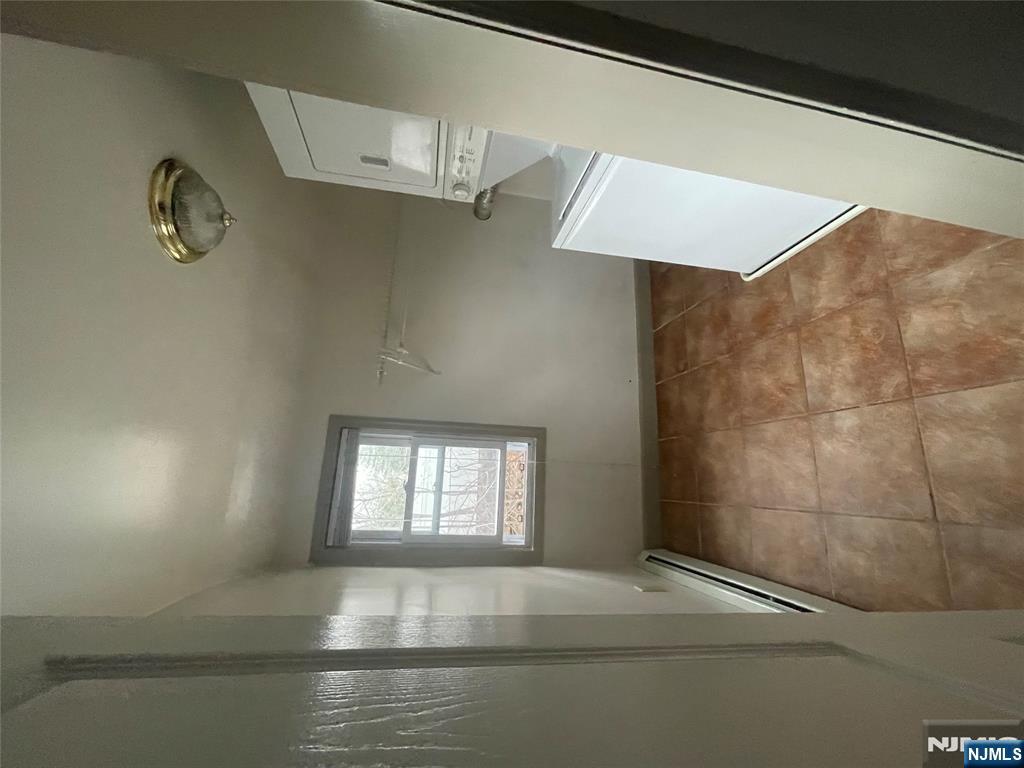 Welcome to this bright and spacious 2-bedroom, 1.5 bath rental unit located in a well-maintained two-family home. It features two floors of living space! The first floor includes an eat-in-kitchen with stainless steel appliances, including dishwasher and microwave, living room with electric fireplace, coat closet and storage, large bedroom with cathedral ceiling, double closet and nook, ideal for work space, storage or more closet space. The second floor features spacious second bedroom complete with half bath, closet and skylights. Highlights include laundry in unit and numerous skylights throughout for additional natural light. Conveniently located a short walk to schools, parks, downtown Rutherford and the bus and train to NYC. Owner occupied. Street parking only.