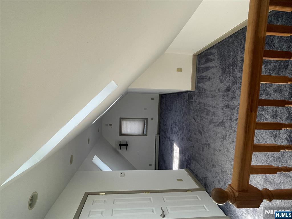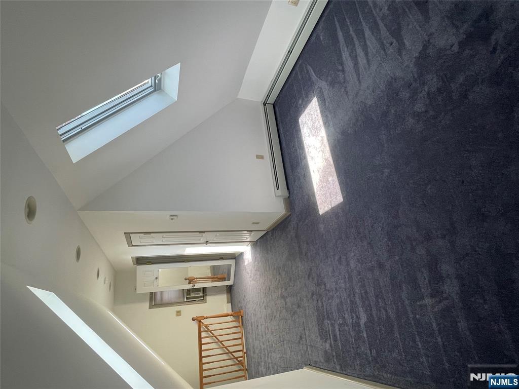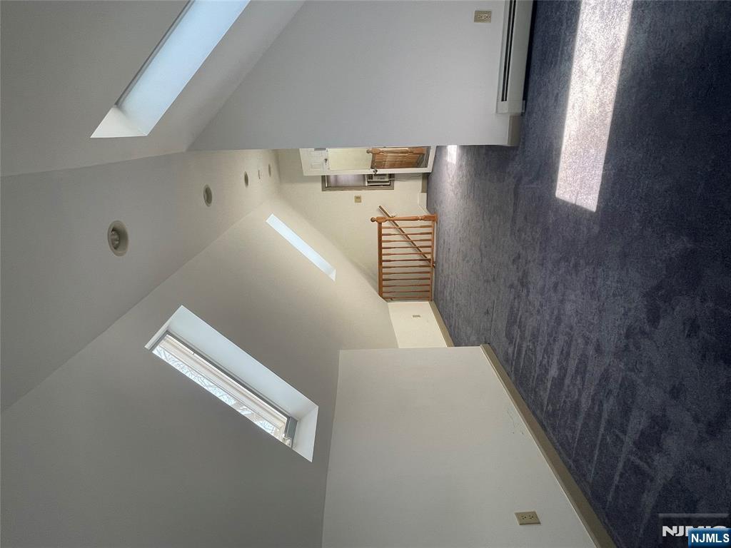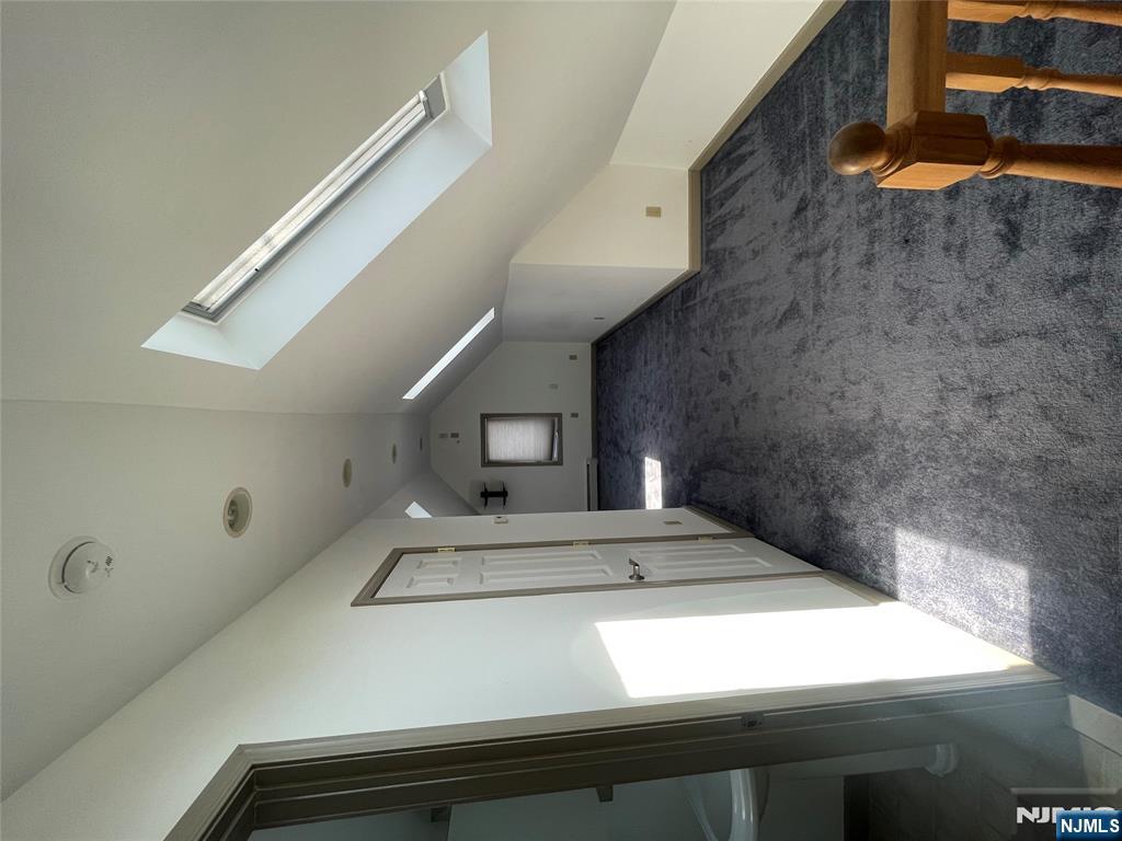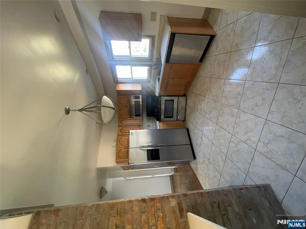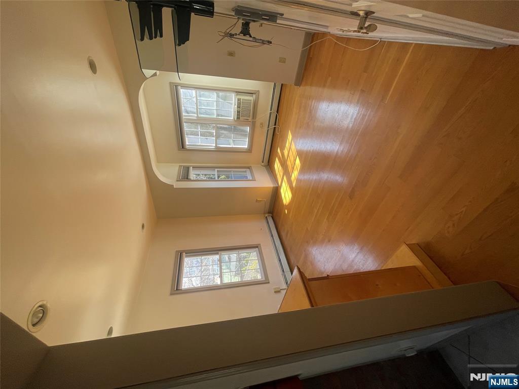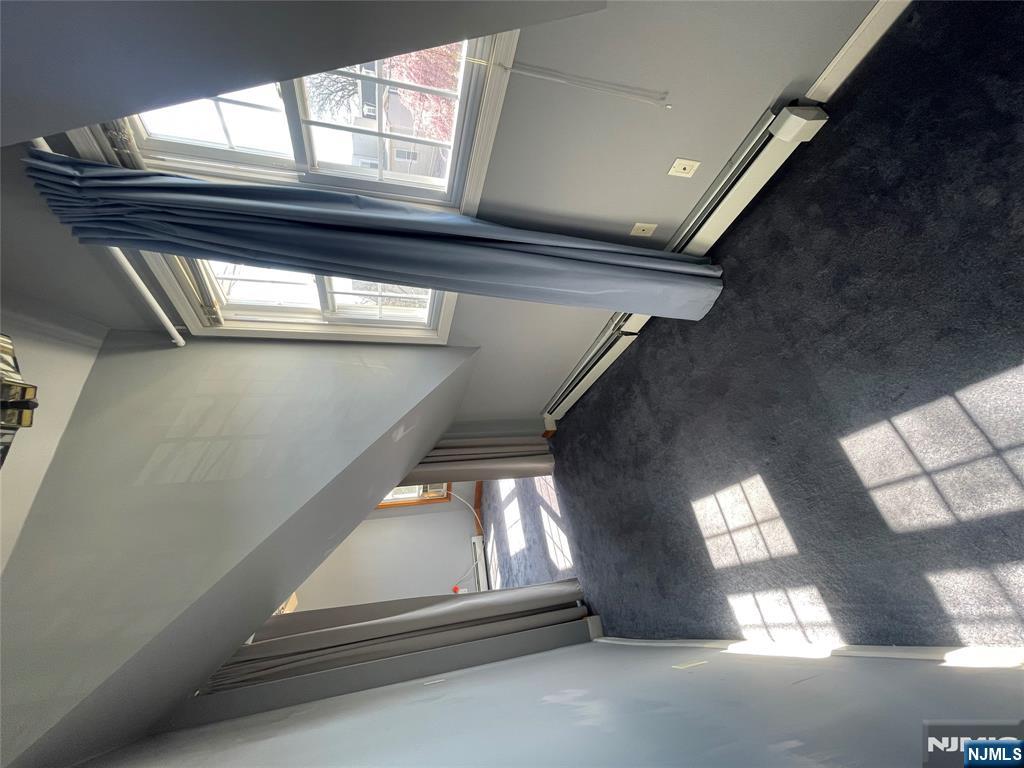 Welcome to this bright and spacious 2-bedroom, 1.5 bath rental unit located in a well-maintained two-family home. It features two floors of living space! The first floor includes an eat-in-kitchen with stainless steel appliances, including dishwasher and microwave, living room with electric fireplace, coat closet and storage, large bedroom with cathedral ceiling, double closet and nook, ideal for work space, storage or more closet space. The second floor features spacious second bedroom complete with half bath, closet and skylights. Highlights include laundry in unit and numerous skylights throughout for additional natural light. Conveniently located a short walk to schools, parks, downtown Rutherford and the bus and train to NYC. Owner occupied. Street parking only.