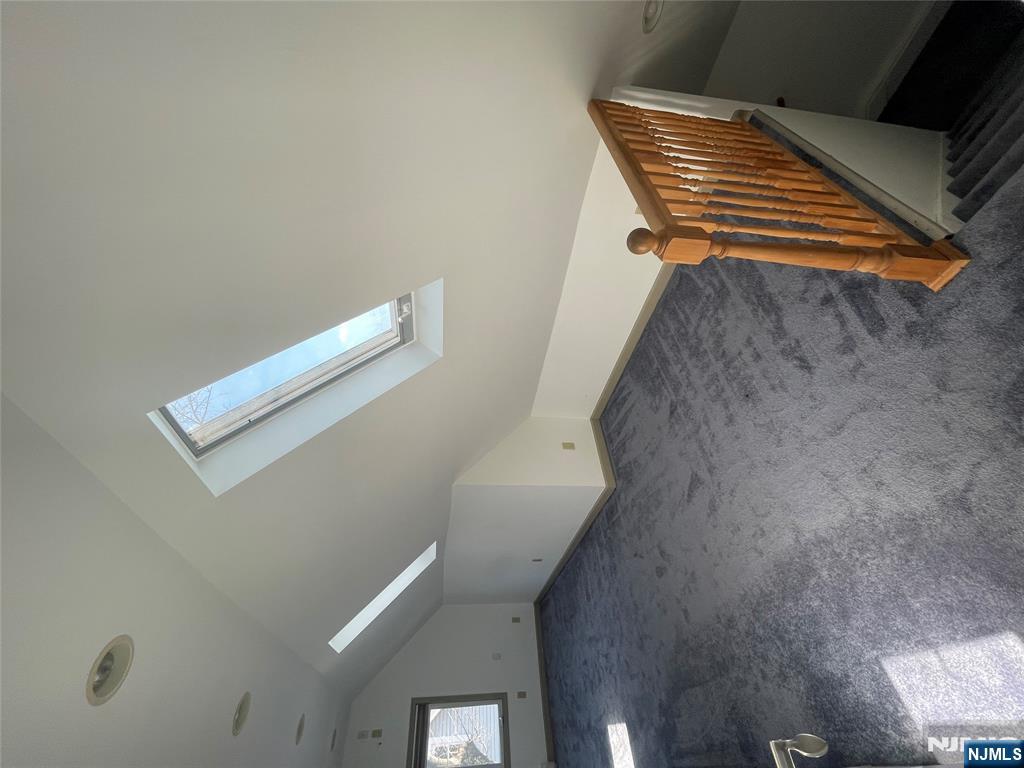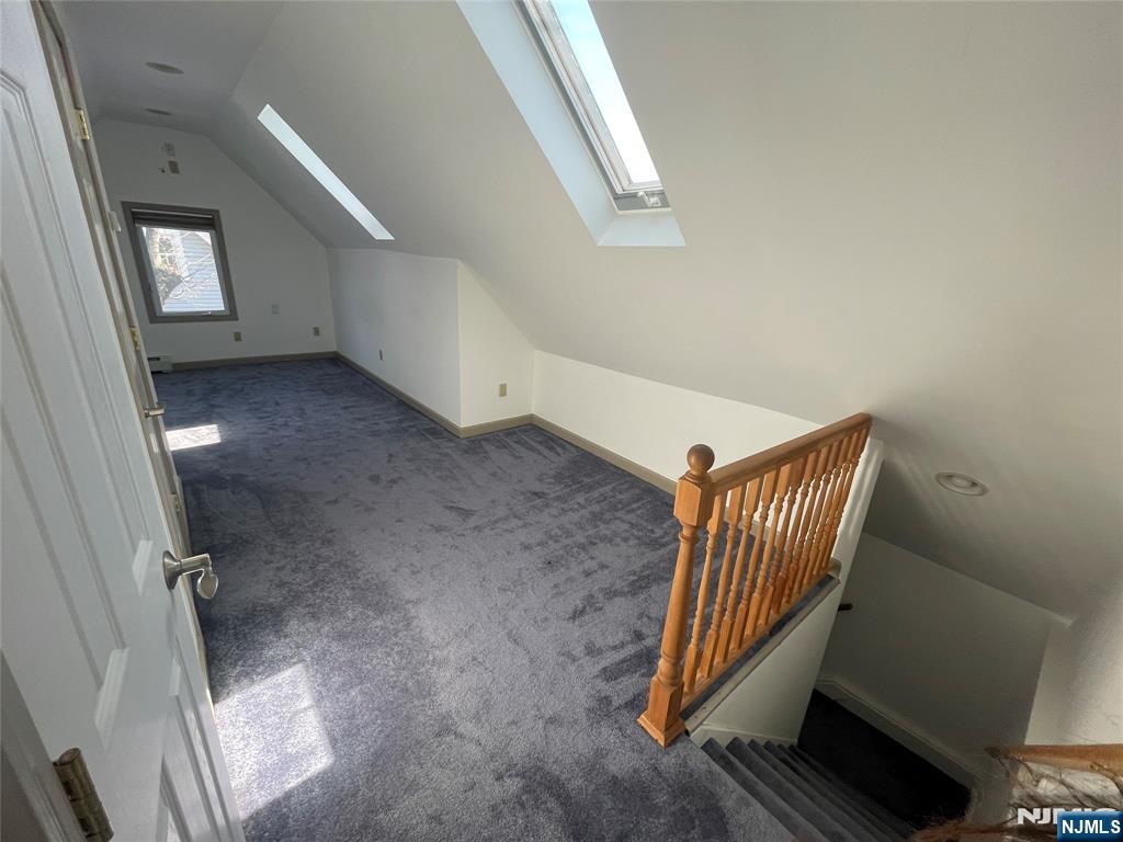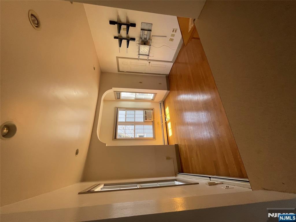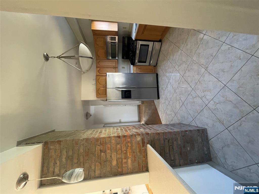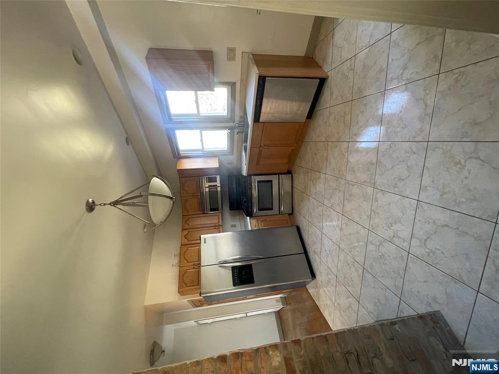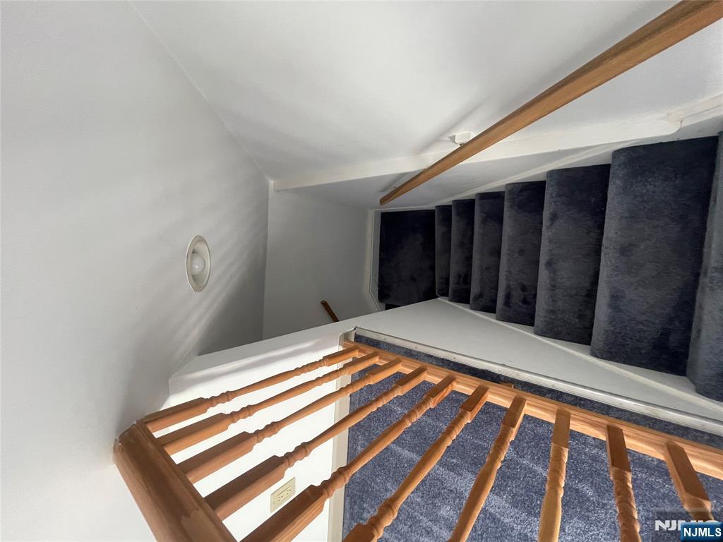 Welcome to this bright and spacious 2-bedroom, 1.5 bath rental unit located in a well-maintained two-family home. It features two floors of living space! The first floor includes an eat-in-kitchen with stainless steel appliances, including dishwasher and microwave, living room with electric fireplace, coat closet and storage, large bedroom with cathedral ceiling, double closet and nook, ideal for work space, storage or more closet space. The second floor features spacious second bedroom complete with half bath, closet and skylights. Highlights include laundry in unit and numerous skylights throughout for additional natural light. Conveniently located a short walk to schools, parks, downtown Rutherford and the bus and train to NYC. Owner occupied. Street parking only.