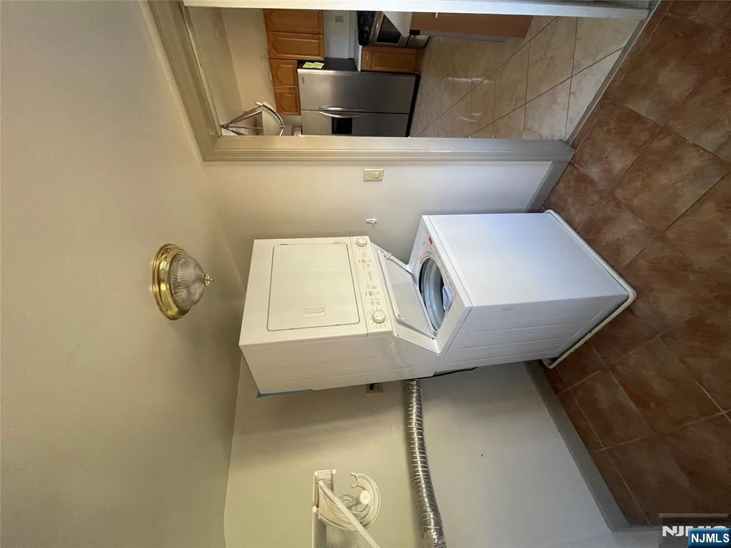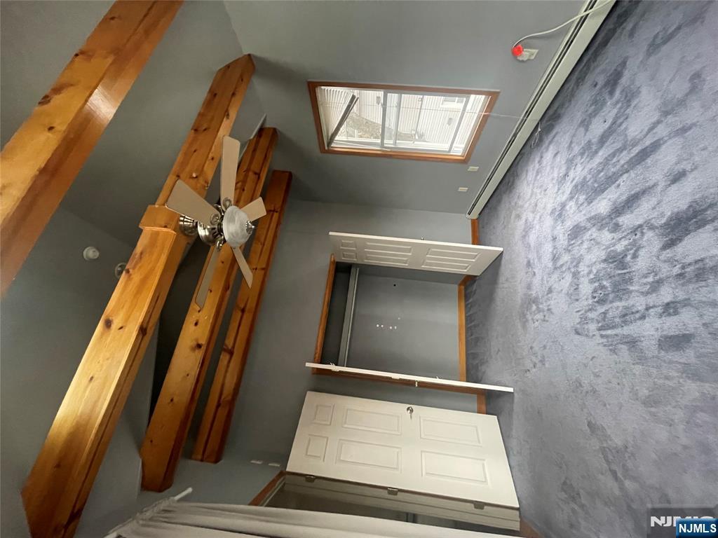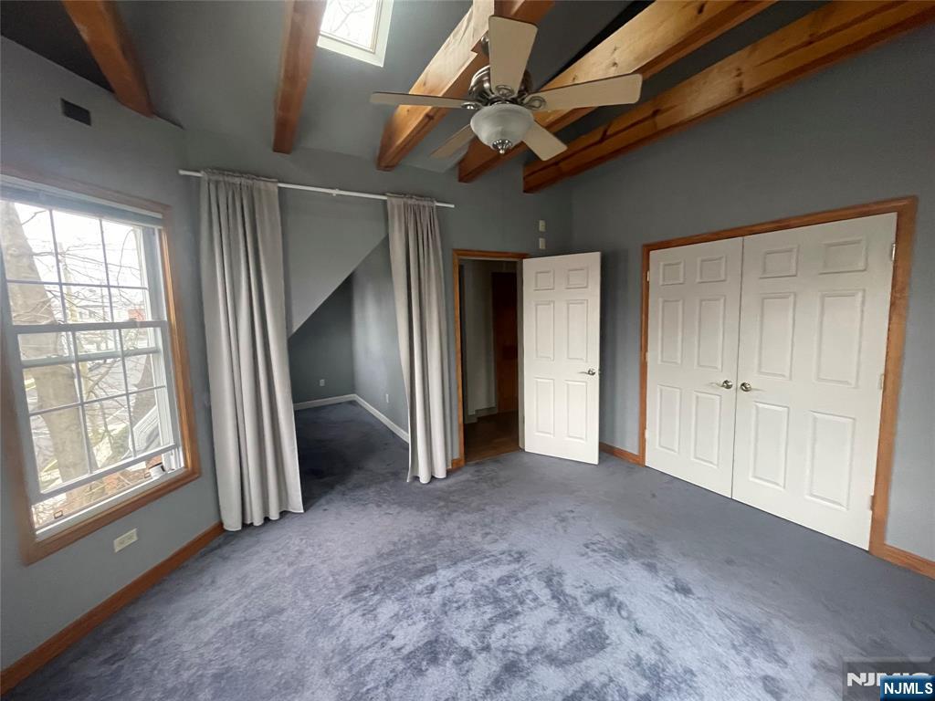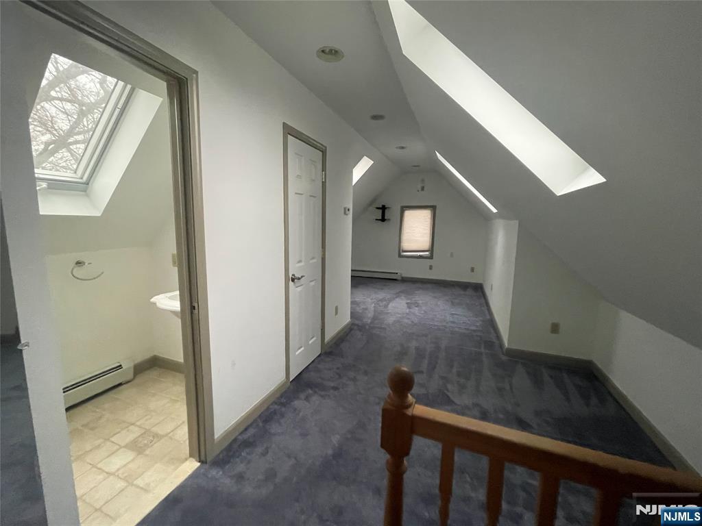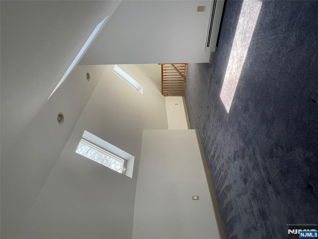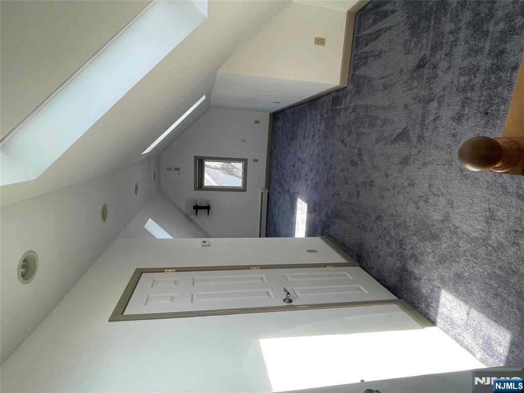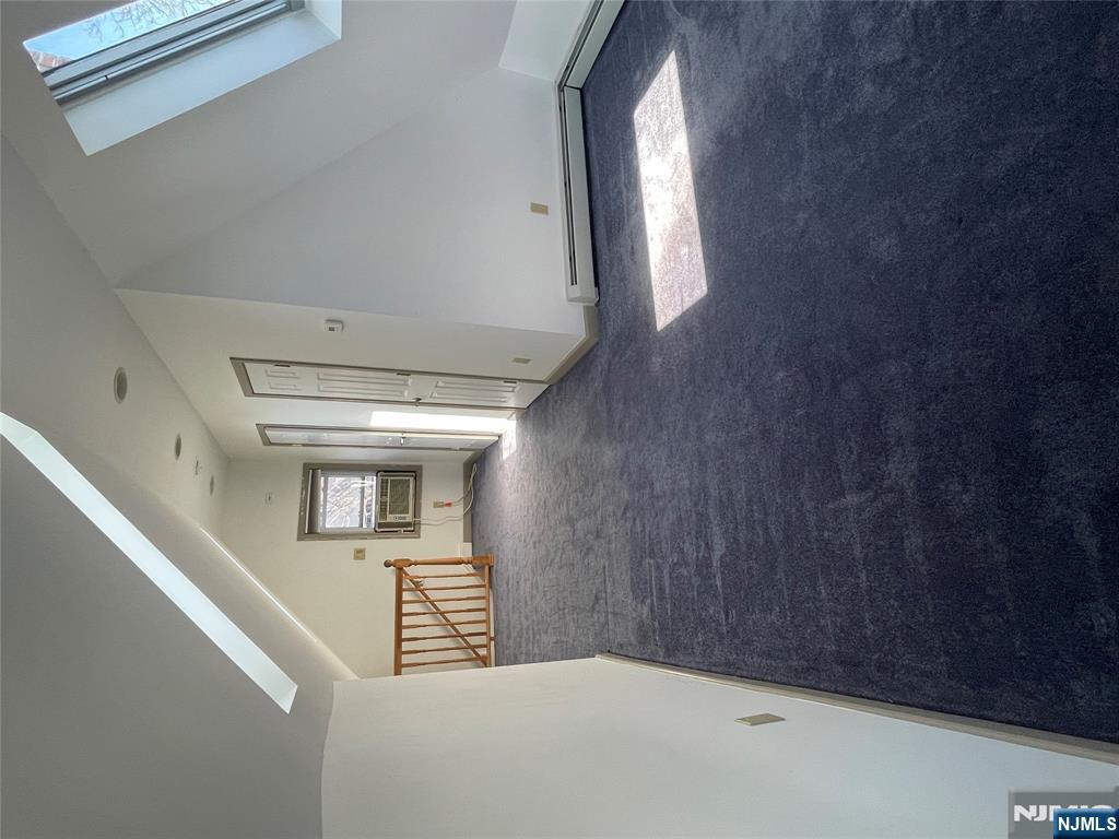 Welcome to this bright and spacious 2-bedroom, 1.5 bath rental unit located in a well-maintained two-family home. It features two floors of living space! The first floor includes an eat-in-kitchen with stainless steel appliances, including dishwasher and microwave, living room with electric fireplace, coat closet and storage, large bedroom with cathedral ceiling, double closet and nook, ideal for work space, storage or more closet space. The second floor features spacious second bedroom complete with half bath, closet and skylights. Highlights include laundry in unit and numerous skylights throughout for additional natural light. Conveniently located a short walk to schools, parks, downtown Rutherford and the bus and train to NYC. Owner occupied. Street parking only.