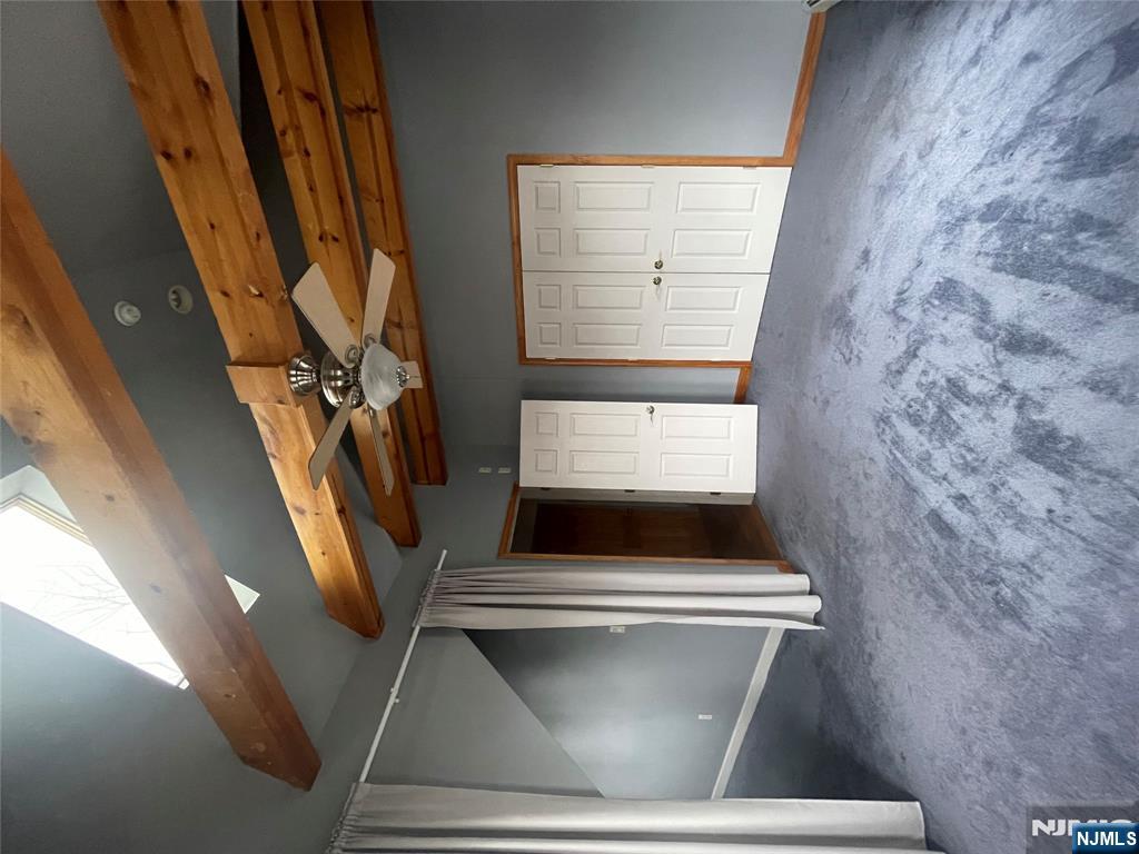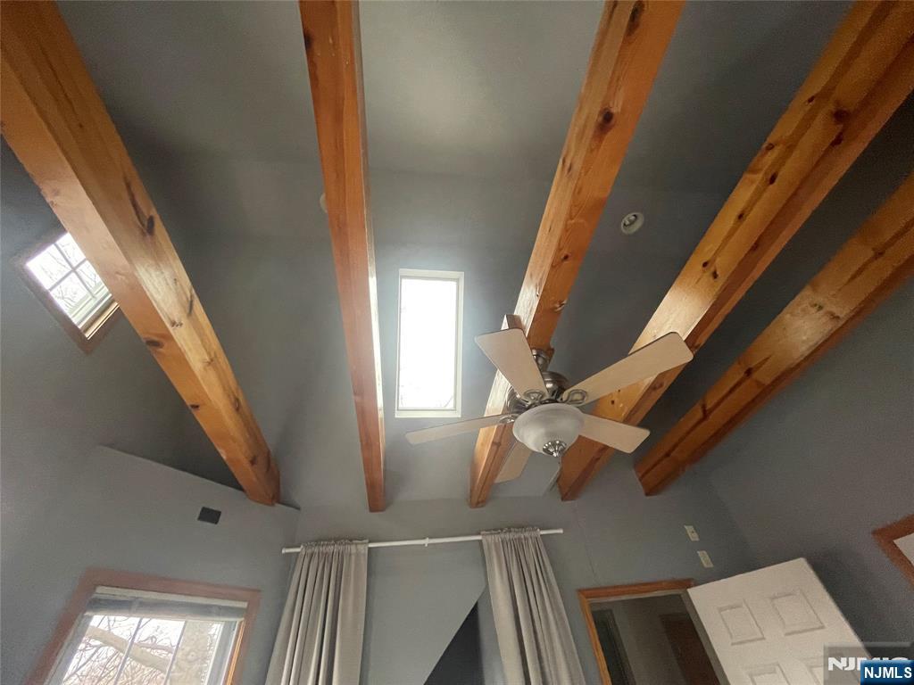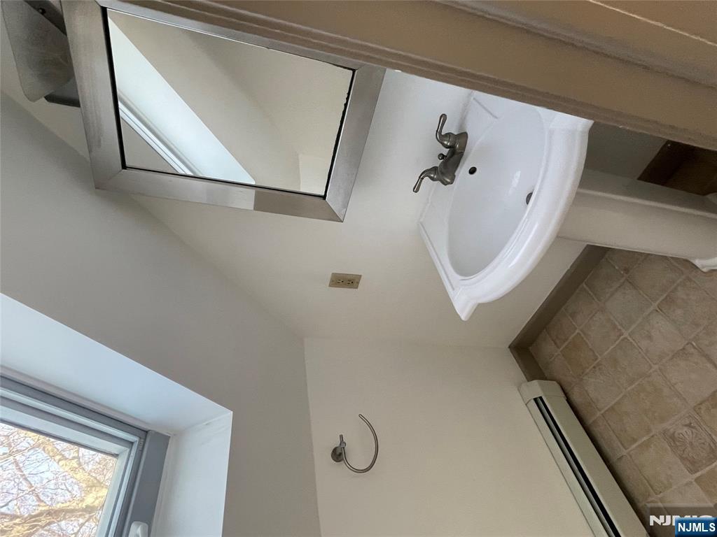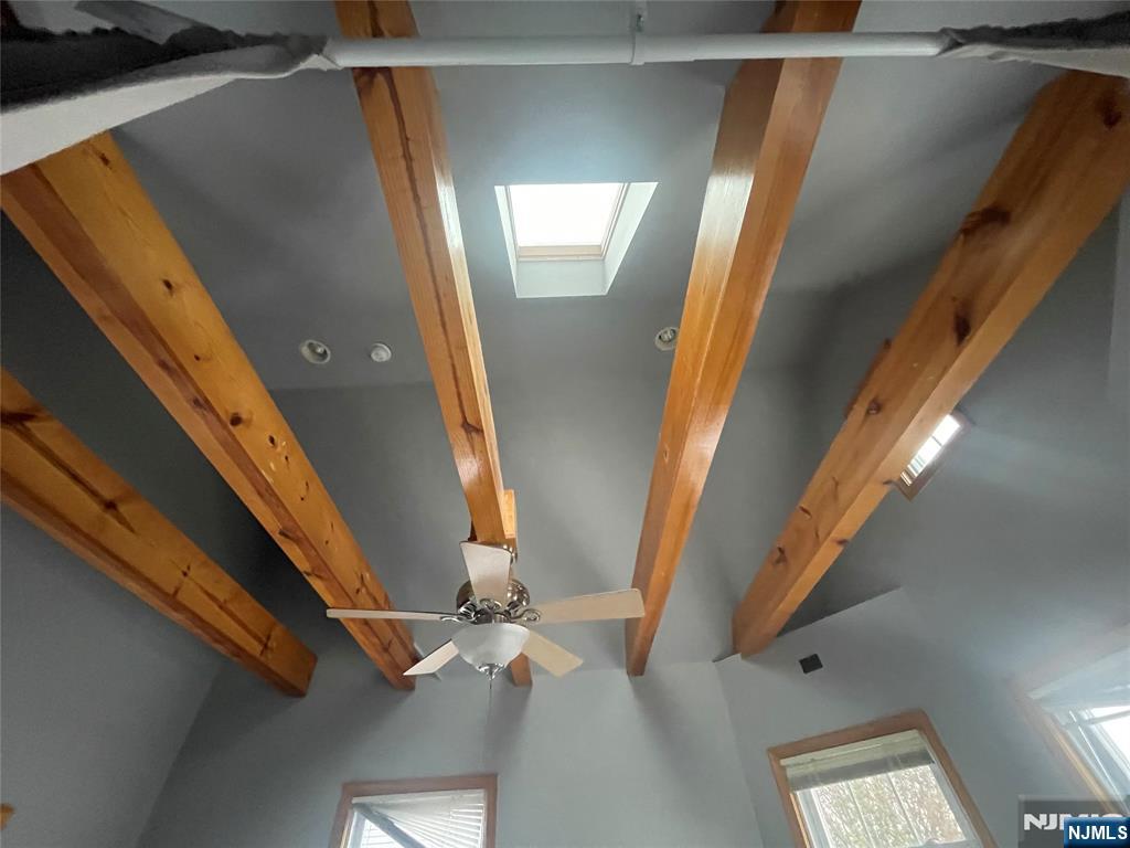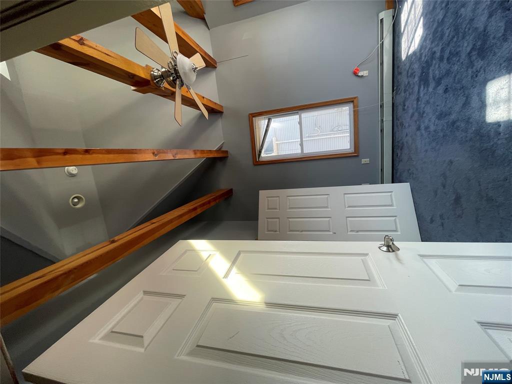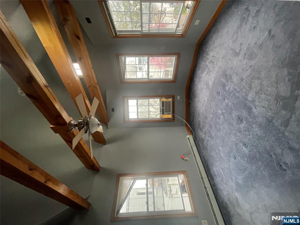 Welcome to this bright and spacious 2-bedroom, 1.5 bath rental unit located in a well-maintained two-family home. It features two floors of living space! The first floor includes an eat-in-kitchen with stainless steel appliances, including dishwasher and microwave, living room with electric fireplace, coat closet and storage, large bedroom with cathedral ceiling, double closet and nook, ideal for work space, storage or more closet space. The second floor features spacious second bedroom complete with half bath, closet and skylights. Highlights include laundry in unit and numerous skylights throughout for additional natural light. Conveniently located a short walk to schools, parks, downtown Rutherford and the bus and train to NYC. Owner occupied. Street parking only.