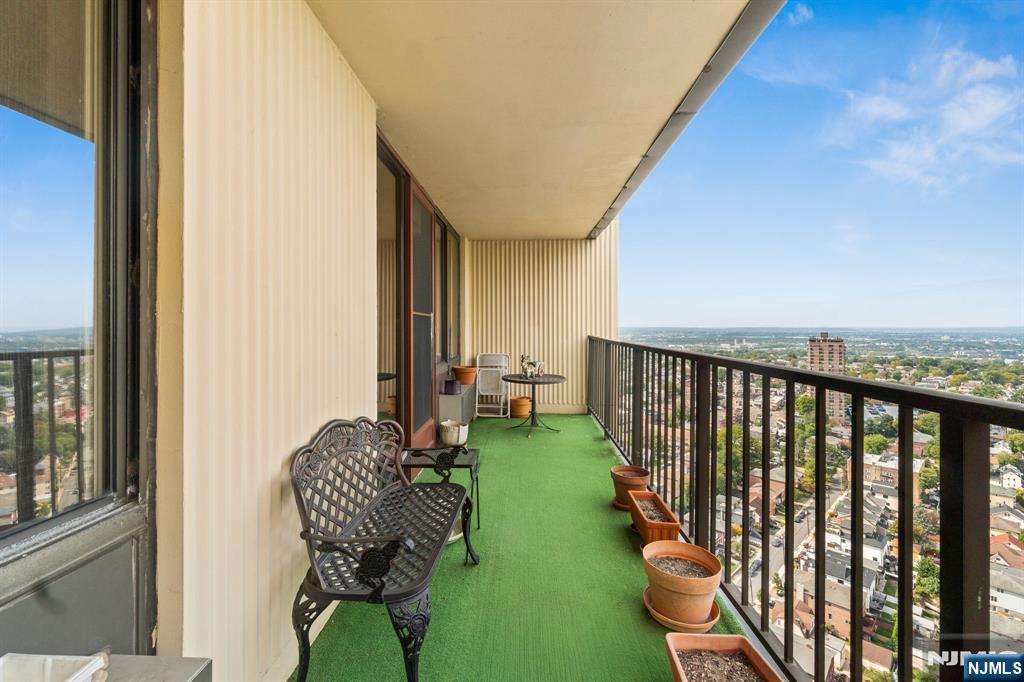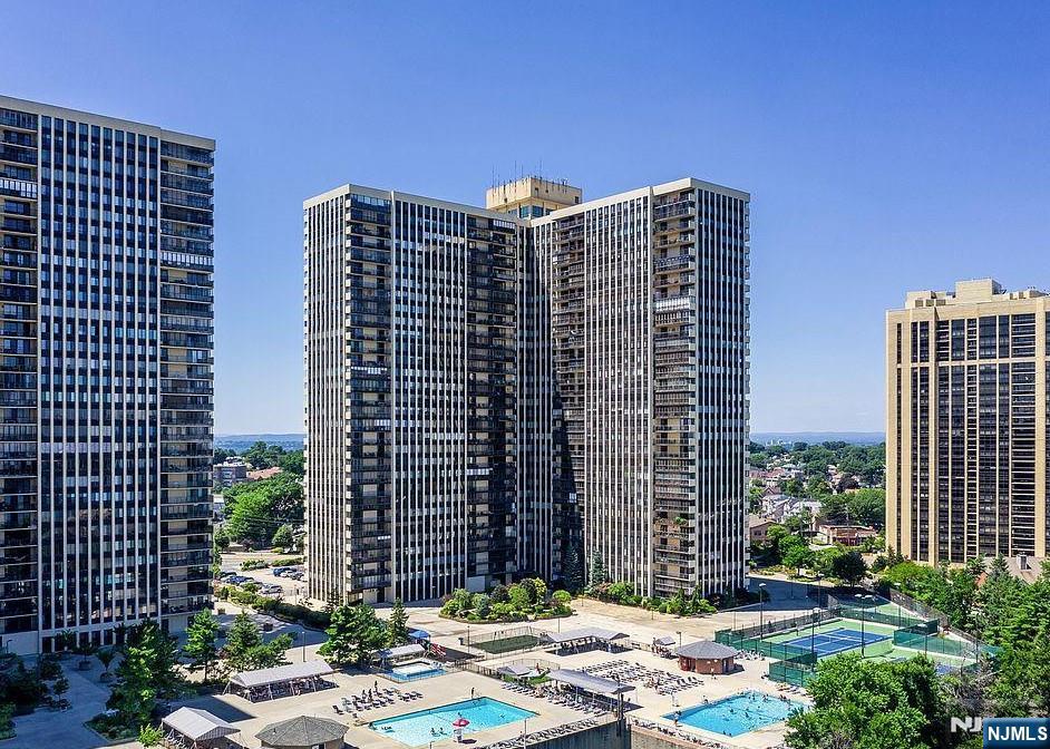 Experience sky-high living in this over 1200 s.f 2-bedroom, 2-bathroom condo, perched in the highly sought-after Winston Towers. Elegant hardwood floors flow throughout (except in 2nd bedroom), setting a tone of warmth, perfectly complemented by well-sized bedrooms and lots of closet space ensuring a clutter-free lifestyle. The kitchen features granite countertops and ample cabinet space, while the guest bath has been updated with sleek stall shower. The home's crowning jewel is the large private terrace, an expansive outdoor oasis where you can sip your morning coffee or enjoy breathtaking sunsets, making it an entertainer's dream with unparalleled views, but the true value extends beyond your front door: as a resident of this amenity-packed, full-service elevator building, you gain access to an on-site concierge, a sparkling outdoor pool, tennis court, state-of-the-art gym, and convenient washer/dryer room. For the commuter, the location is unbeatable with transportation to NYC literally at your doorstep, offering a seamless express bus commute into Manhattan's Port Authority, with easy access to the George Washington Bridge and ferry terminals, making the city accessible while allowing you to retreat to your serene, amenity-rich haven high above the hustle. This is your chance to make this spacious home your own at an address that truly has it all—prepare to fall in love with your new home in the sky!