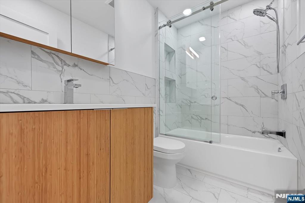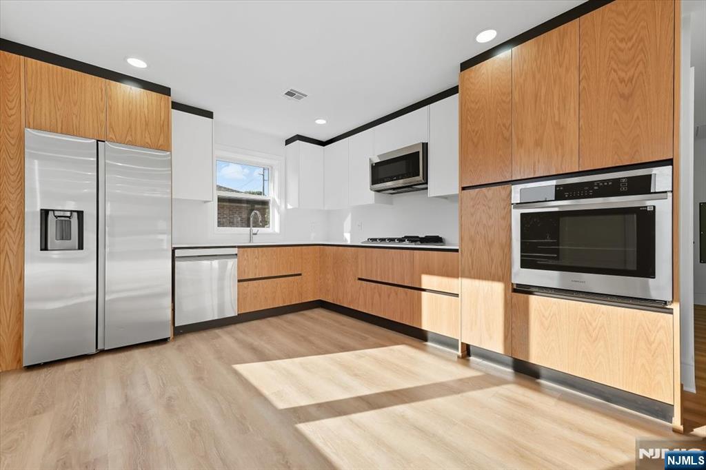 Bright and sun-filled, this brand-new 3BR/2BA second-floor apartment on Edgewater Ave boasts exceptional custom craftsmanship throughout  from the L-shaped kitchen and bathroom vanities to spacious built-in closets. The open-concept layout flows seamlessly from kitchen to dining and living areas, offering flexibility for entertaining or creating your dream space. Enjoy a private ensuite bedroom, dedicated laundry room, and a huge deck perfect for relaxing outdoors. Steps from public transportation to NYC, this modern home is ideal for commuters or anyone seeking a stylish, low-maintenance lifestyle without needing a car. A true must-see!