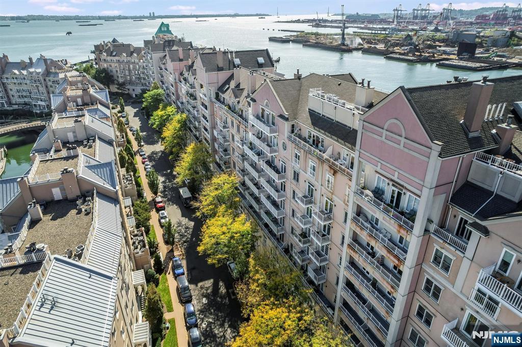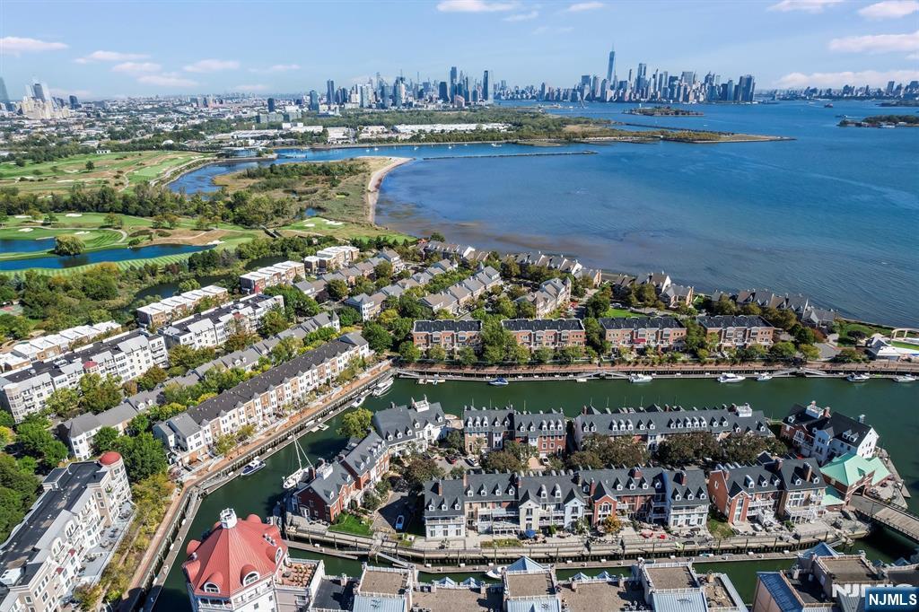Discover refined living in this beautifully crafted 2,200 sq. ft. duplex condo in the sought-after Shearwater Court community of Port Liberte. This residence embodies upscale comfort with open interiors, abundant light, and timeless sophistication. The striking great room features soaring 18-ft cathedral ceilings that create openness and grandeur. Sunlight flows into the dining area and LR, while sliding doors lead to a private patio oasis, ideal for alfresco dining or mornings outdoors. The chef-inspired kitchen blends function and style with sleek finishes, ample cabinetry, and generous counter space to inspire culinary creativity. A convenient half bath is on the 1st level, perfect for entertaining. Upstairs, the primary suite offers a peaceful retreat with a spa-like en-suite bath and a versatile mezzanine, ideal as a reading nook or home office. Two add’l BRs and a full bath complete the 2nd flr, providing privacy and comfort. This home includes central A/C, in-unit laundry, and access to Port Liberte’s resort-style amenities: 24-hr gated security, lap & infinity pools w/ skyline views, fitness ctr w/ saunas, tennis & basketball courts, dog runs, play areas, and waterfront promenades to Liberty State Park. Onsite conveniences include a dental office & Growing Seeds preschool. Easy NYC commute w/ shuttle to Grove St PATH or ferry directly to Downtown NYC Pier 11. Minutes to highways, Holland Tunnel & Newark Liberty Int’l Airport. Pets case by case.