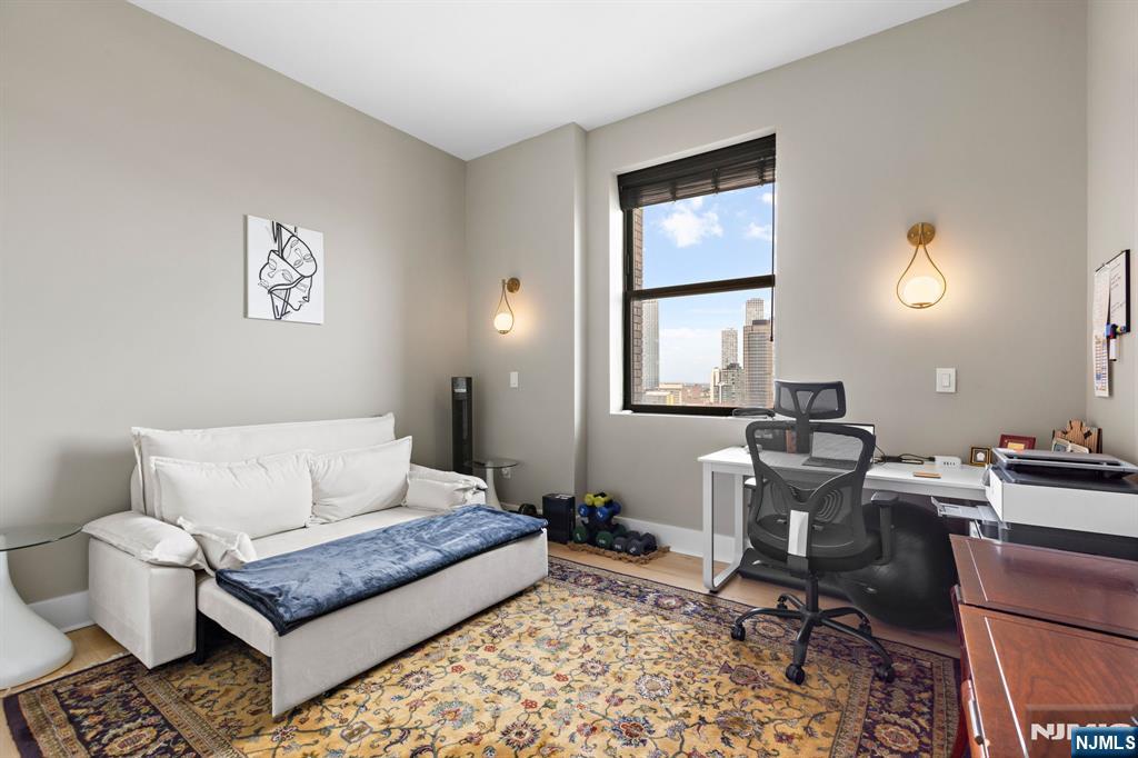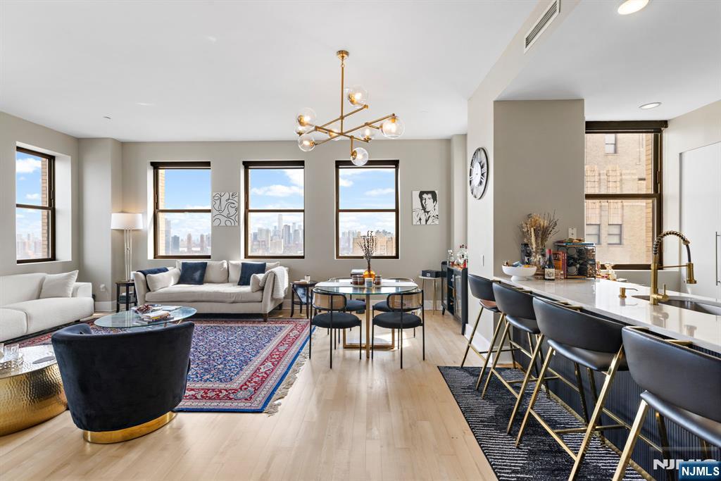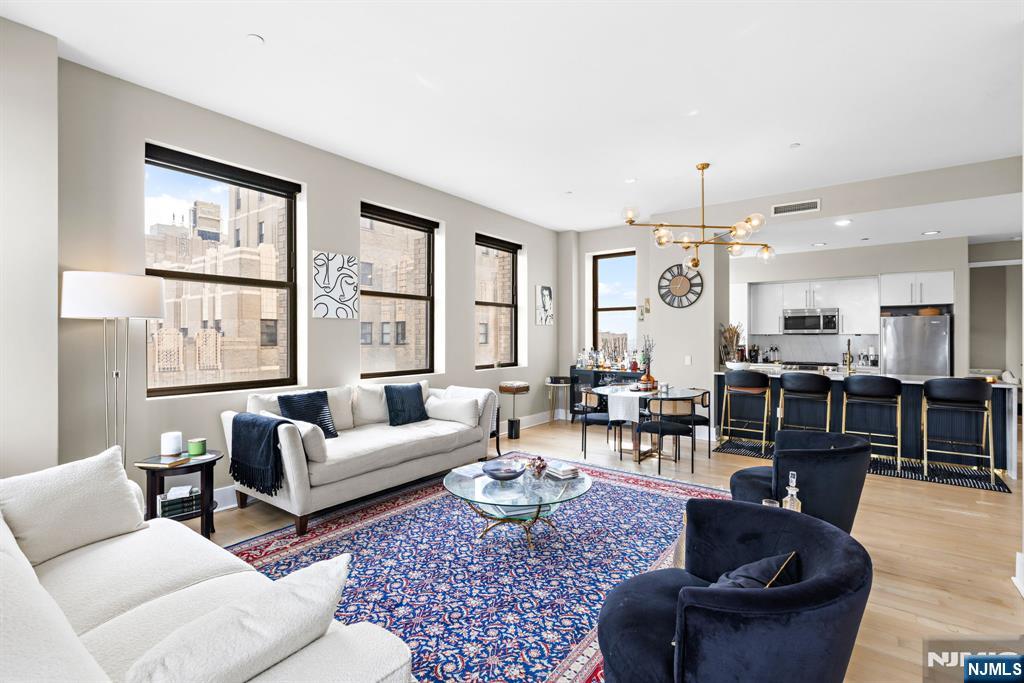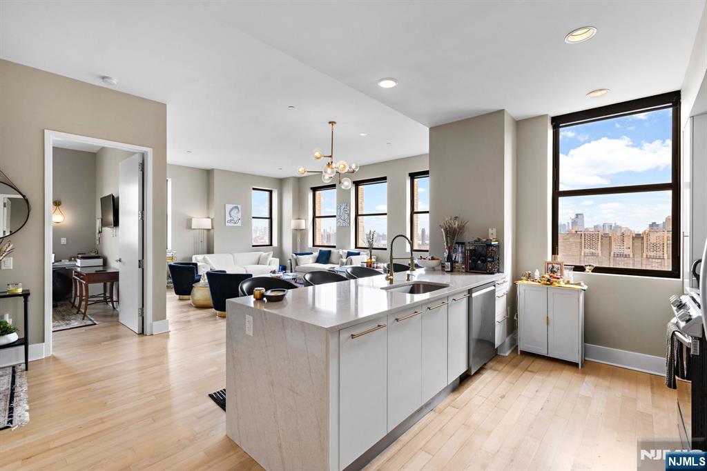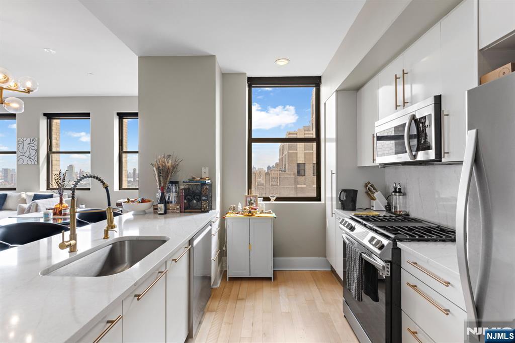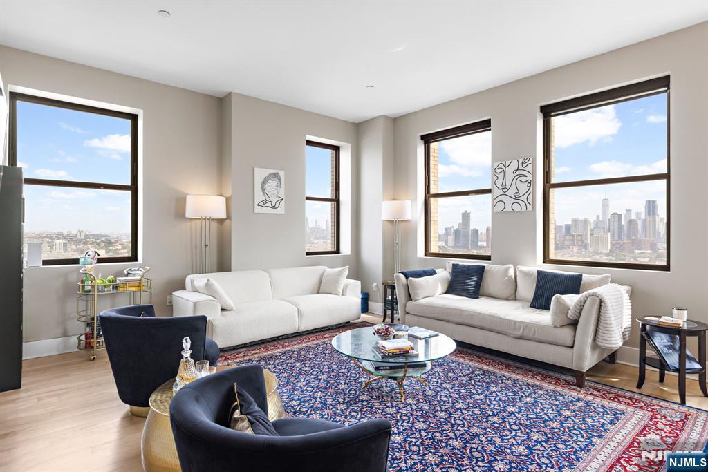 One-of-a-kind fully renovated 2 bed corner home with stunning NYC views in the highly desirable luxury Beacon Rialto building. Newly renovated kitchen with custom white cabinetry, quartz countertops, stainless steel appliances and a full island. Open floor plan offers a spacious living area with direct NYC views from the WTC to GW Bridge. The expansive primary bedroom has a walk-in closet and ensuite bathroom with double vanities and soaking tub. The second bedroom and second full bath are on the opposite side of the home for maximum privacy. The home also features hardwood floors, in-unit washer/dryer, central air, automatic blinds, and private deeded storage #CS111. The prestigious Beacon Rialto community offers 24/7 doorman and concierge, gym, indoor pool, jacuzzi, sauna, library, game/poker room, community room, playroom, theatre, 13 acres of gated grounds, an onsite convenience store and a shuttle to the Path. Parking is available onsite for an additional fee.