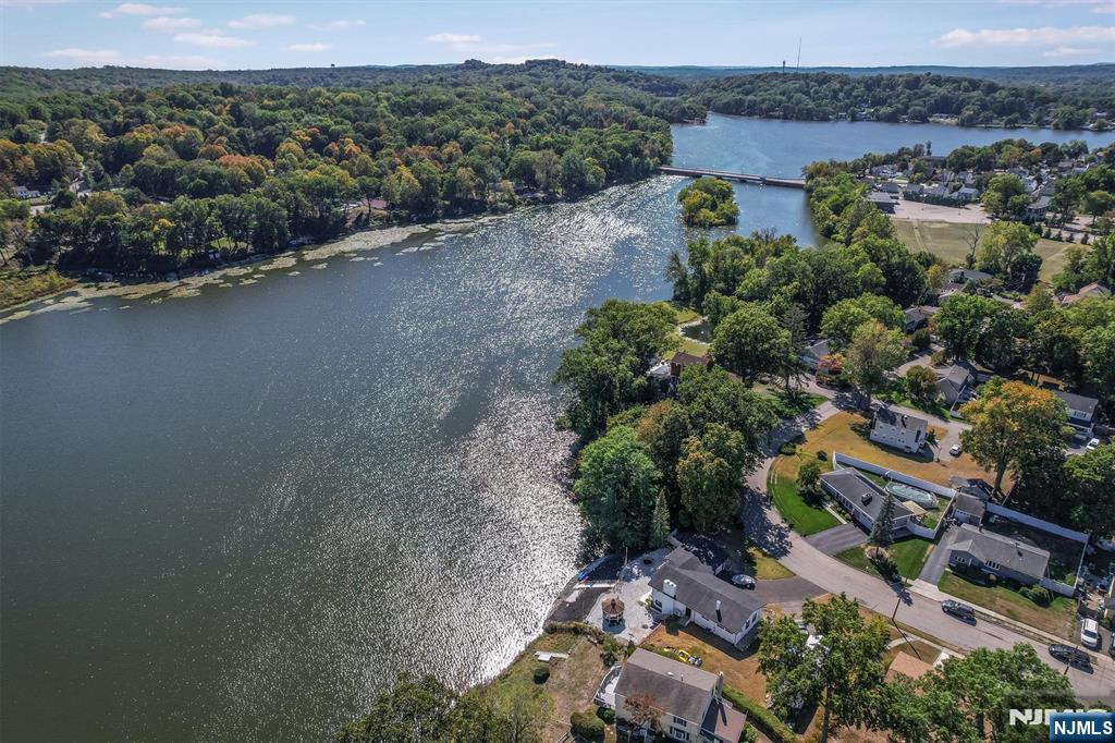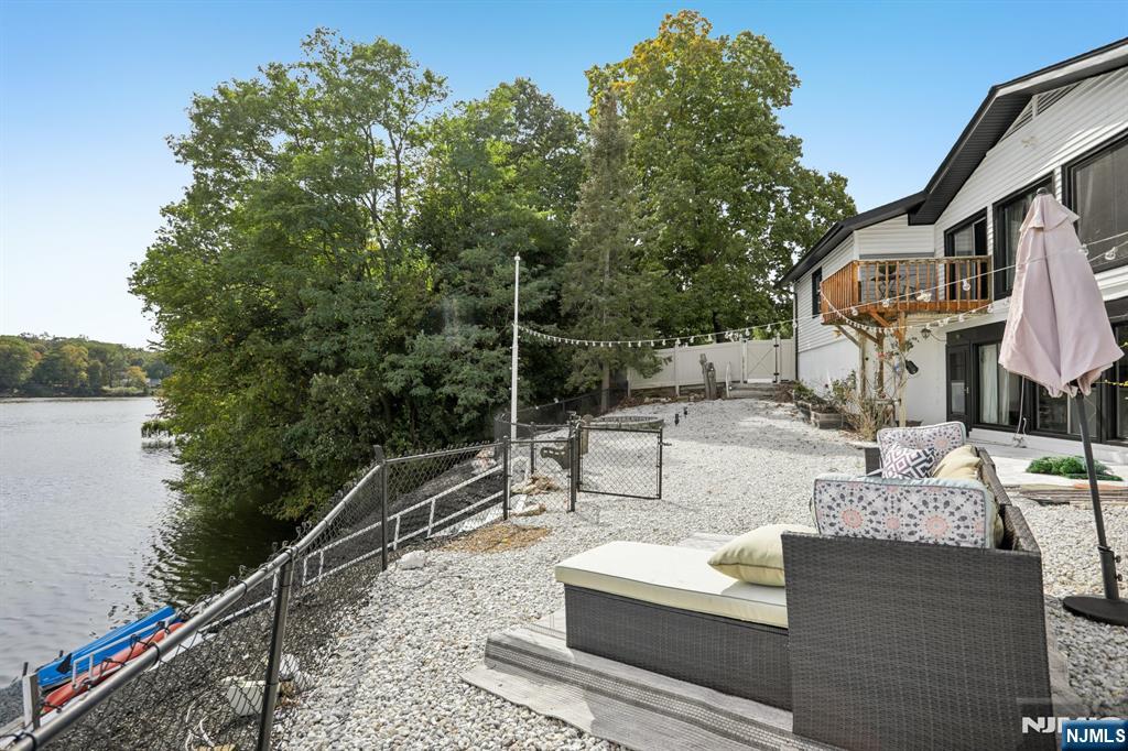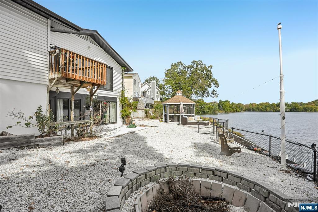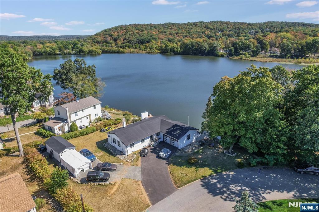 Welcome home to this exceptional 3 bedroom, 2 bathroom open concept Ranch, nestled on an oversized corner lot with what might be the best panoramic lake views in town! Step inside the welcoming foyer and into the stunning living room, where soaring ceilings, wood-burning fireplace, and floor-to-ceiling windows showcase the lake in all its beauty, creating an ambiance of serenity. The open flow continues into the designer kitchen, featuring custom cabinetry, quartz countertops, a stylish backsplash, pantry, and center island with seating. Sliding glass doors extend your living space outdoors to the deck perfect for entertaining or savoring peaceful mornings surrounded by nature. Down the hall, the home offers a spacious primary bedroom with a large closet and opportunity for an en suite, while two additional bedrooms and a full bath complete the level. The full finished walkout basement boasting kitchenette, full bath, family room with soaring ceilings, second fireplace, and bar all framed by breathtaking lake views. Glass doors lead to the patio, gazebo, and fire pit, inviting evenings of relaxation and conversation.Stairs lead down to the water's edge, with the option to add a floating dock for boating, kayaking, or swimming. With a two-car attached garage, detached garage/shed, and ample parking, this residence blends luxury and convenience. Just moments from NYC transportation, shopping, and dining, this home offers an unmatched lifestyle of refined lakefront living.