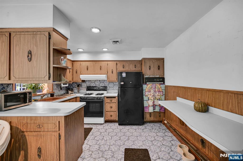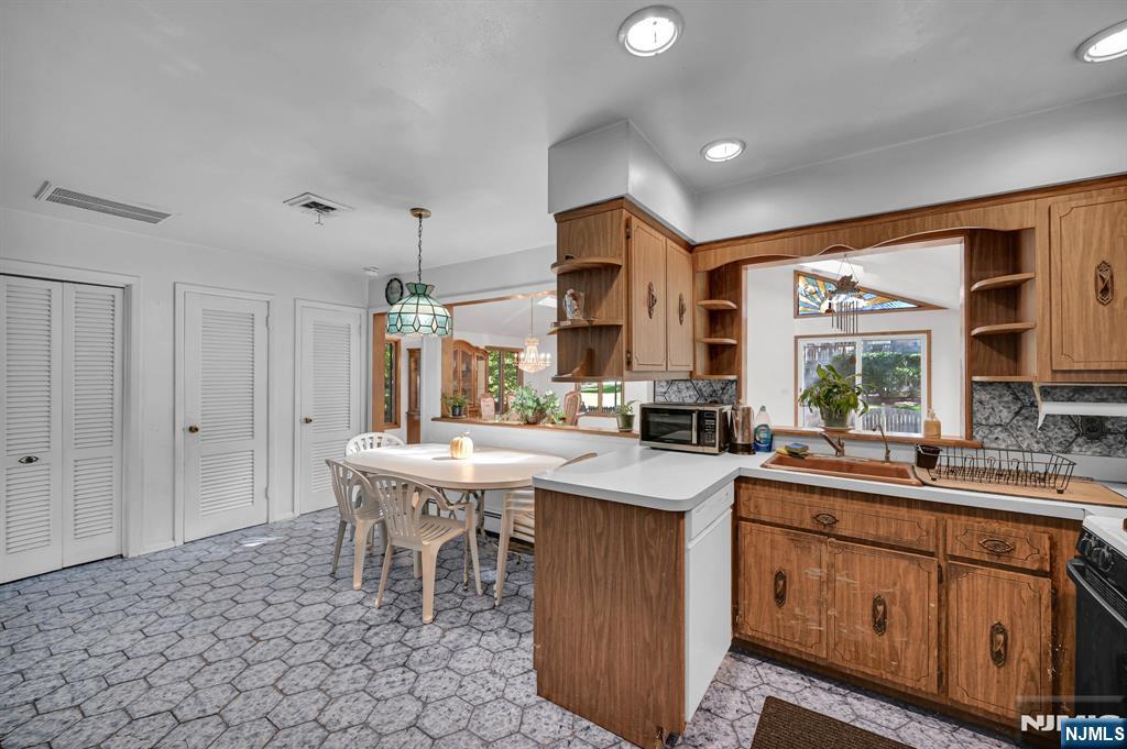 Location! Location! Beautiful, prime street in Township with highly rated K-5 elementary school at the end of the block! This approx. 1,770 sq. ft. ranch style home requires extensive work to bring it back to it's former glory, but the canvas is set and ready for your vision! 1st floor has living room, large eat in kitchen, expansive great room addition with skylights and sliders to rear yard! A primary bedroom w/full bath, two additional bedrooms and a full bath complete the 1st level. Hardwood floors are in living room, hallway and all three bedrooms. Basement is full and has a rec room w/fireplace, full bath, utilities, laundry, storage rooms and entrance to garage. Approx. 100 x 98 lot. House is being sold strictly and completely "as is" with buyer responsible for all town certs. Great potential for you to turn this one into your home sweet home!