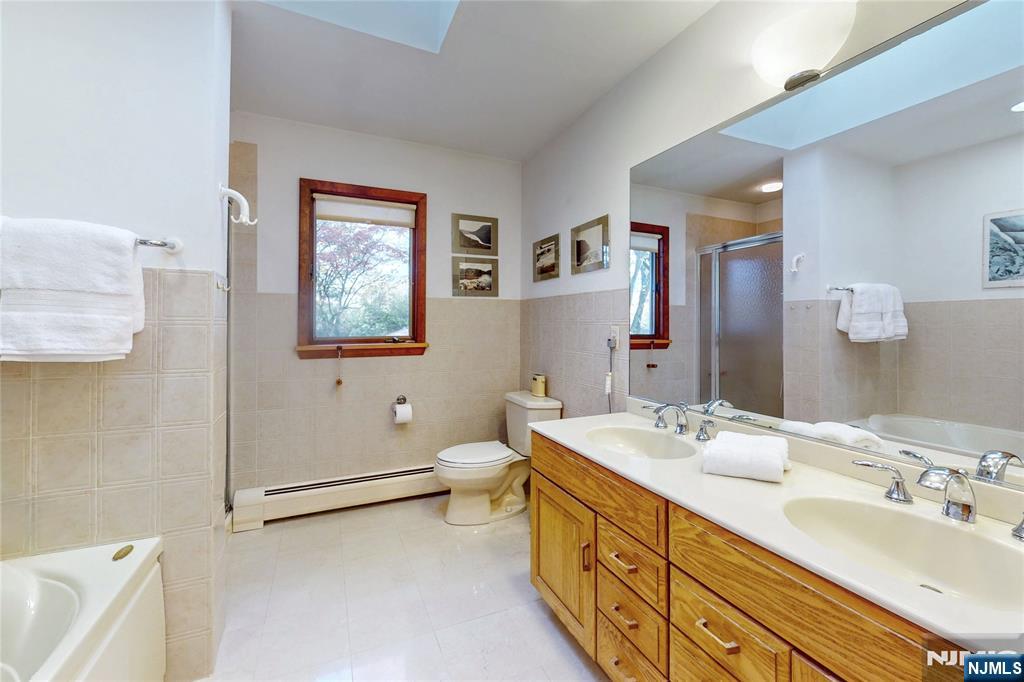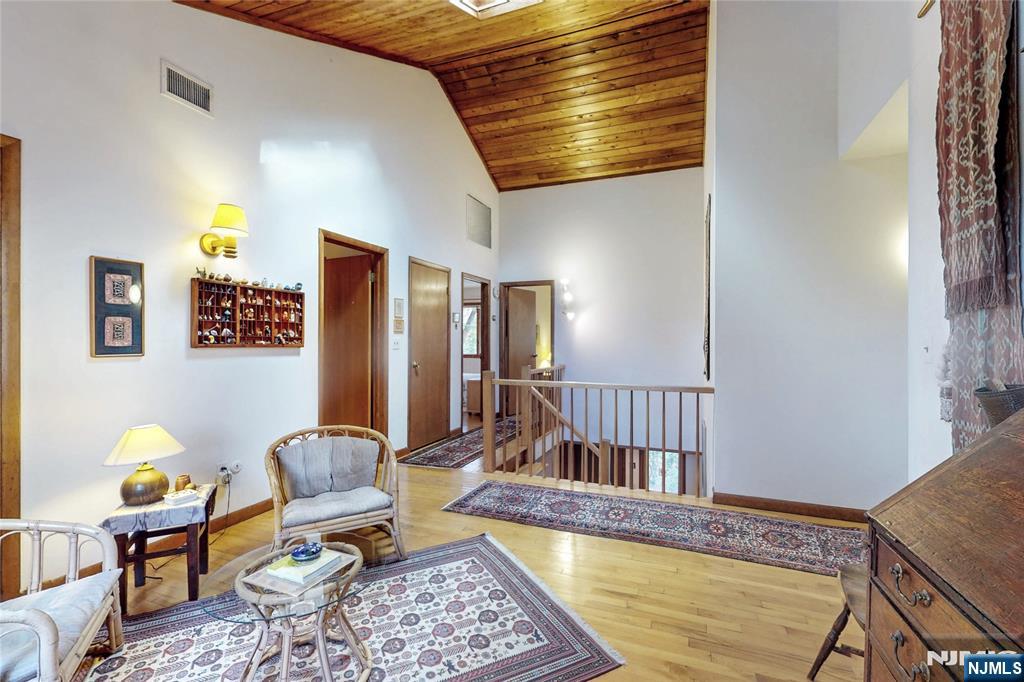 Welcome to 7 Birchwood Lane. Lovingly maintained by the same family for the past 47 years, this spacious and inviting home offers room to grow and spaces to gather. At almost 3500sf, this gracious and warm center hall colonial features a cozy living room which flows into a large and bright great room with vaulted ceilings, floor to ceiling windows and sliders that lead to a newer Trex deck. The functional kitchen and formal dining are perfect for entertaining. The first floor continues to laundry, a full bath and fifth bedroom or home office with a charming loft. Upstairs, a spacious and inviting sitting area with beautiful, vaulted pine ceilings offers the perfect retreat with a true European feel. On either side, you’ll find a generously sized primary suite with a light filled en-suite including Jacuzzi tub and a walk-in closet, and three large bedrooms which share another full bath. Additional features include durable Hardie Plank siding, hardwood flooring throughout, a two-car garage, and a partially finished basement offering endless potential. Outside, the yard and gardens are right out of a magazine. Dine al fresco or unwind after a long week in the privacy of your own backyard. Located in one of Ramsey’s most coveted neighborhoods and in close proximity to its Blue Ribbon schools, vibrant downtown, the award-winning Ramsey Pool and Farmer's Market, and NYC trains. Come see for yourself all that this home and neighborhood have to offer!