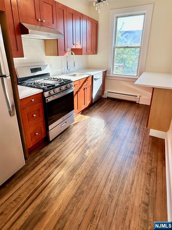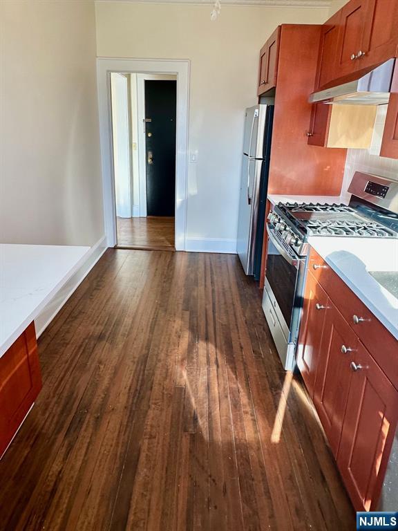 Newly renovated 2 bedroom 1 bath unit for rent on the top (2nd) floor of 10 unit rental building with heat, hot and cold water included in the rent! Tenant pays cooking gas and electric. Brand new kitchen cabinets, granite countertops and stainless steel appliances including dishwasher. Corner unit with beautiful hardwood floors throughout and oversized bedrooms. Updated lighting in living room and primary bedroom. Updated full bath with newer flooring and vanity. Laundry room in basement for tenant use. Two parking spaces included in the rent in parking lot located on Boulevard (around the block from building). Cats OK with extra $40/month. Dogs not permitted. Absolutely no smoking. Excellent location within blocks to downtown Westwood shopping, restaurants and train station for an easy commute. Available immediately!