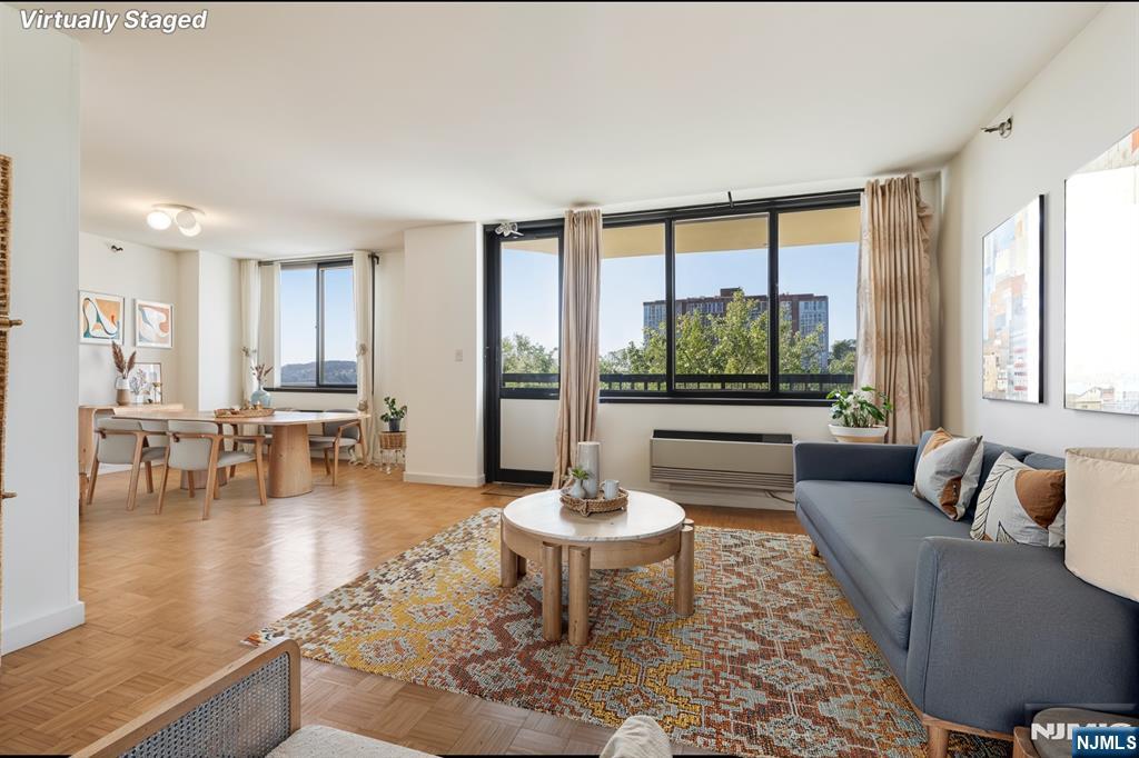 Welcome to Unit 4E at THE CHARLTON, a spacious and elegant condominium in the heart of Fort Lee, NJ. This high-rise residence offers thoughtfully designed living space, featuring private bedroom wings, parquet hardwood floors, a functional eat-in kitchen with adjacent dining area, and a private terrace facing West with incredible views and sunsets. A spacious primary suite with bright windows, two closets, an en suite bath w/ jetted tub and sept shower stall. Enjoy the convenience of an in-unit elec washer and dryer, 1 indoor garage parking space, and a low monthly HOA, which includes gym, garage, cable, and internet. The Charlton is a full-service building offering 24-hour concierge, outdoor pool, tennis and pickleball courts, fitness center with sauna, and community spacesâ€â€all located minutes from NYC-bound transit, major highways, schools, and Fort Lee’s vibrant shopping and dining scene. This condo offers both lifestyle and location in one of Bergen County’s most desirable buildings.