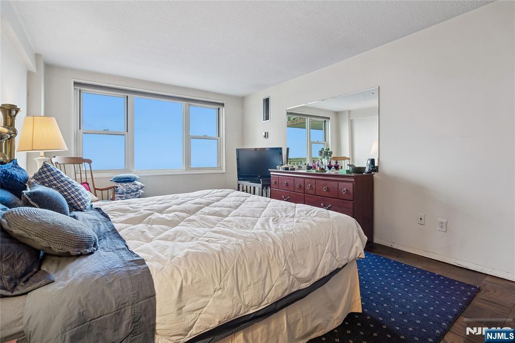 OPPORTUNITY AWAITS WITH A 2 BEDROOM, 2 BATHROOM APT. 975 SQUARE FEET PLUS TERRACE. SUNNY SOUTH-FACING M LINE! Entry with large walk-in closet, white eat-in kitchen, dining area/living room, sliders to large terrace, bedroom, full bathroom, and primary ensuite bedroom. The living room and hall feature rich warm plank floors . Parking is $60.00 indoors or $55.00 outdo NJ TRANSIT BUS AT THE DOOR, UNIFORMED DOORMAN, LIVE IN superintendant, new state of the art gym, community room, mini-mart /bakery. BOARD APPROVAL REQUIRED, "DOMICILE" IS THE ON LINE APPLICATION.