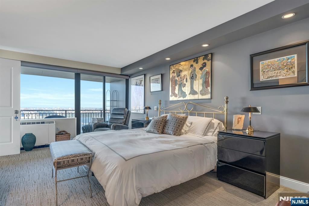 Experience unmatched luxury and sweeping panoramic views from this exceptional residence perched on the 20th floor of The Plaza, a premier full-service building. This expansive home offers approximately 2,050 square feet of elegant interior space plus an additional 500 square feet of private terraces. Enjoy stunning vistas in every direction, including a dramatic northeast corner view of the Hudson River and the Manhattan skyline from the oversized terraceâ€â€perfect for entertaining or relaxing. By day, the home is flooded with natural light through floor-to-ceiling glass sliders and abundant windows; by night, take in the twinkling city lights that create a magical, ever-changing backdrop. The gracious open floor plan includes a large, eat-in kitchen featuring rich wood cabinetry, granite countertops, a breakfast bar, bistro dining area, built-in desk, and in-unit laundry. The thoughtfully designed split-bedroom layout offers maximum privacy, with each bedroom featuring an ensuite bath. A powder room is available for guests, and generous closet space is found throughout the home. The Plaza offers a boutique living experience with only three residences per floor and exceptional amenities including a 24-hour doorman, attended garage, private storage, swimming pool, tennis courts, fitness center, and a community room. On-site parking is available for $125/month. Subject to Board approval.