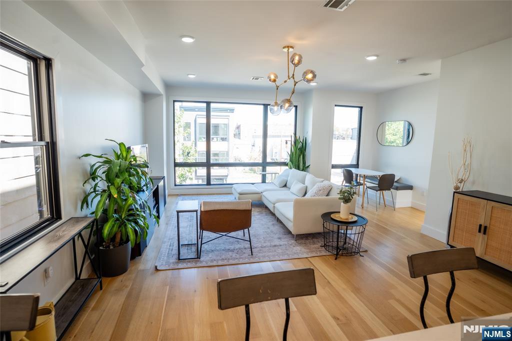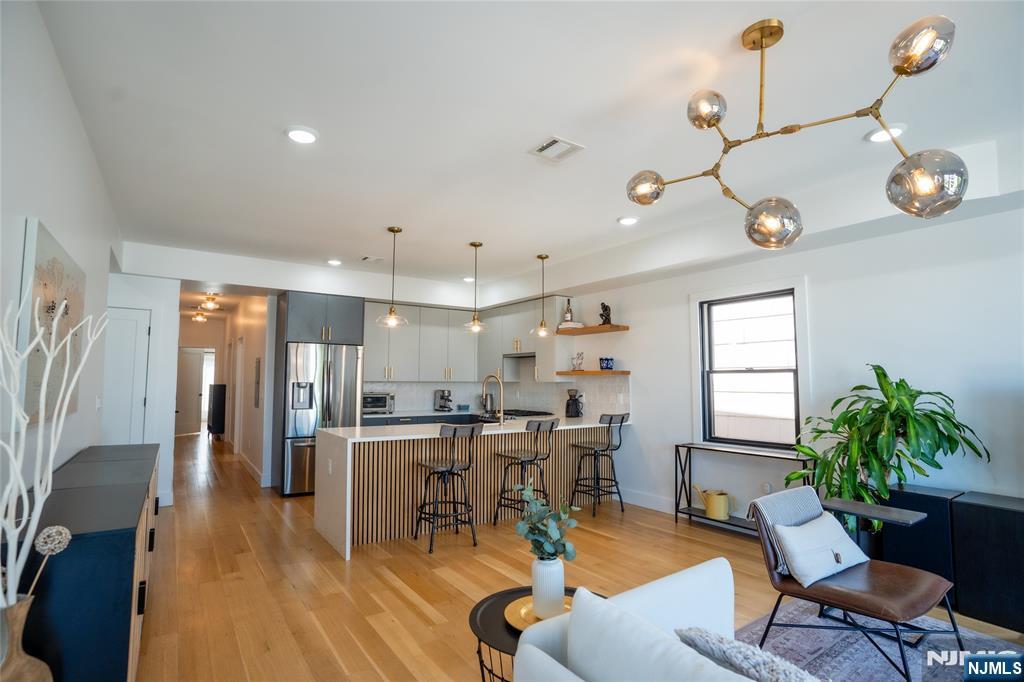 Move right into this modern townhouse built in 2022, offering 3 bedrooms and 2 full baths in a prime location! The bright and airy open-concept living space is filled with natural light and features hardwood floors throughout. The stylish kitchen is equipped with quartz countertops, a large breakfast bar, separate dining area, 5-burner stove, convection oven, and more—perfect for cooking and entertaining. The spacious primary bedroom includes a walk-in closet with custom built-ins and a private full bath. Additional highlights include central A/C and forced hot air, in-unit washer and dryer, and energy-efficient LED lighting and built in shelving in all closets and built in storage bench in dining room. Enjoy the private rooftop with endless possibilities—ideal for relaxing or hosting guests. Conveniently located minutes to the Congress St. Light Rail, Journal Sq PATH, bus lines, shops, restaurants, and major highways including the Lincoln and Holland Tunnels. Monthly parking available nearby or enjoy easy street parking. Don’t miss this move-in-ready gem!