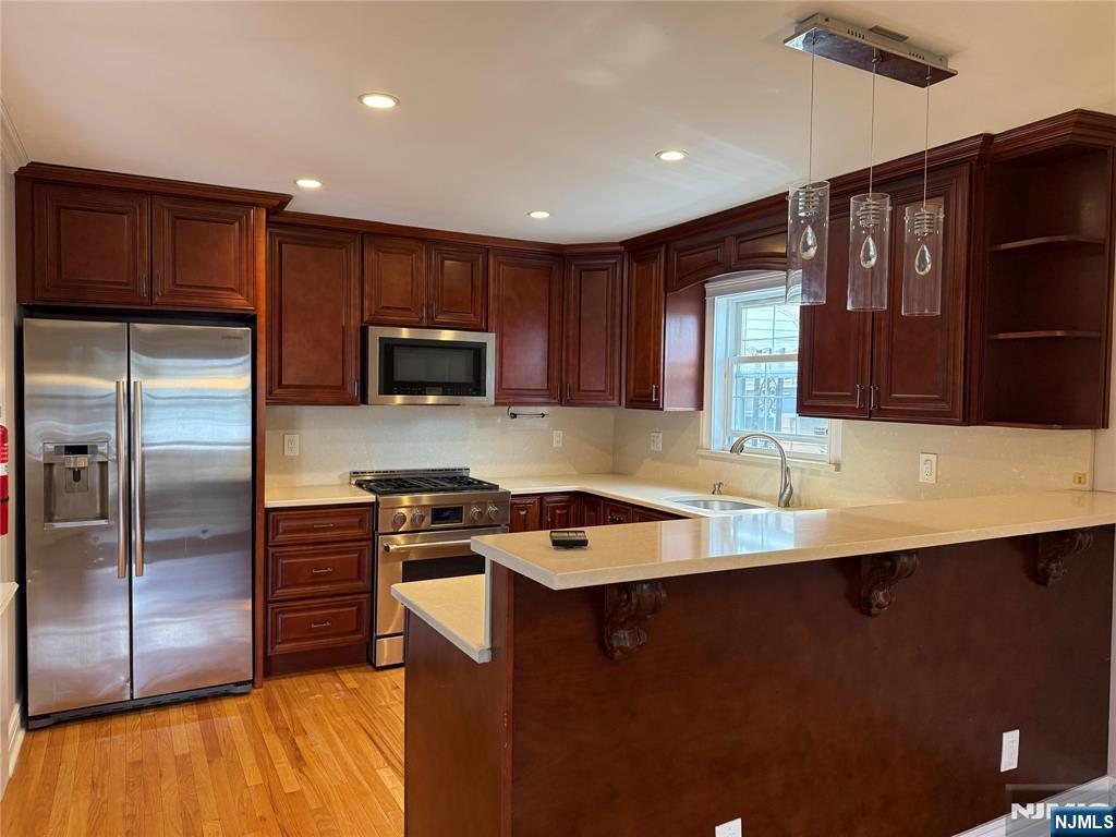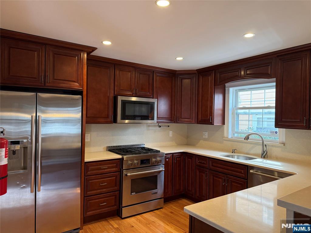 Beautifully renovated 3 bedroom, 1 full-bathroom unit is located on the first floor of a charming 2 family house. Conveniently situated within walking distance of schools, restaurants, shops, and a bus stop. Easy access to the George Washington Bridge and major highways. The kitchen includes granite countertop and stainless steel appliances. Hardwood floors throughout the house. Laundry is included as well as 2 car garage with additional parking in the driveway. Rent includes water, hot water, and heating. Small pets are OK for additional fee.