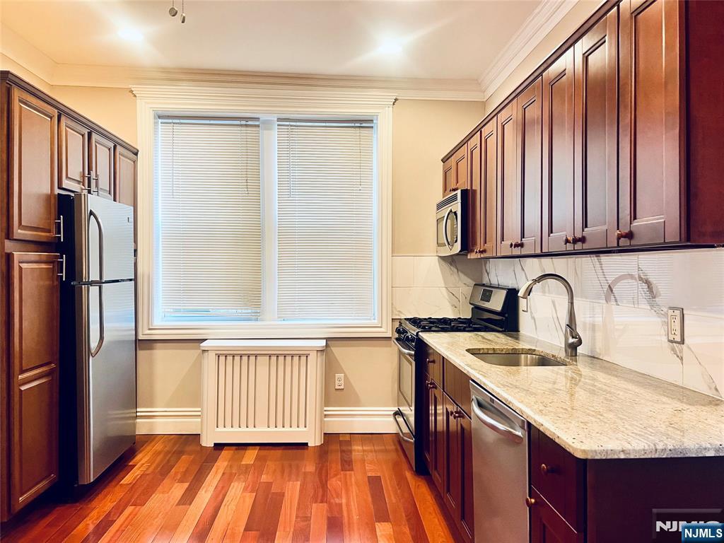 Beautifully updated 1bd/1bath right on Blvd East with fantastic views of Hudson River and Manhattan skylines. Spacious living/dining area, Modern SS appliances, granite countertops and open floor plan are designed for effortless living and entertaining. A true commuter's dream with express bus to New York City and Path train right outside the door and free ferry shuttle! Just minutes away from Restaurants, Bars, Port Imperial, Shopping Centers, Starbucks and Palisades Medical Center. Short distance to JAMES Braddock park, tennis courts, lake with kayaking, dog park and so much more! Heat and water included in rent. Free Street parking or for an additional fee on site parking. The building doesn't allow dogs-cats only. Laundry room on premises, 3rd floor elevator building