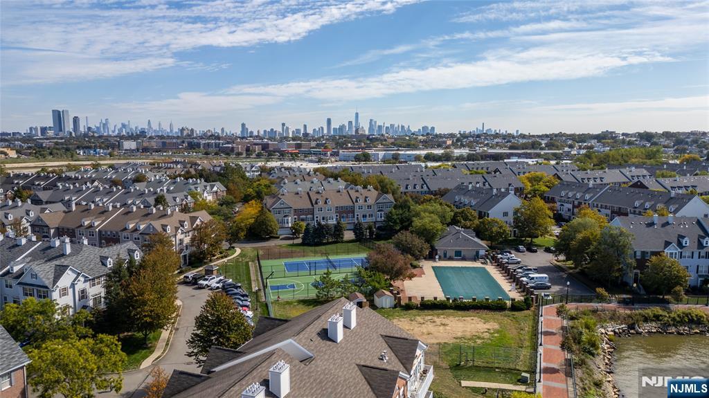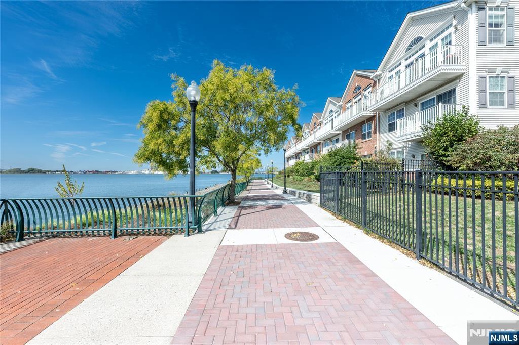 Premium Waterfront Living at Droyer's Point. Welcome to the Columbia model, the largest residence at Droyer's Point at Society Hill. This rare end-unit townhouse spans over 2,400 square feet with stunning waterfront views of Newark Bay. This exceptional 3-bedroom, 2.5-bath home is filled with natural light, thanks to its end-unit position and additional windows, providing enhanced privacy. You're just steps from the new riverwalk, a scenic pathway that will connect with the adjacent Bayfront development. The Bayfront Project is a major redevelopment transforming 95 acres of industrial land into a vibrant waterfront neighborhood. This includes approximately 8,000 residential units, 23 acres of green space, and retail. As this landmark project progresses, property values in the area are positioned for significant growth. Your home includes a private 1-car garage and full access to the community clubhouse, which features a resort-style pool and fitness center. Society Hill offers a secure, gated environment with 24-hour security, tree-lined streets, tennis courts, and waterfront promenades. Enjoy exceptional transit convenience with the West Side Avenue Light Rail station and the 80S bus, providing direct service to Journal Square PATH station, placing Manhattan just minutes away. This is a can't-miss opportunity to secure a residence in a prime Hudson County location with significant future growth.