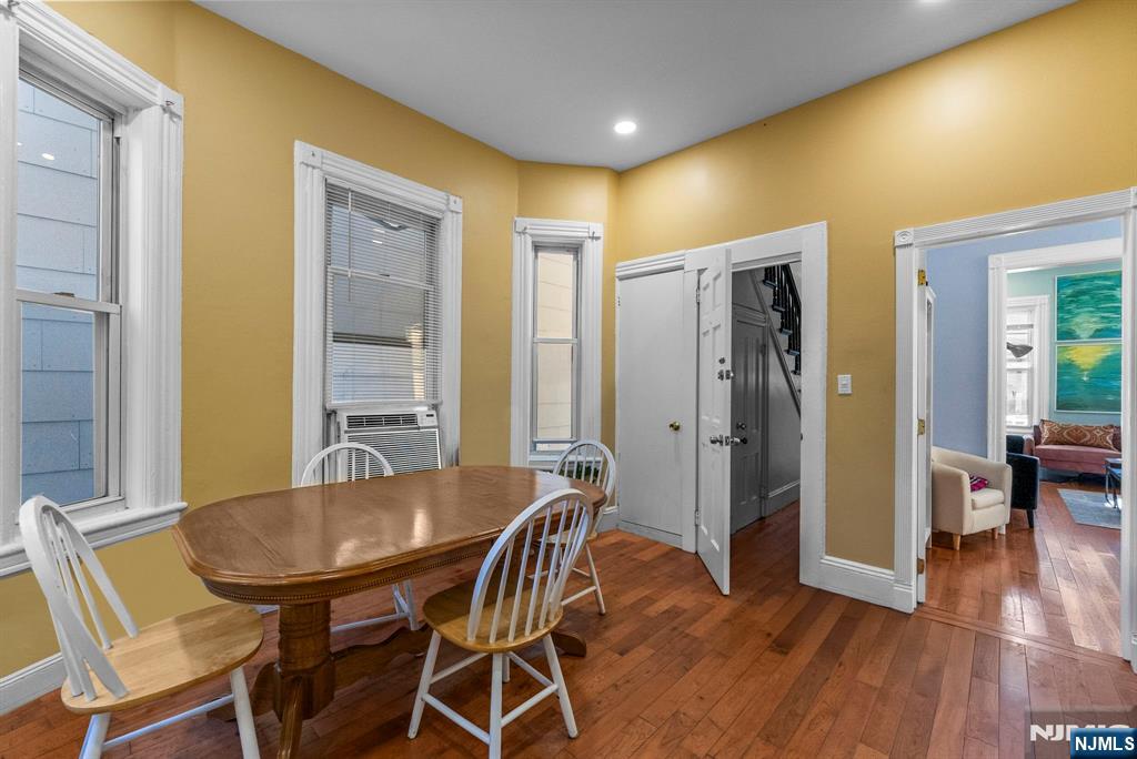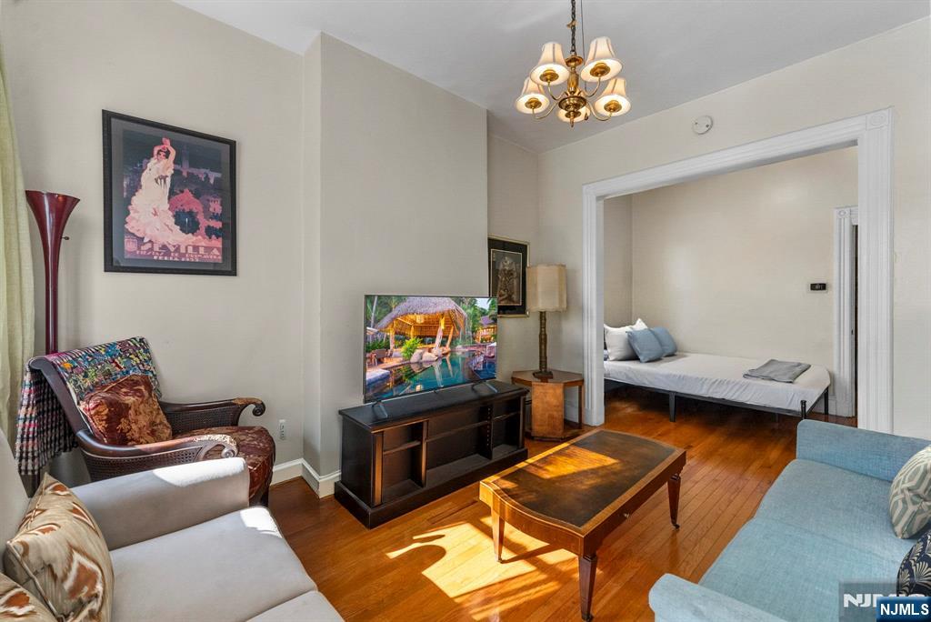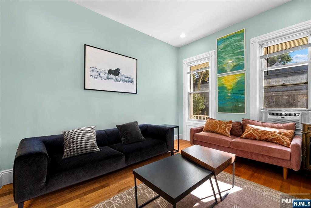 Full of warmth, character, and versatility, this sunlit two-family home offers the perfect blend of old-world charm and modern-day convenience whether you're looking to live, invest, or both. From the inviting front porch to the private backyard, this property feels like home from the moment you arrive. Inside, you'll find soaring ceilings, hardwood floors, and fireplaces on both levels that add a cozy, vintage touch. Each unit features 2 bedrooms, a full bath, a kitchen, and flexible living space ideal for multigenerational living, rental income, or future condo conversion. Upstairs also includes a bonus room perfect for a home office, music space, or extra storage. The full basement is clean and cemented great for storage or future finishing. Located just 2 blocks from the park and minutes to Lincoln Park, Berry Lane Park, and Liberty State Park, it's a walker's paradise. Commuting is a breeze with the PATH train nearby and a bus stop just half a block away. Gas heat (forced air + baseboard), public utilities, and all appliances included. A rare find with curb appeal, income potential, and timeless charm.
