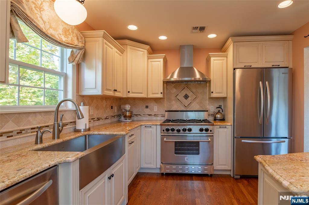 From the moment you arrive, this immaculate 3 BR, 2.5 BA home in the desirable Erskine Lakes invites you to slow down and feel at ease. Every space has been lovingly maintained, radiating comfort, charm and a quiet sense of luxury. Warm hrdwd floors invite you into light-filled foyer w/peaceful treetop views & lake views. The heart of the home is the custom-kitchen, a true chef's retreat, featuring granite countertops, professional Blue Star 6-burner SS range, wine refrigerator, Franke SS sink & detailed cabinets. While preparing a favorite meal or enjoying a quiet morning coffee, this KIT blends elegance w/purpose. Enter the open dining area or step onto the deck to dine al fresco while enjoying the lush landscaped yard. The spacious LR, bathed in natural light, offers a soothing setting for conversation. Upstairs, the serene primary suite welcomes you w/custom walk-in closet & ensuite bath. Each BR features crown molding, generous windows and wooded views. The walk out finished basement offers an inviting gathering space w/stone gas fireplace, high ceilings, plantation shutters, laundry/storage & sliding doors opening directly to a garden oasis. Outside, a landscaper's dream unfolds a private sanctuary w/continuous blooms from spring to fall & graceful trees offering gentle shade. This is more than a home, it's a lifestyle. Opt membership to Erskine Lakes, enjoying boating, swimming & community events. Close to NJBG, hiking, restaurants, shopping and only 45 min fr NYC!