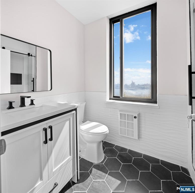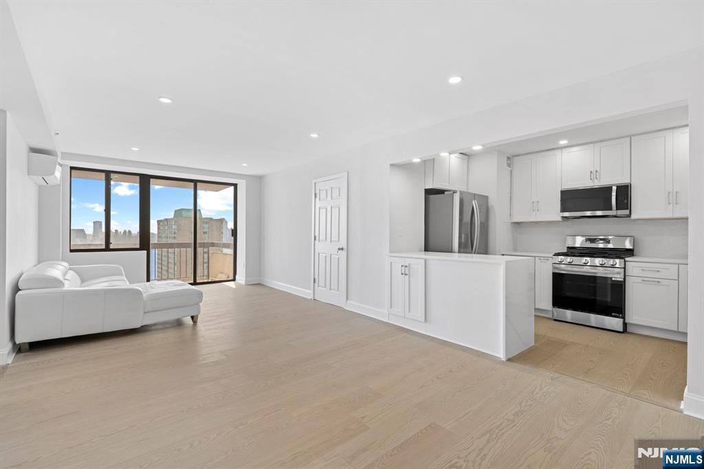 Welcome to this rare, fully renovated 3 bed/2 bath home with direct panoramic NYC views and two private balconies. The east-facing modern open floor plan is bathed in natural light. The chef's kitchen has been completely redone with white shaker-style cabinets, quartz countertops, and stainless steel appliances. The spacious master bath has an ensuite bathroom and its own private balcony. Two additional bedrooms round out this perfect home. Also included is wide-plank hardwood flooring, LED recessed lighting, and Central Air throughout.  This stunning modern apartment is located in The Emerald, a luxury high rise in Newport, offering 24/7 front desk concierge, security, gym, pool, community/club rooms, tennis/pickle ball courts, boardwalk, and restaurants. Just around the corner are both Newport and Hoboken PATH stations and the Holland Tunnel. Move in ASAP.